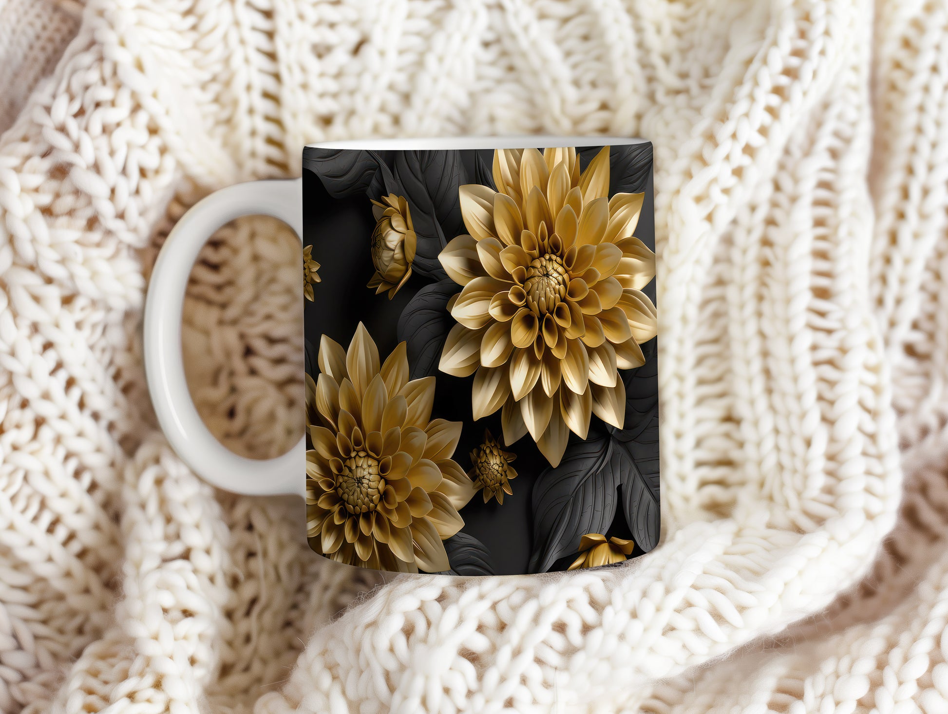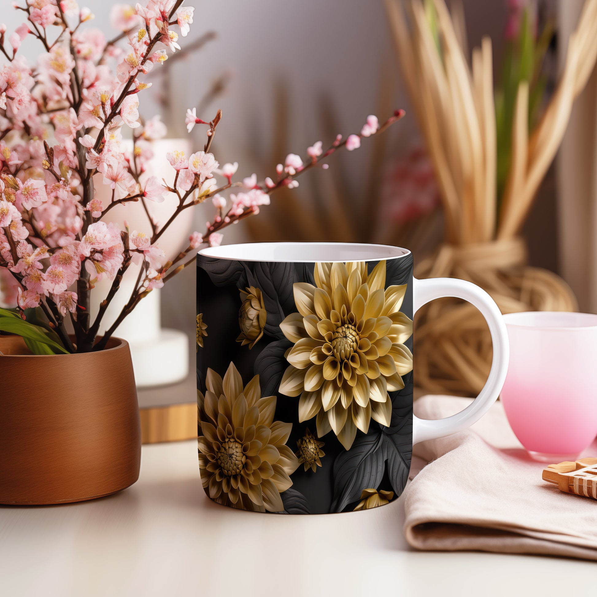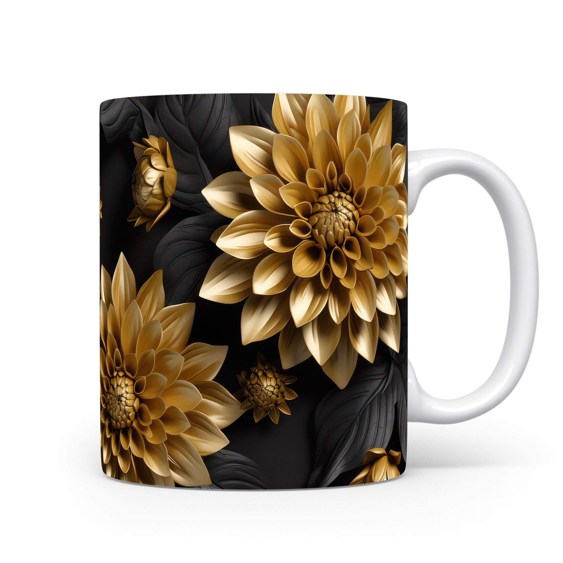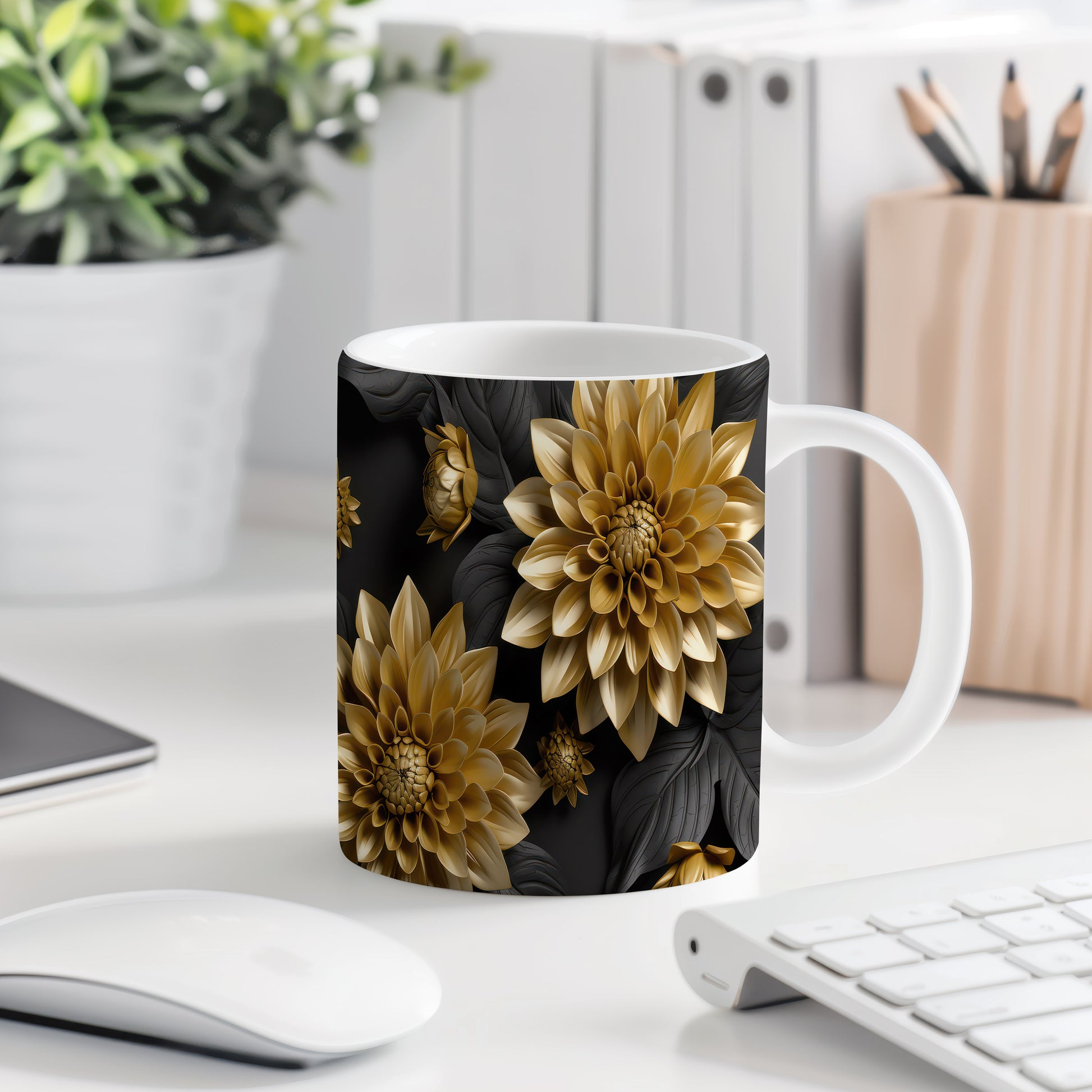 Hrnek s květinovým motivem v zlatých tónech