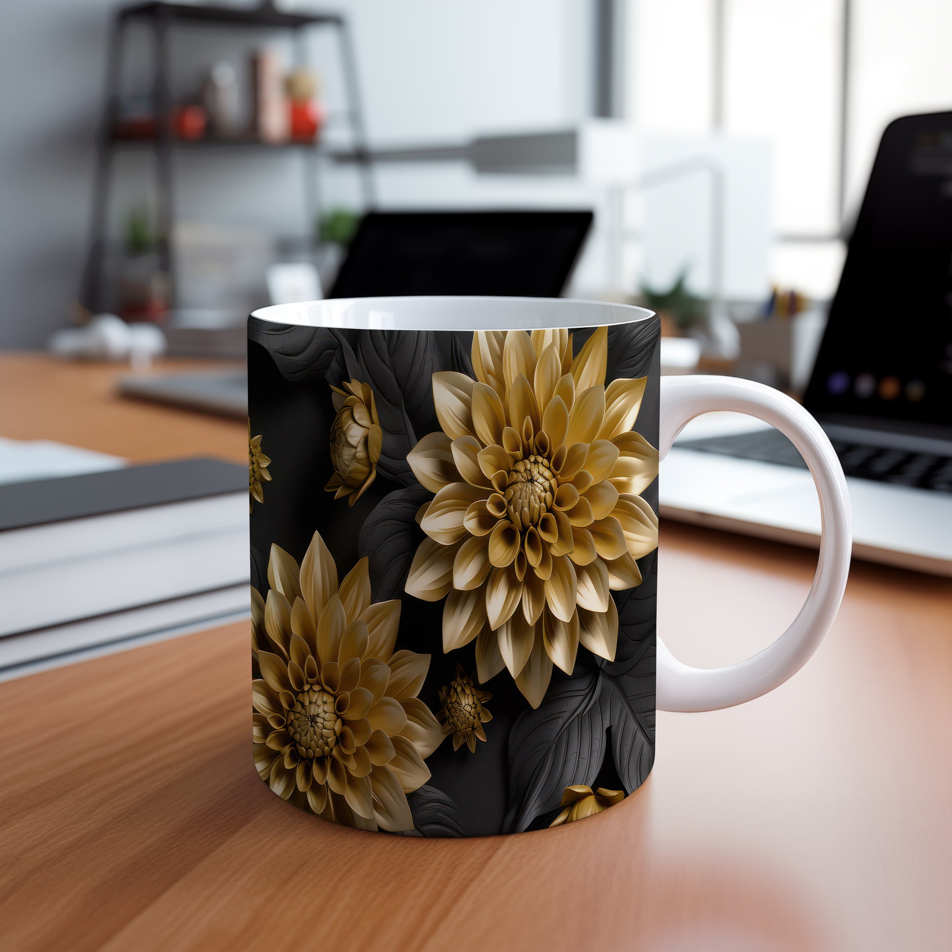 Tento elegantní hrnek s květinovým motivem v zlatých tónech je skvělou volbou pro milovníky stylového nádobí. Je ideální jako dárek pro přátele nebo rodinu, kteří ocení krásu a funkčnost. Materiál: keramika. Objem: 330 ml. Vhodné do myčky i mikrovlnky. Používání tohoto hrnku přináší radost z každého doušku oblíbeného nápoje.