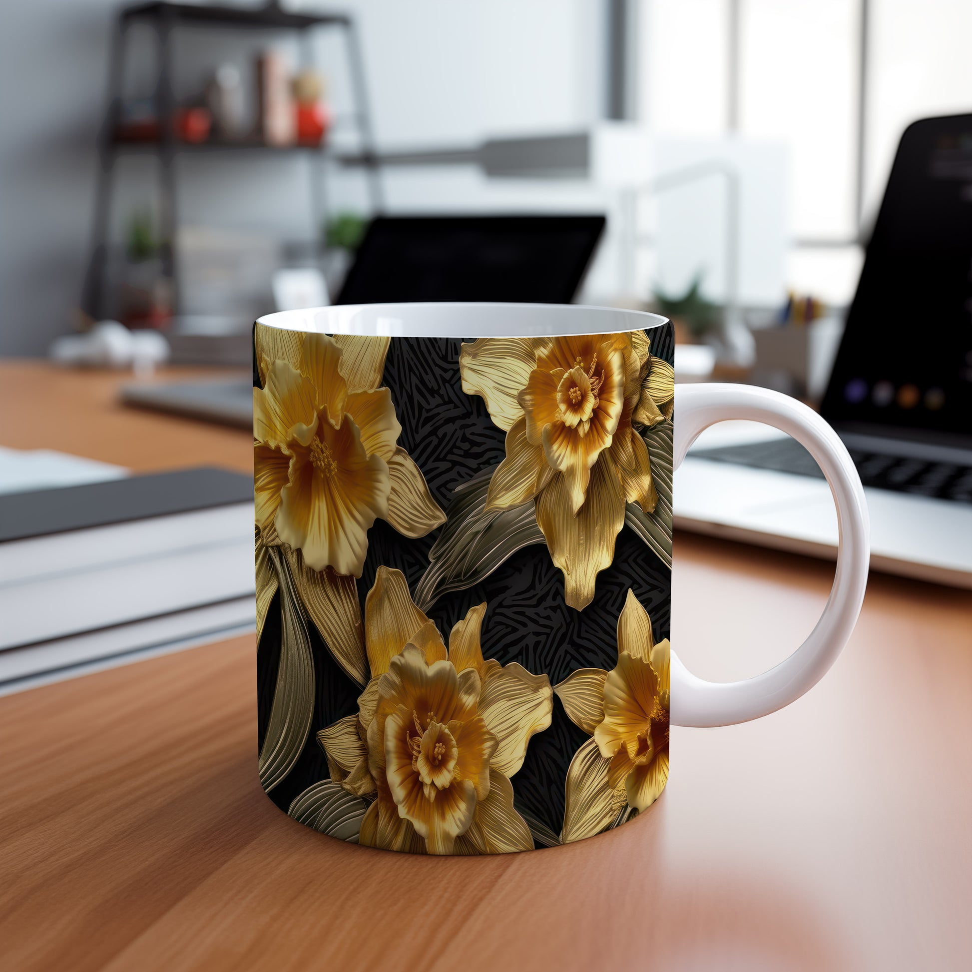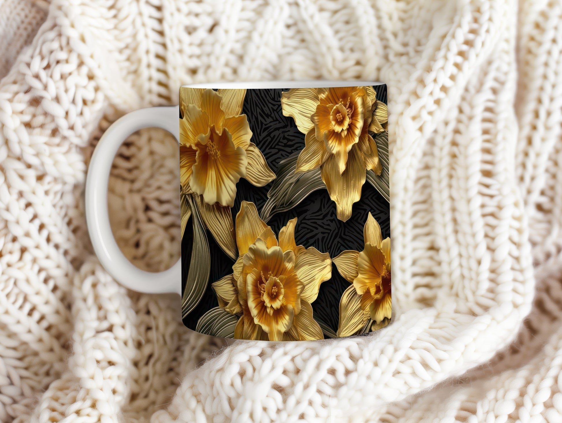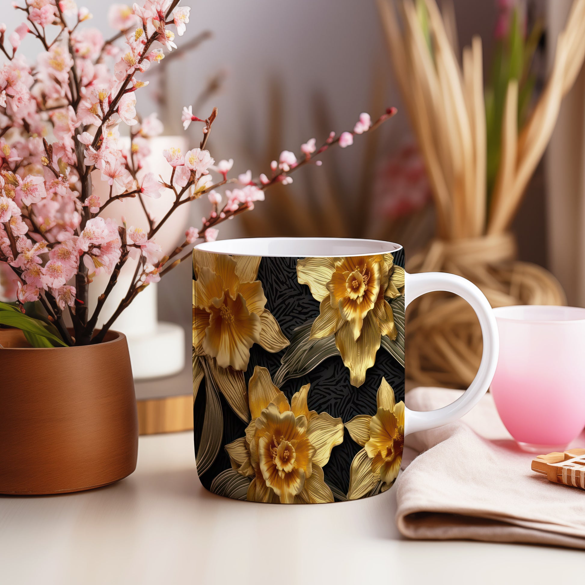 Elegantní keramický hrnek s 3D květinovým motivem ve zlaté barvě. Tento stylový kousek je ideální pro milovníky čaje a kávy, skvěle se hodí jako dárek pro přátele nebo rodinu. Materiál: keramika. Objem: 330 ml. Vhodné do myčky i mikrovlnky. Díky svému designu přináší do každodenního pití radost a styl.