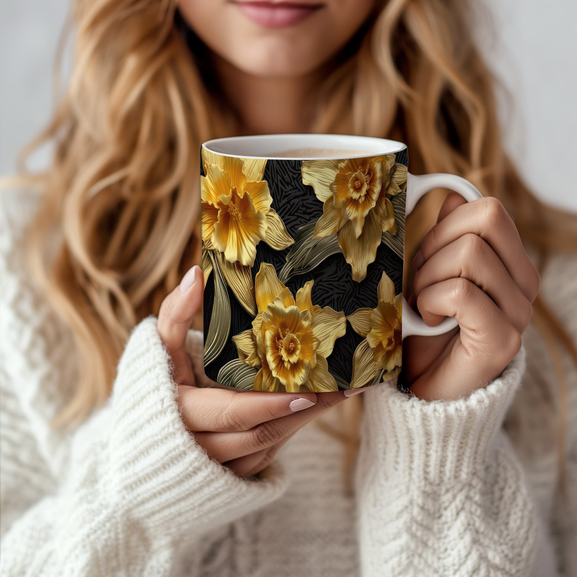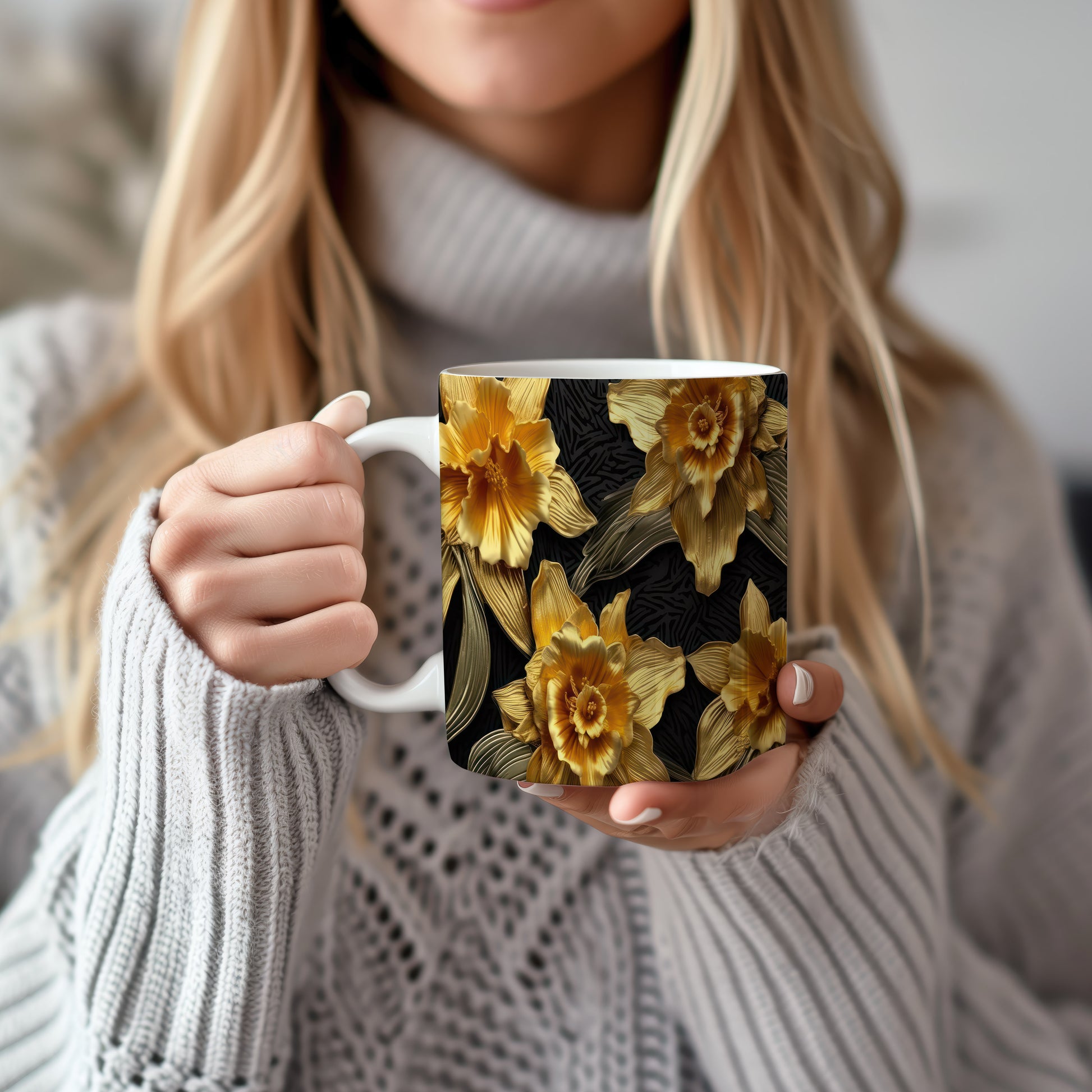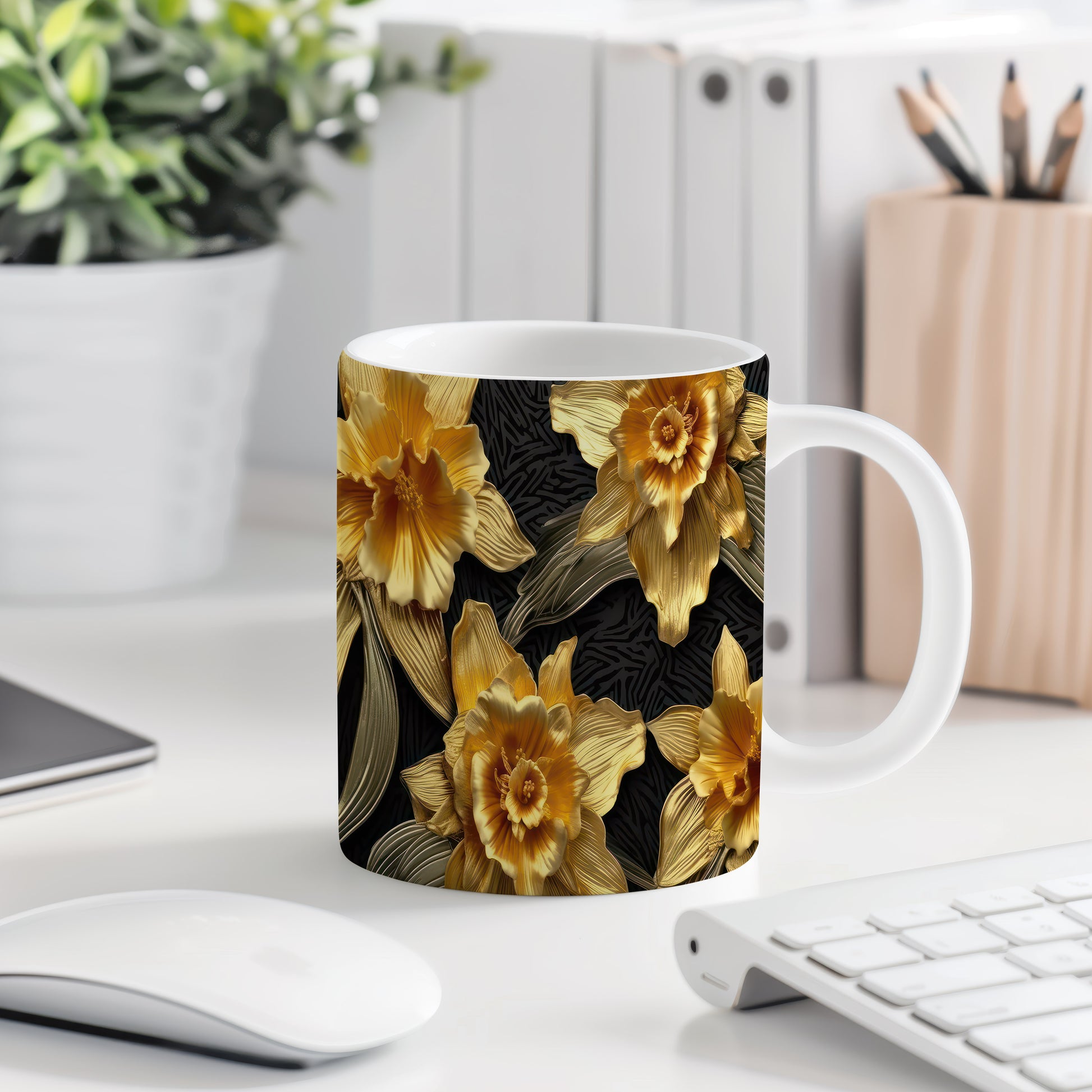 Elegantní keramický hrnek s 3D květinovým motivem ve zlaté barvě. Tento stylový kousek je ideální pro milovníky čaje a kávy, skvěle se hodí jako dárek pro přátele nebo rodinu. Materiál: keramika. Objem: 330 ml. Vhodné do myčky i mikrovlnky. Díky svému designu přináší do každodenního pití radost a styl.