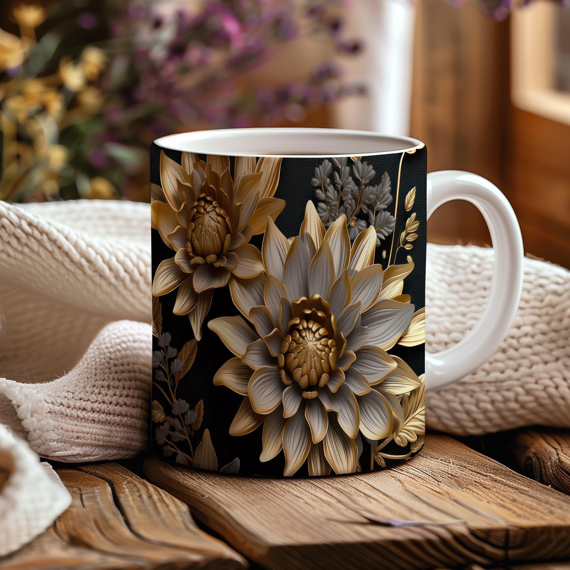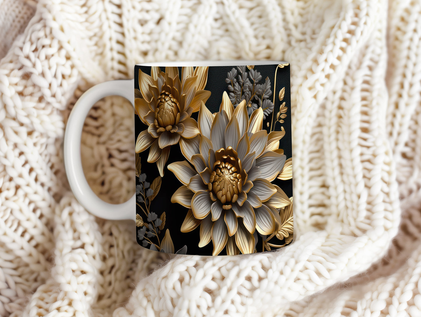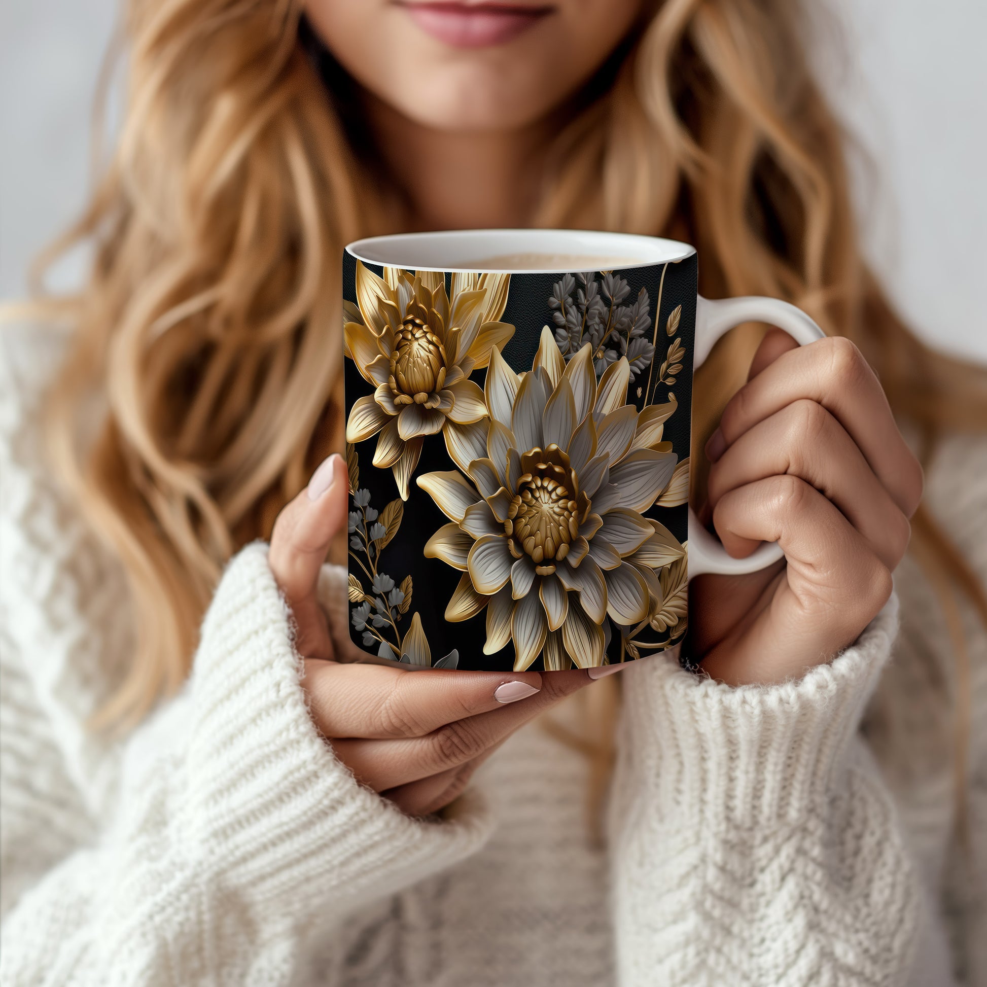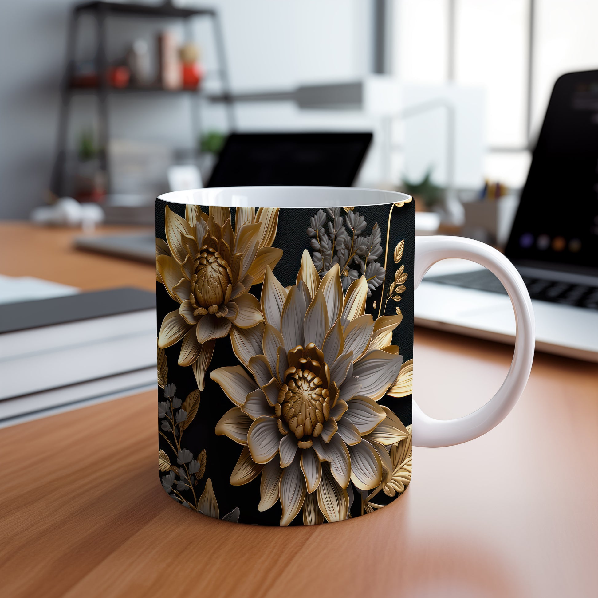 Stylový hrnek s květinovým motivem v zlatých a bílých odstínech. Tento elegantní kousek je ideální pro milovníky čaje a kávy, skvěle se hodí jako dárek pro přátele nebo rodinu. Materiál: keramika. Objem: 330 ml. Vhodné do myčky i mikrovlnky. Užívejte si každé sousto s tímto krásným hrnkem, který dodá vašemu pití šmrnc.