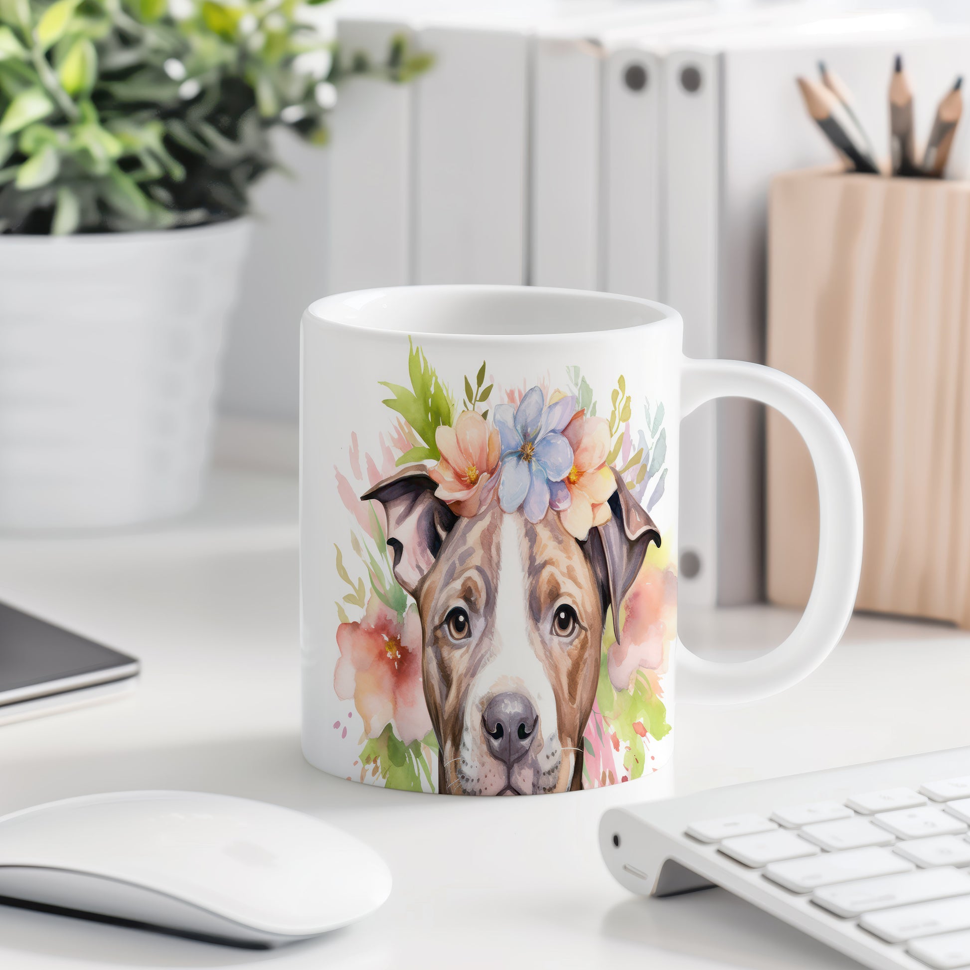 Hrnek s roztomilým psem v květinové koruně je skvělým doplňkem pro milovníky zvířat a přírody. Tento hrnek je ideální jako dárek pro přátele nebo rodinu, kteří ocení originální design. Materiál: keramika. Objem: 330 ml. Vhodné do myčky i mikrovlnky. Používání tohoto hrnku přináší radost z každého doušku vašeho oblíbeného nápoje.