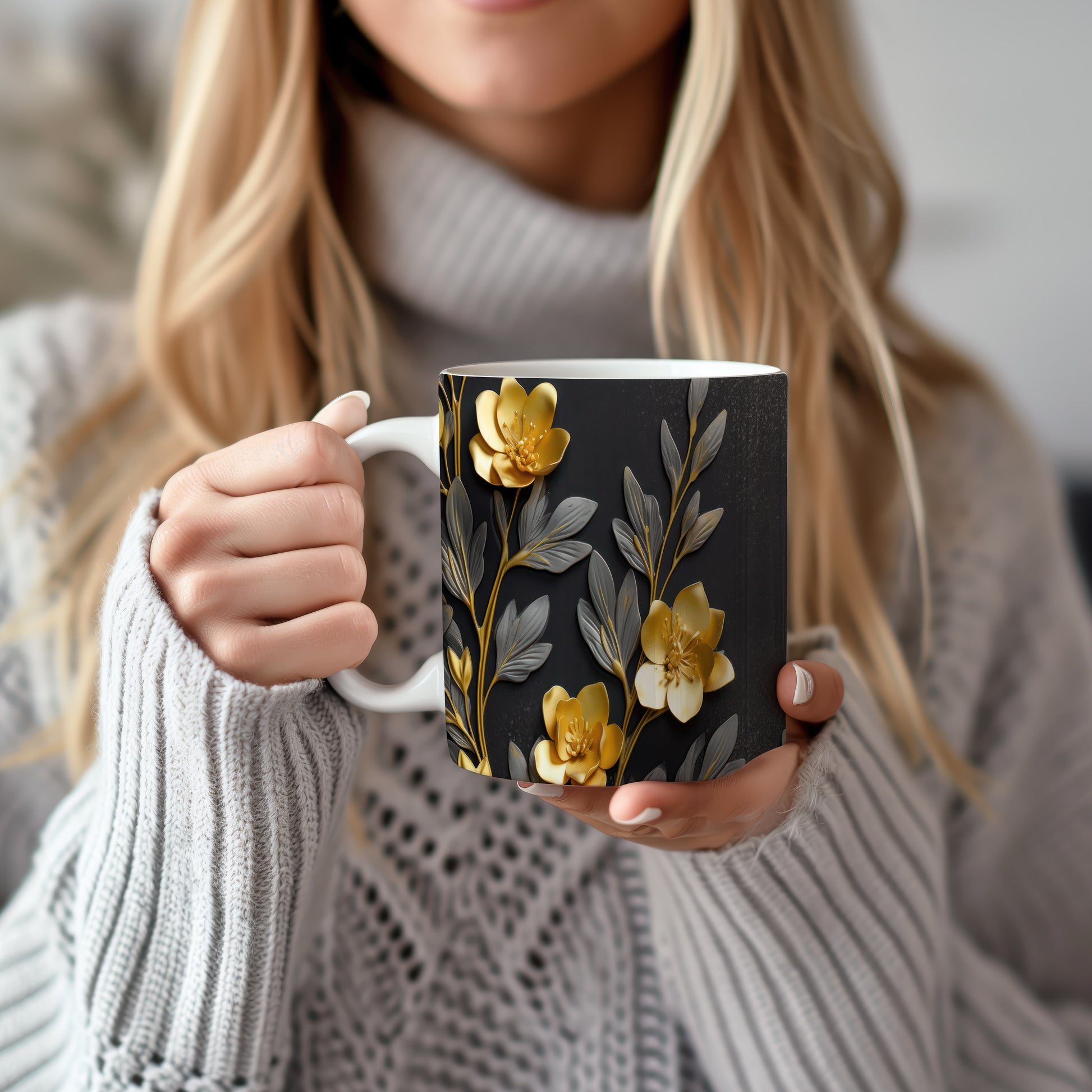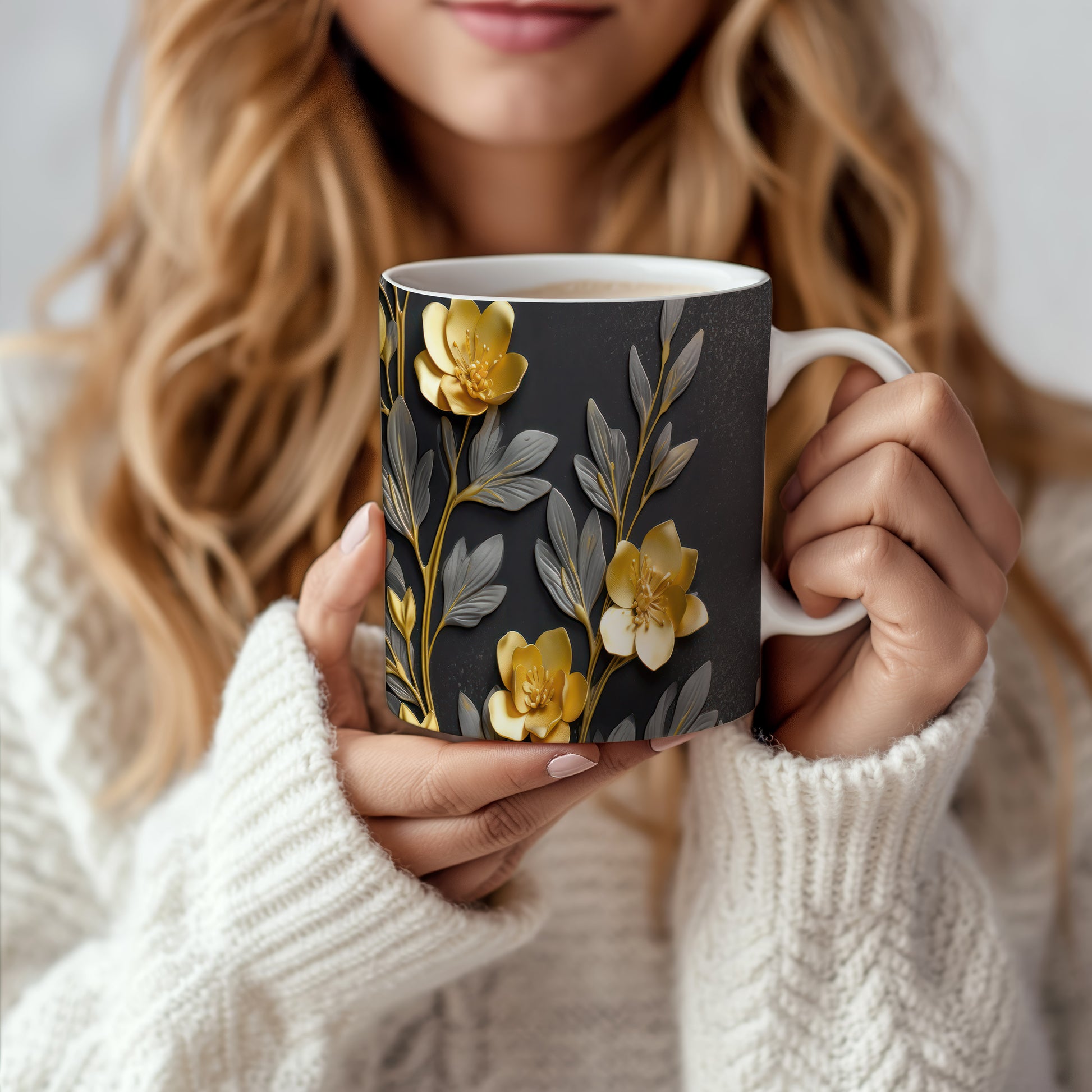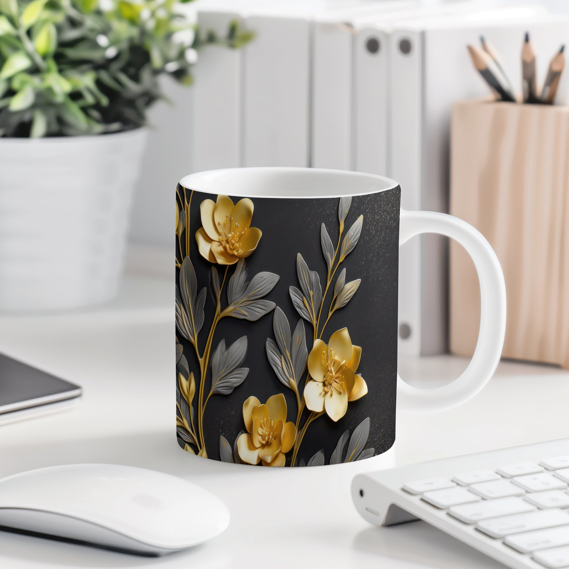 Elegantní hrnek s květinovým vzorem a zlatými detaily. Tento stylový kousek je ideální pro milovníky květin a moderního designu, skvěle se hodí jako dárek pro vaše blízké. Materiál: keramika. Objem: 330 ml. Vhodné do myčky i mikrovlnky. Díky svému designu přináší do každodenního pití špetku elegance.