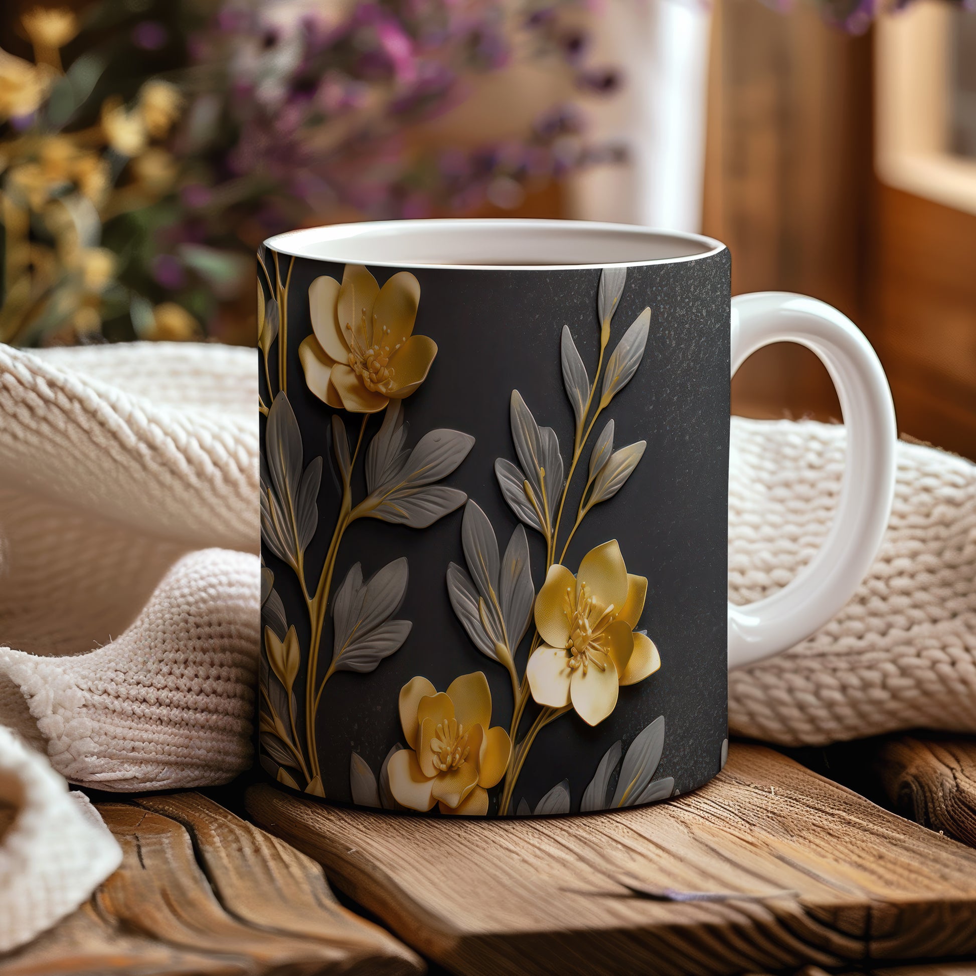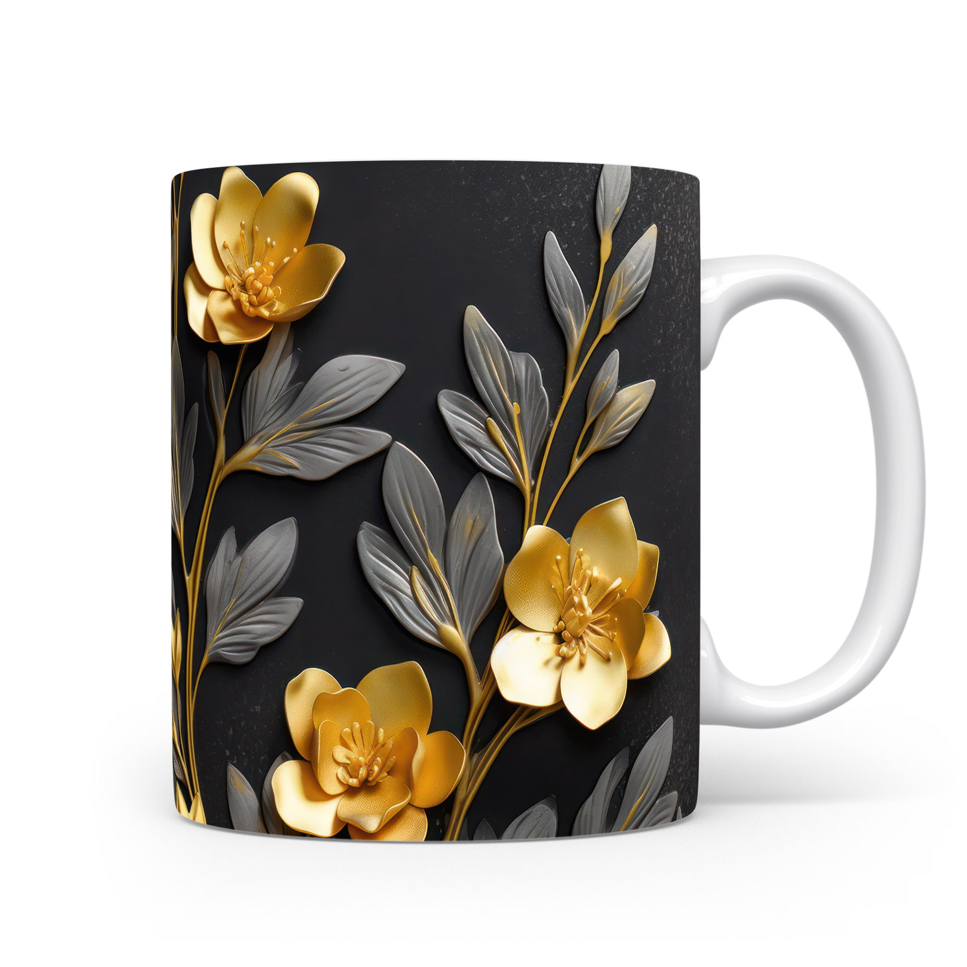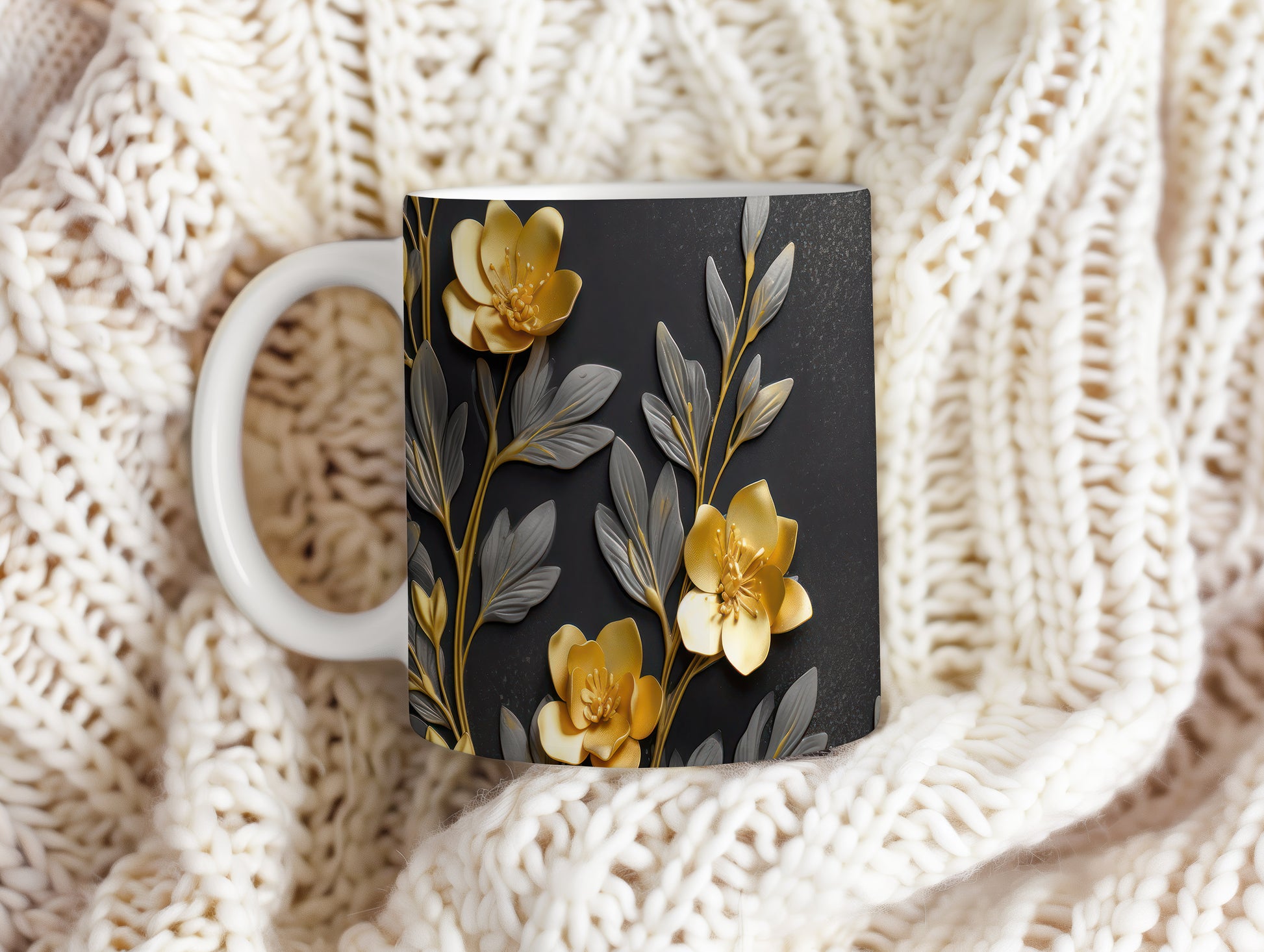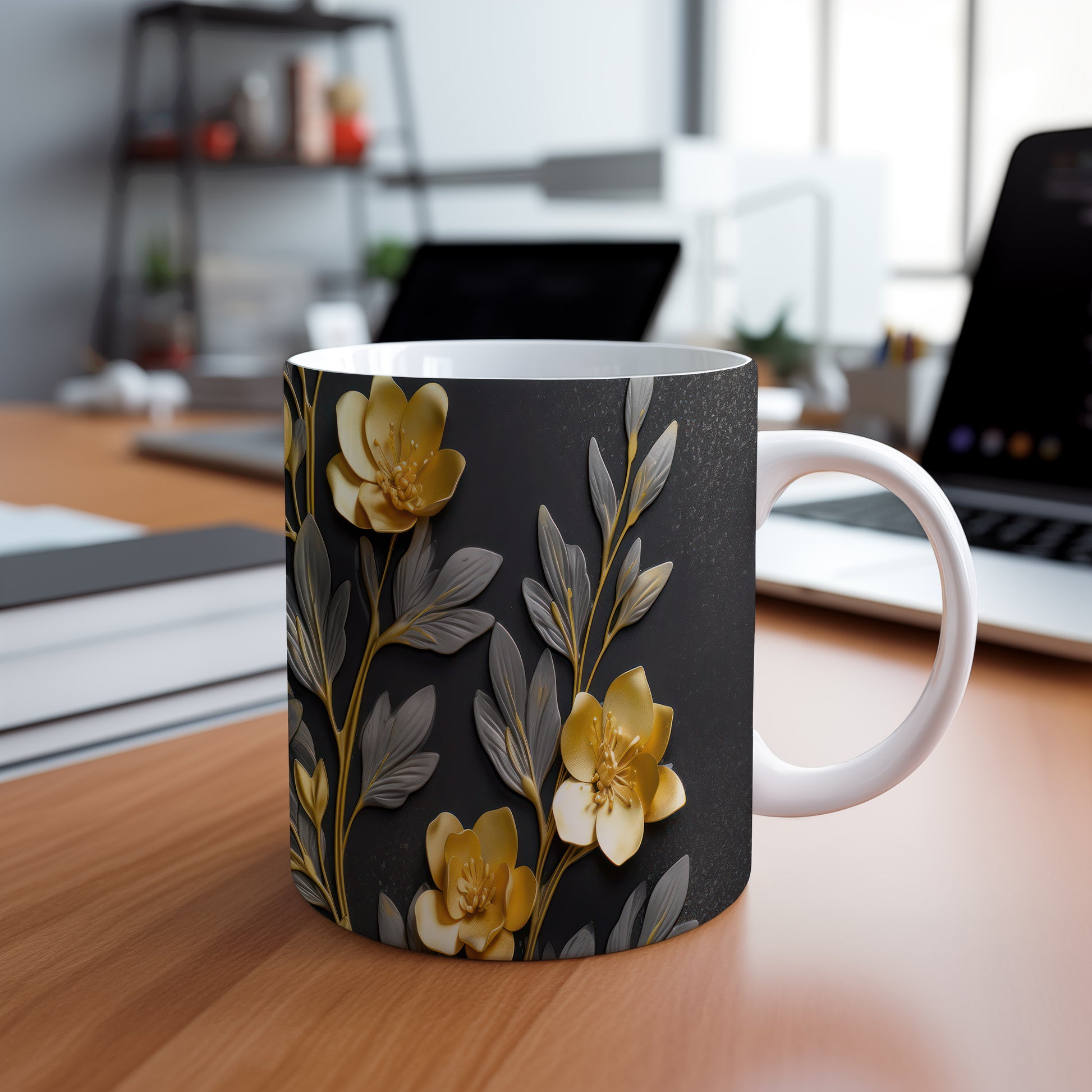 Elegantní hrnek s květinovým vzorem a zlatými detaily. Tento stylový kousek je ideální pro milovníky květin a moderního designu, skvěle se hodí jako dárek pro vaše blízké. Materiál: keramika. Objem: 330 ml. Vhodné do myčky i mikrovlnky. Díky svému designu přináší do každodenního pití špetku elegance.