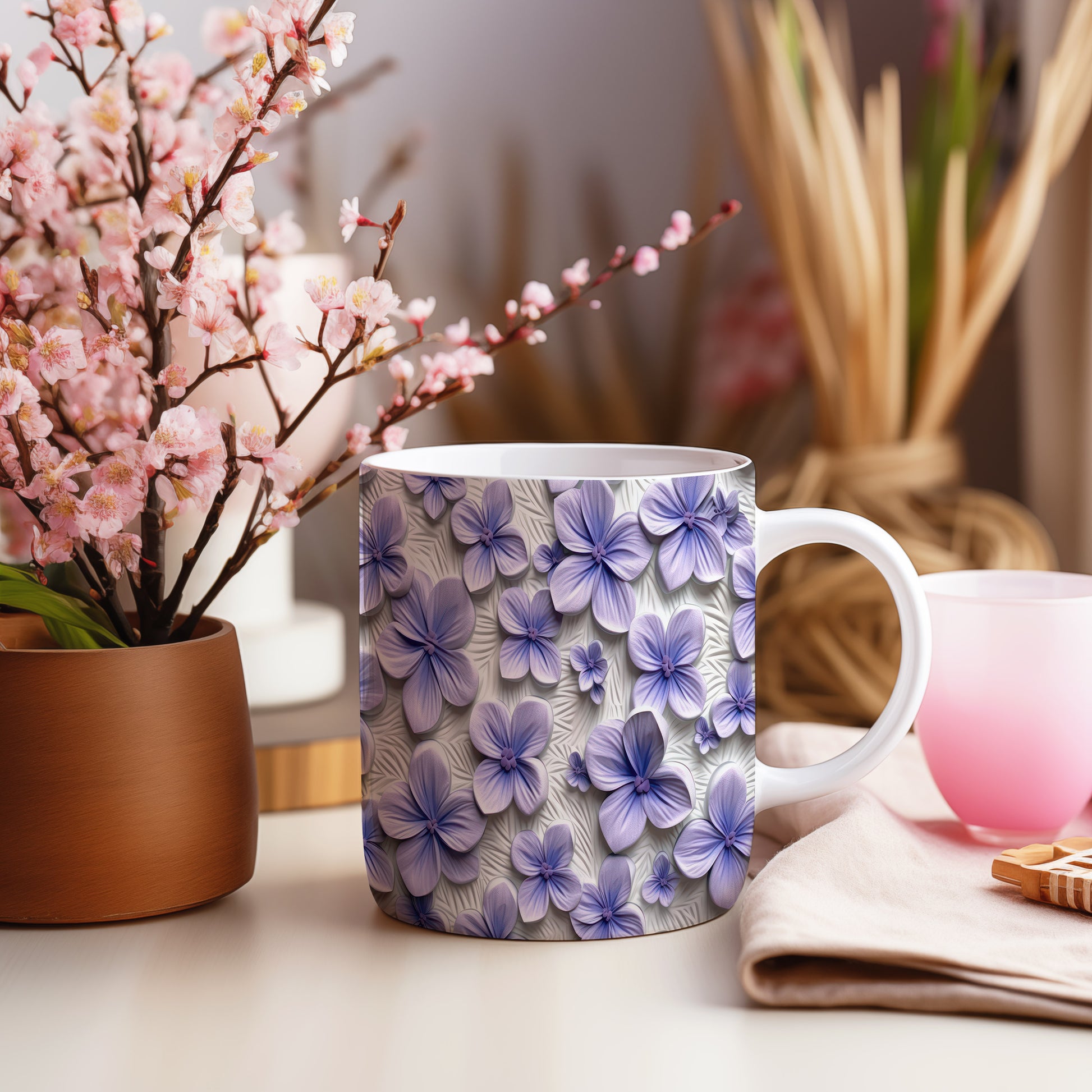 Hrnek s květinovým vzorem 3D efektem – 3D efektem