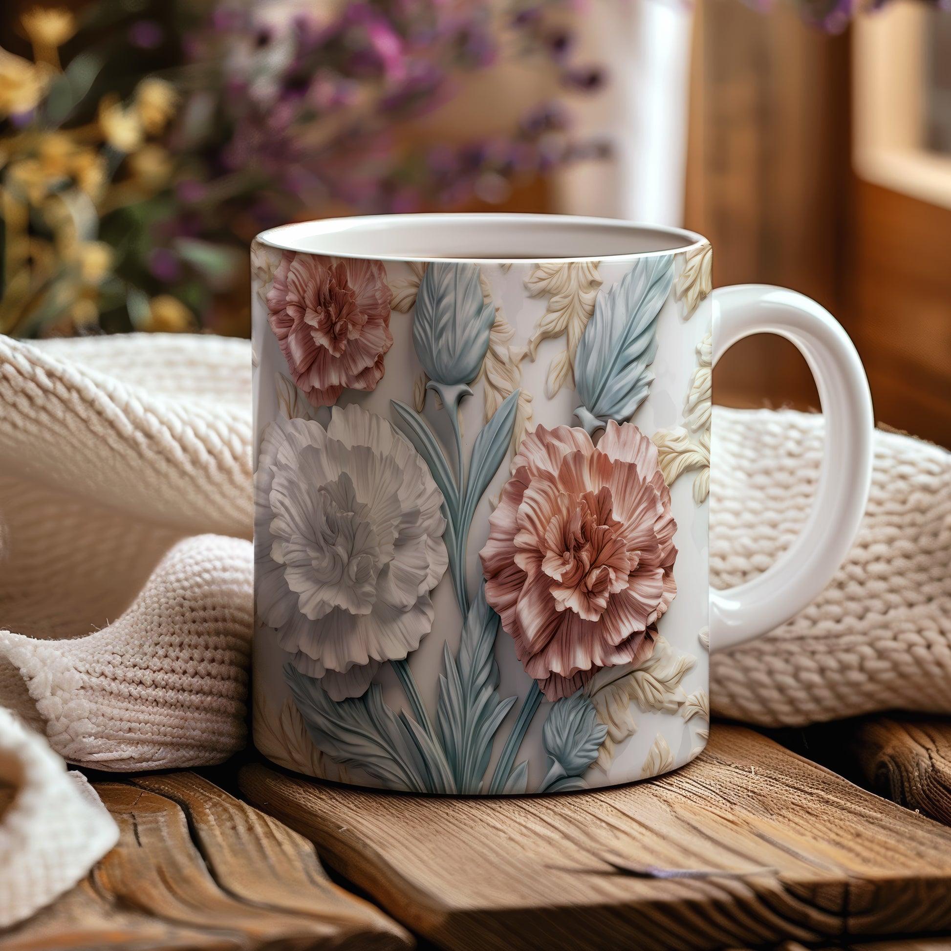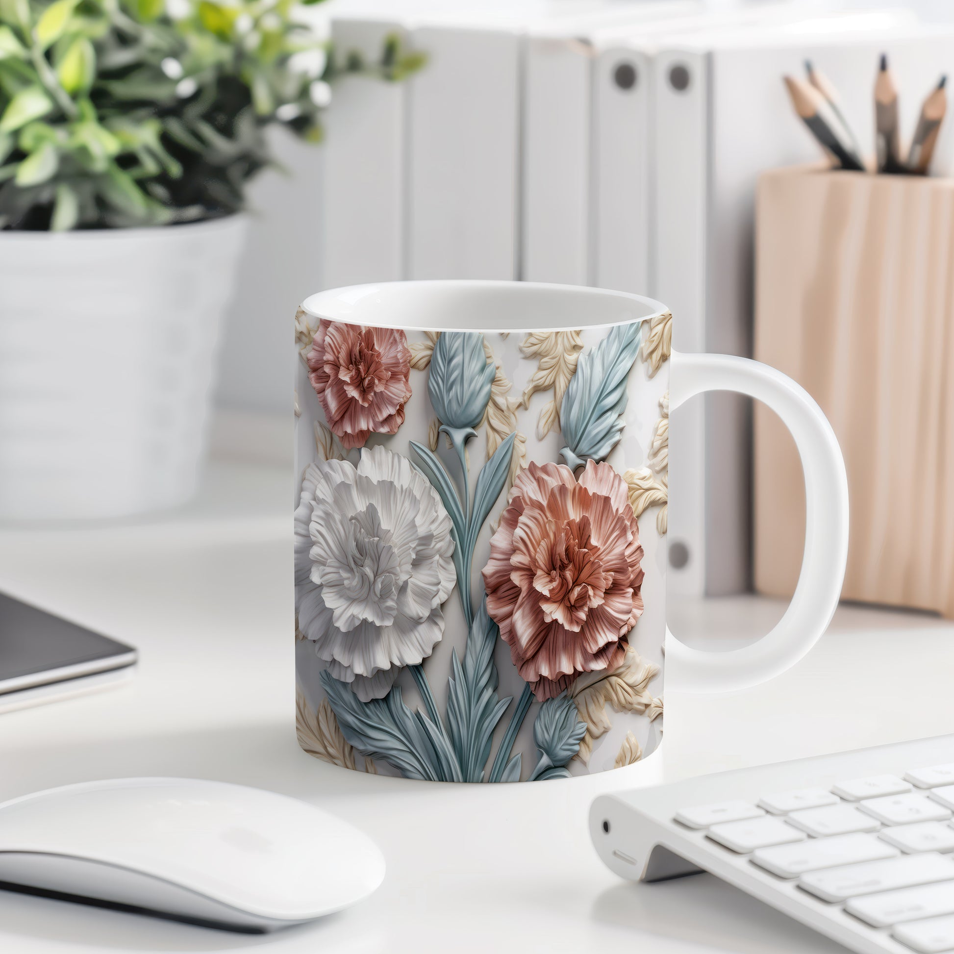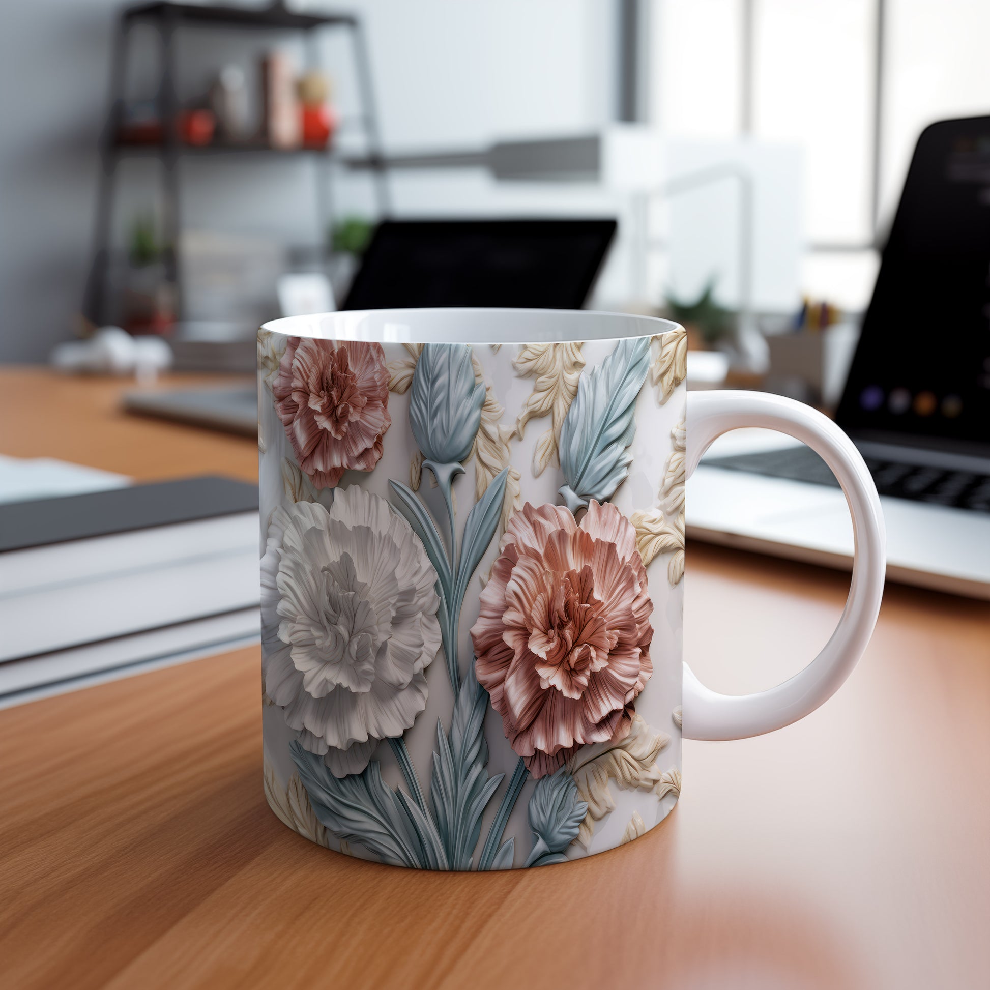 Tento hrnek zdobí krásný květinový design s realistickými 3D prvky. Je ideální pro každodenní používání a skvěle se hodí jako dárek pro milovníky přírody. Materiál: keramika. Objem: 330 ml. Vhodné do myčky i mikrovlnky. Díky svému jedinečnému vzhledu přináší radost z pití každého nápoje.