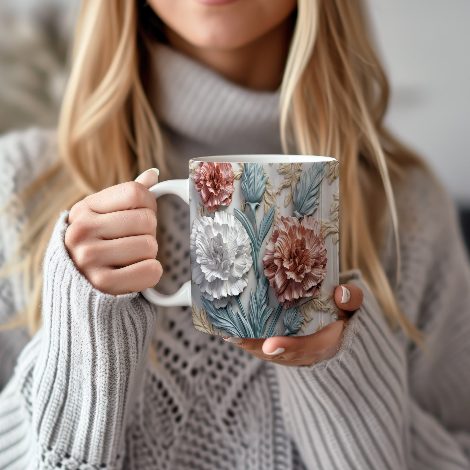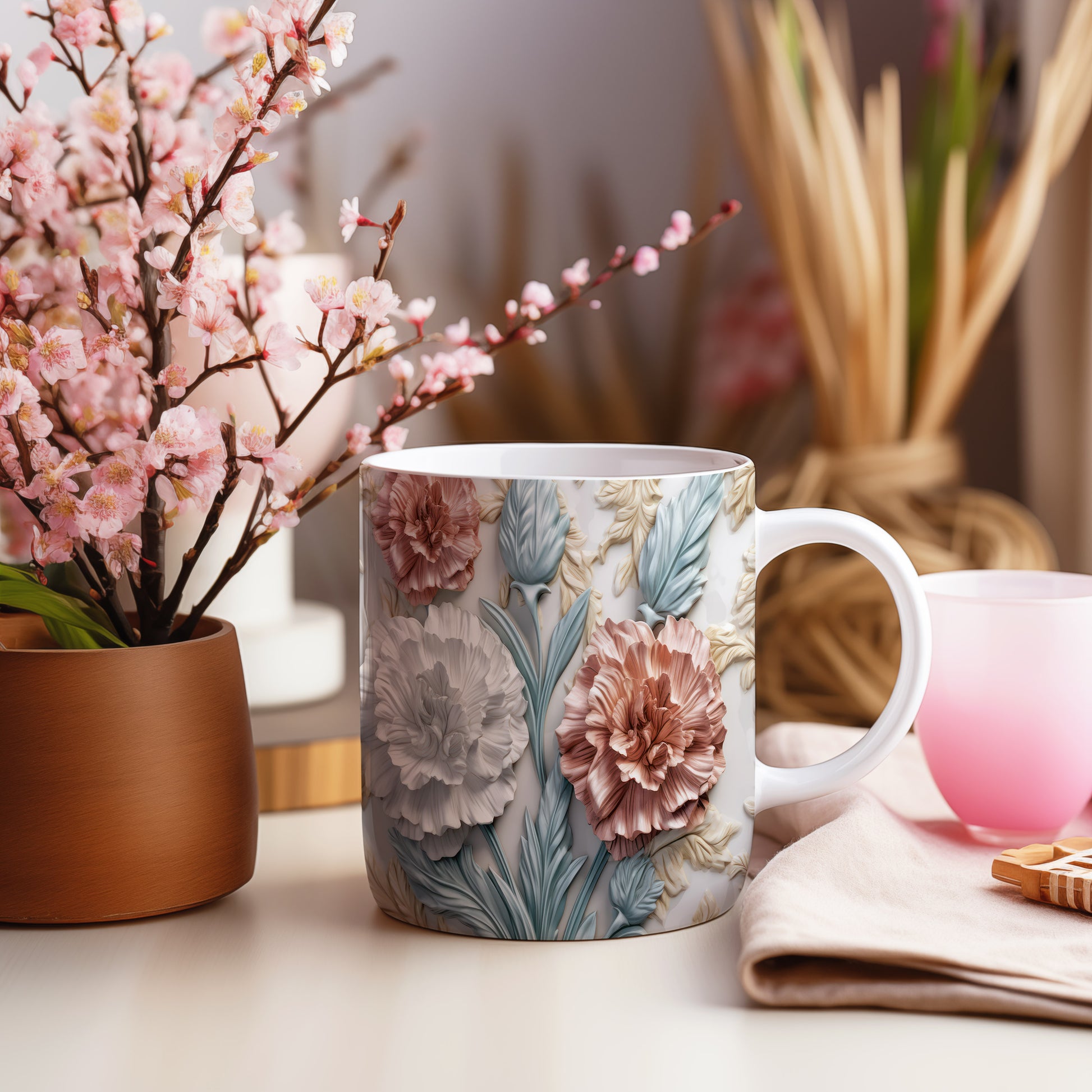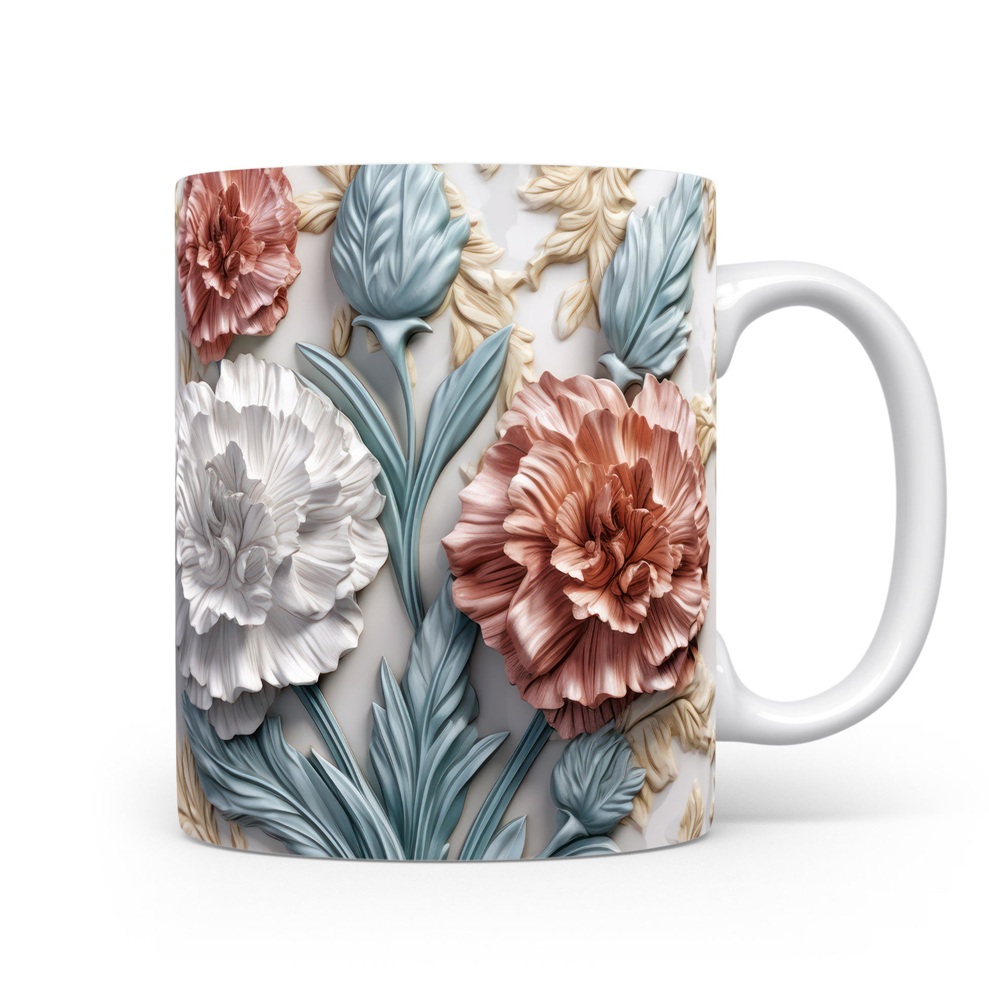 Tento hrnek zdobí krásný květinový design s realistickými 3D prvky. Je ideální pro každodenní používání a skvěle se hodí jako dárek pro milovníky přírody. Materiál: keramika. Objem: 330 ml. Vhodné do myčky i mikrovlnky. Díky svému jedinečnému vzhledu přináší radost z pití každého nápoje.
