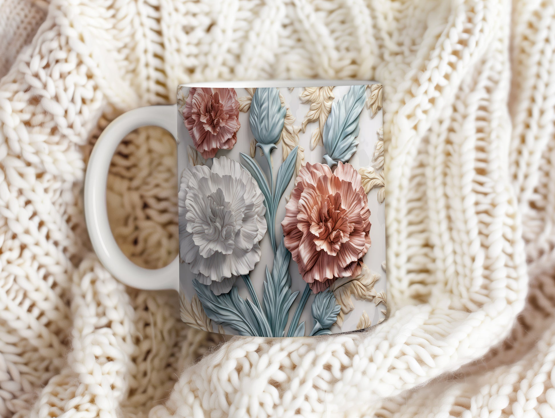 Hrnek s květinovým vzorem 3D efektem – modrými detaily