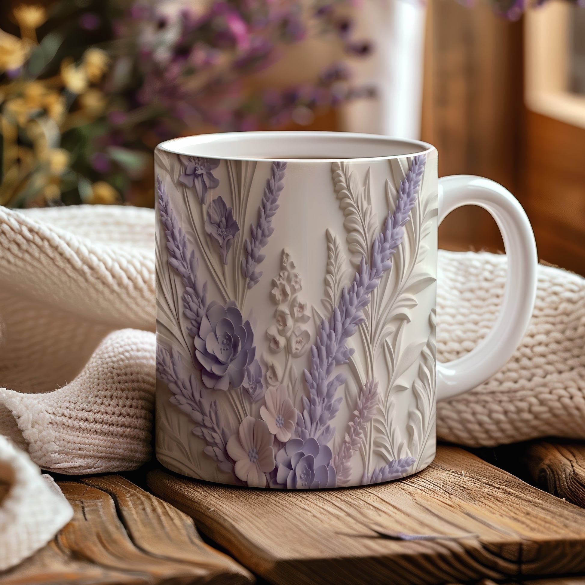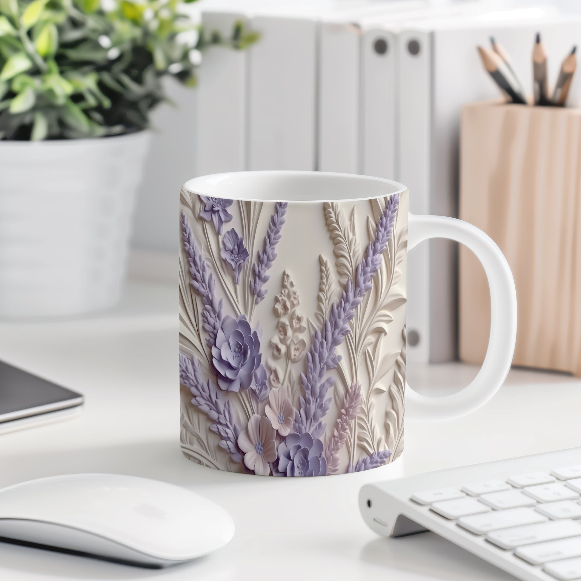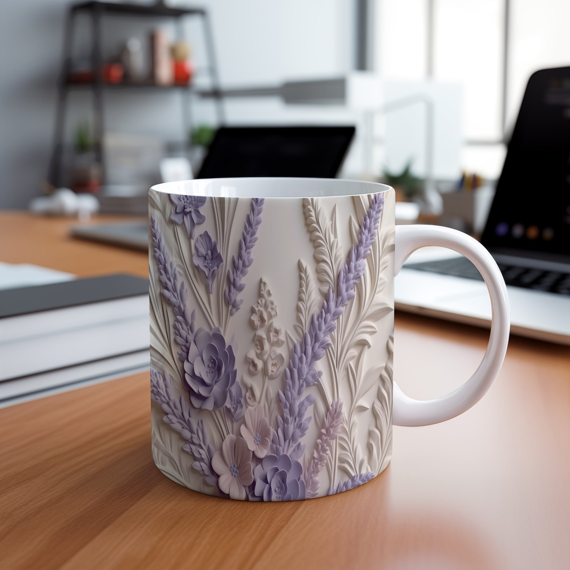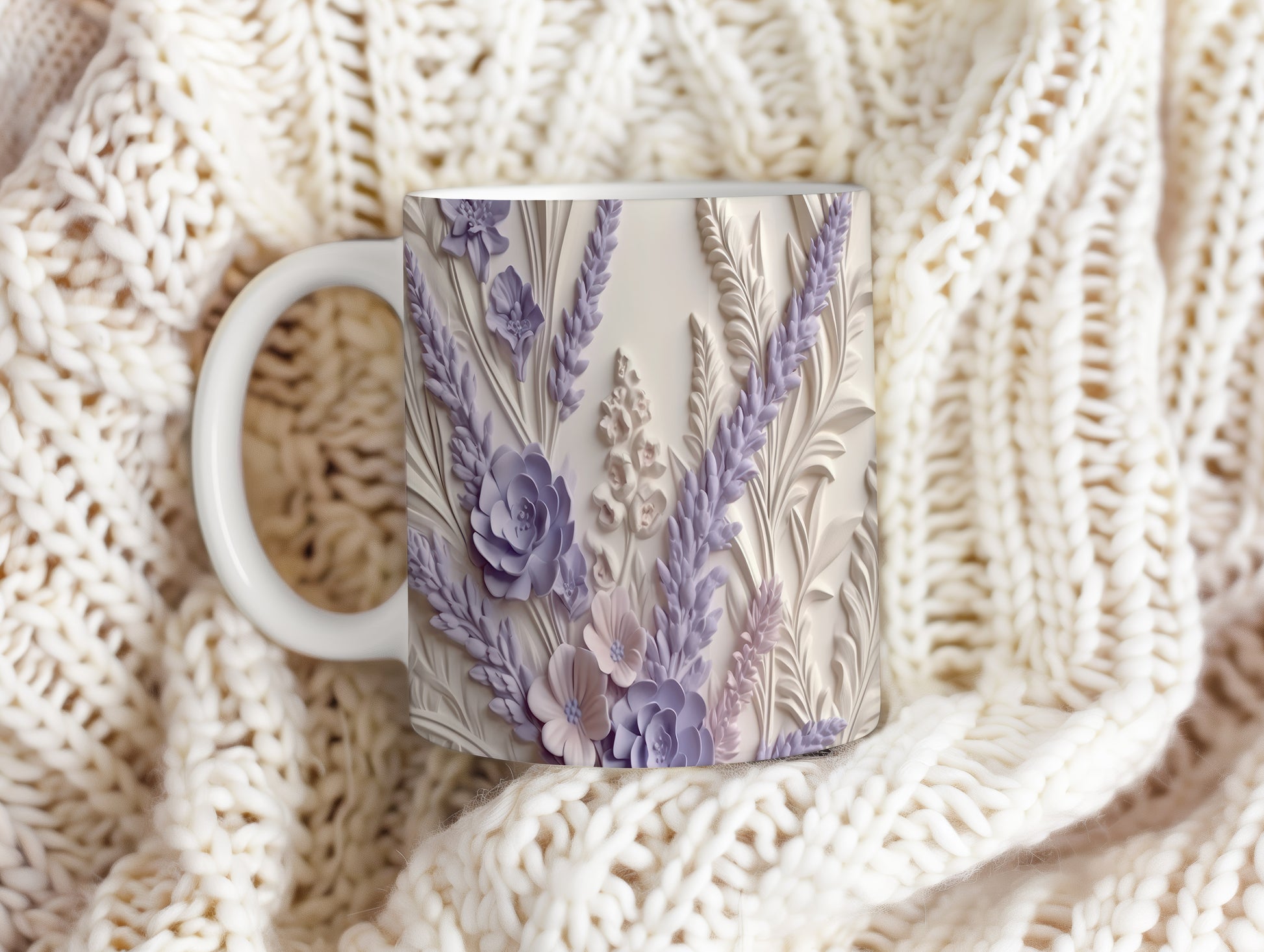 Hrnek s květinovým vzorem a 3D efektem