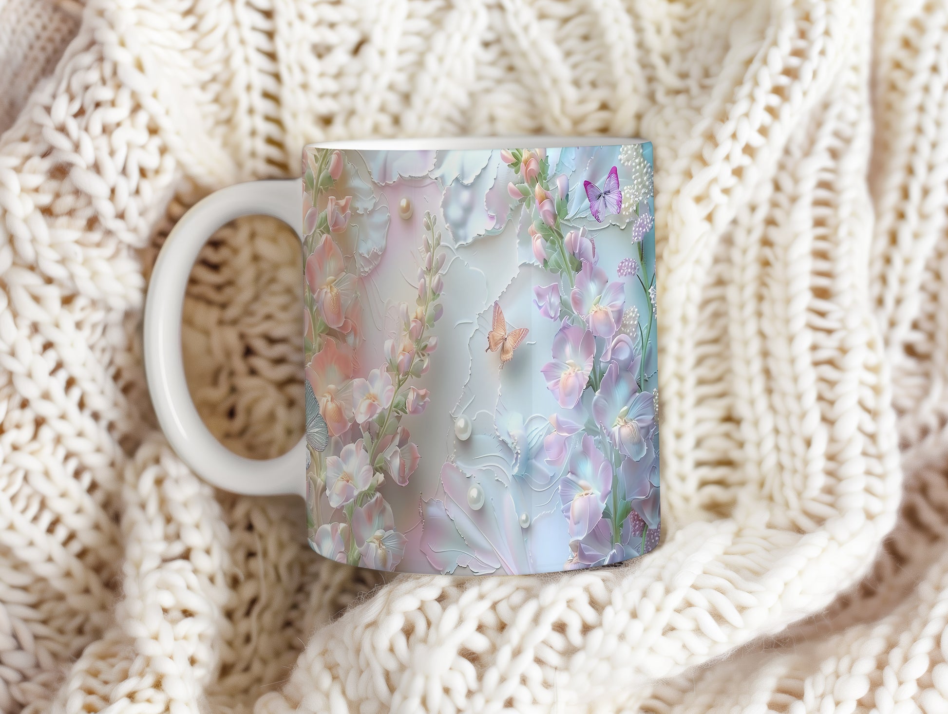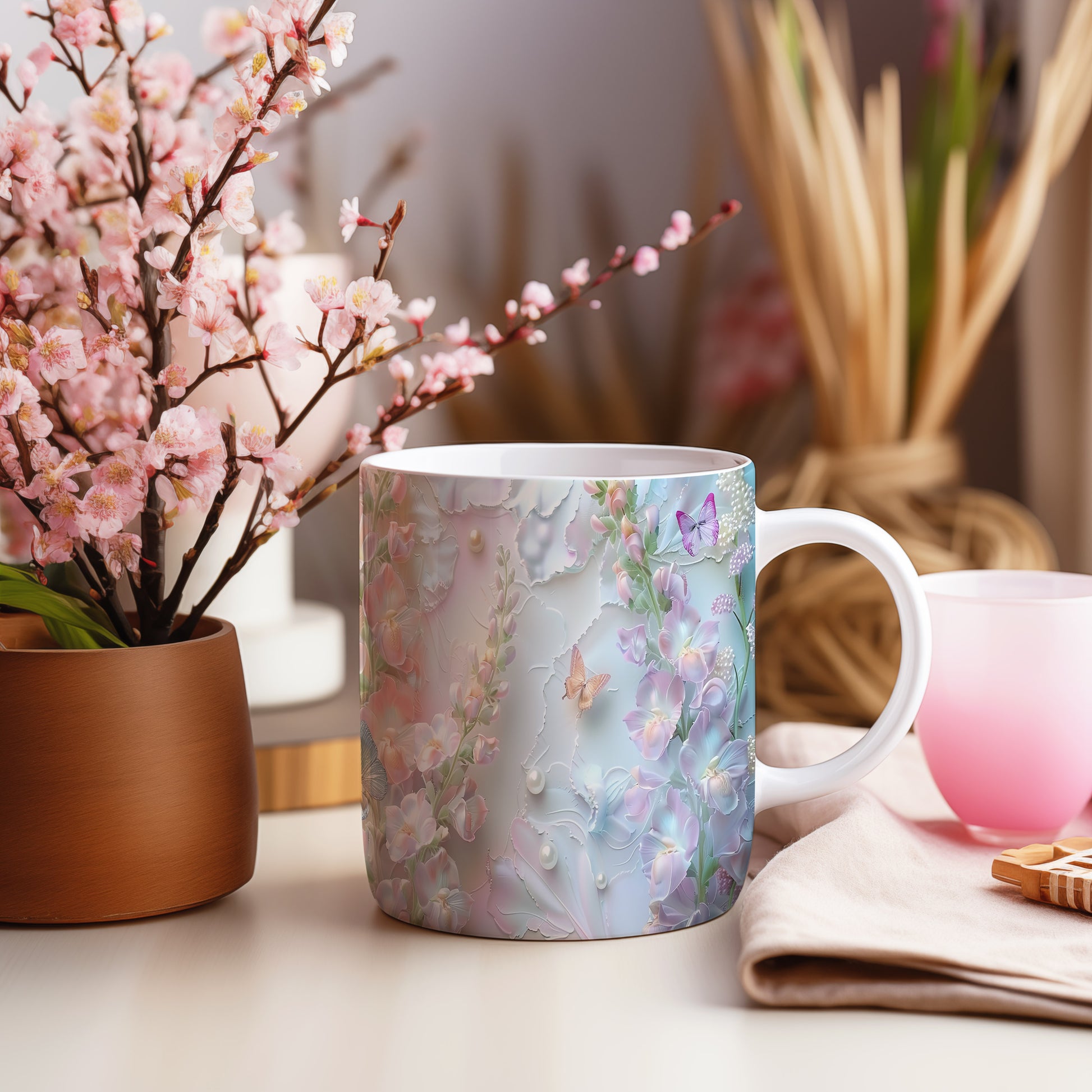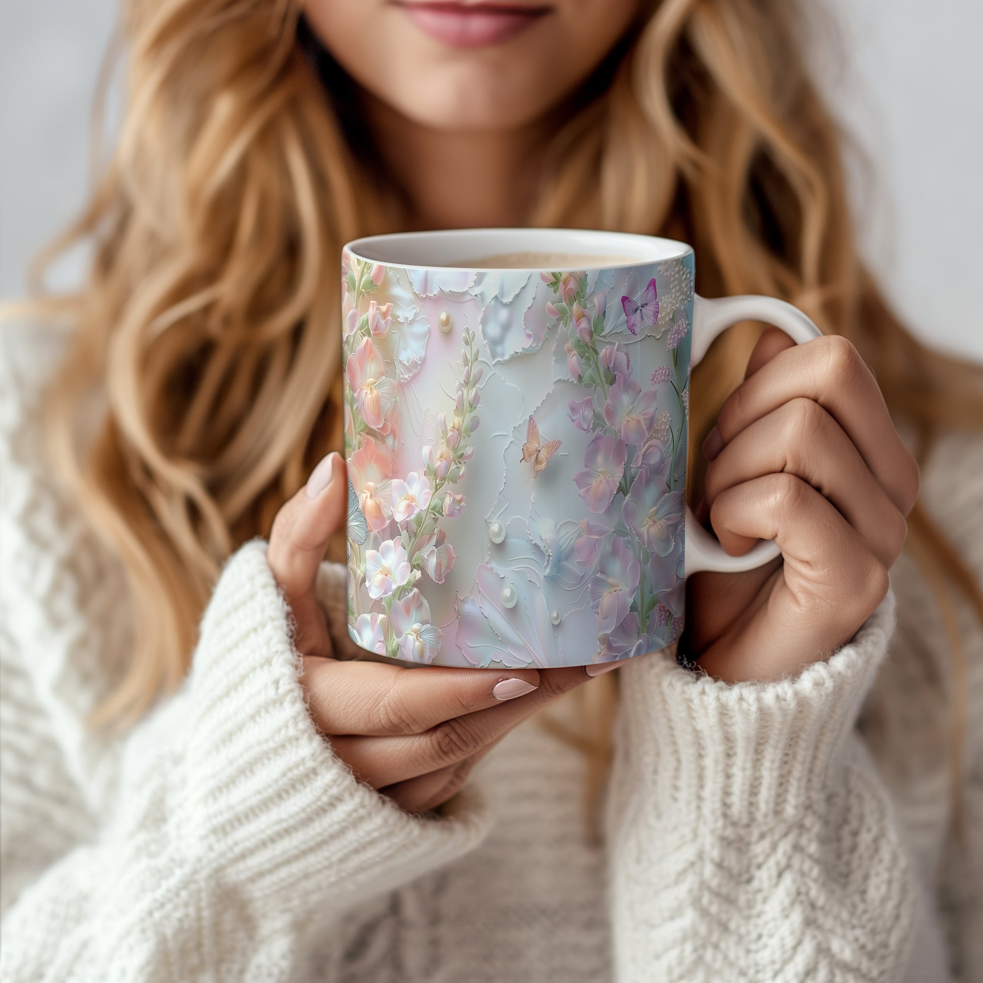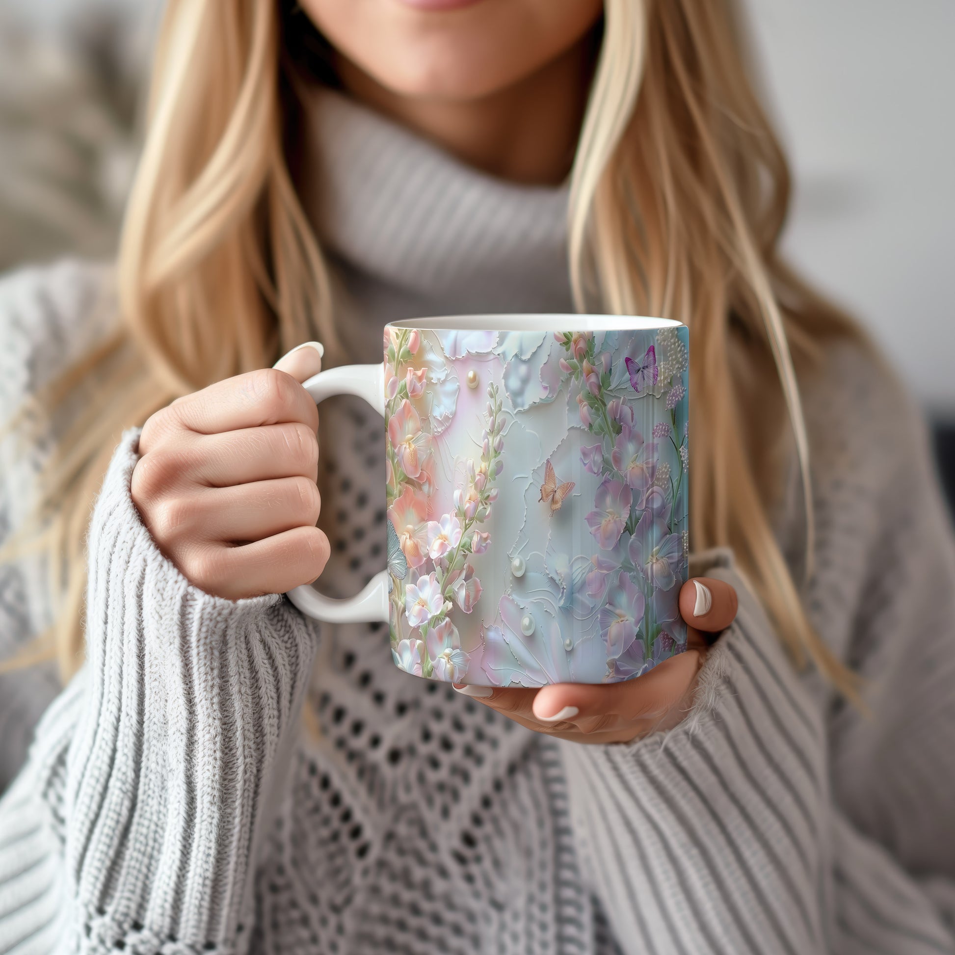 Elegantní hrnek s květinovým vzorem a motýly v jemných pastelových barvách. Tento stylový kousek je ideální pro každodenní používání a skvělým dárkem pro milovníky přírody. Materiál: keramika. Objem: 330 ml. Vhodné do myčky i mikrovlnky. Díky svému designu přináší do vašeho domova příjemnou atmosféru.