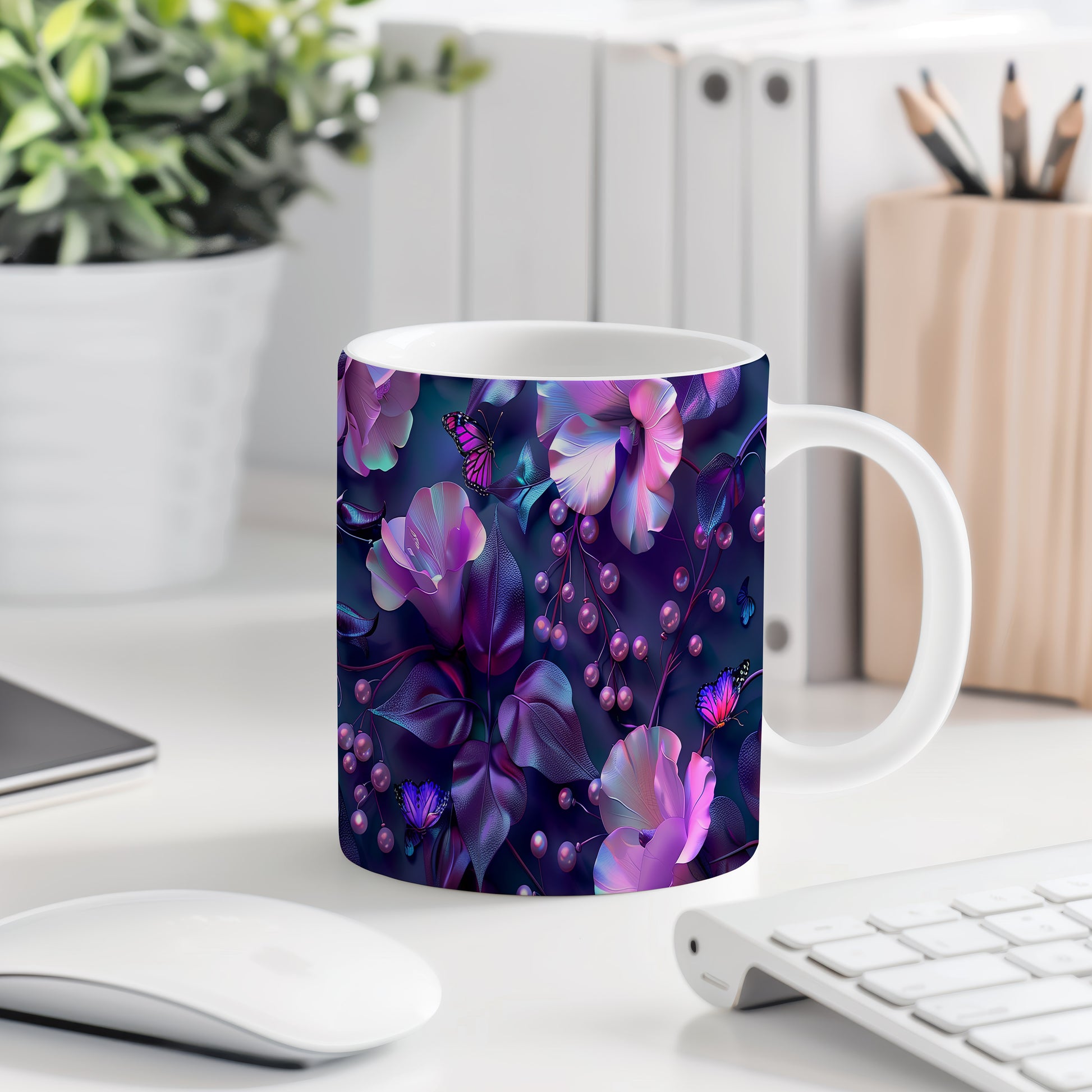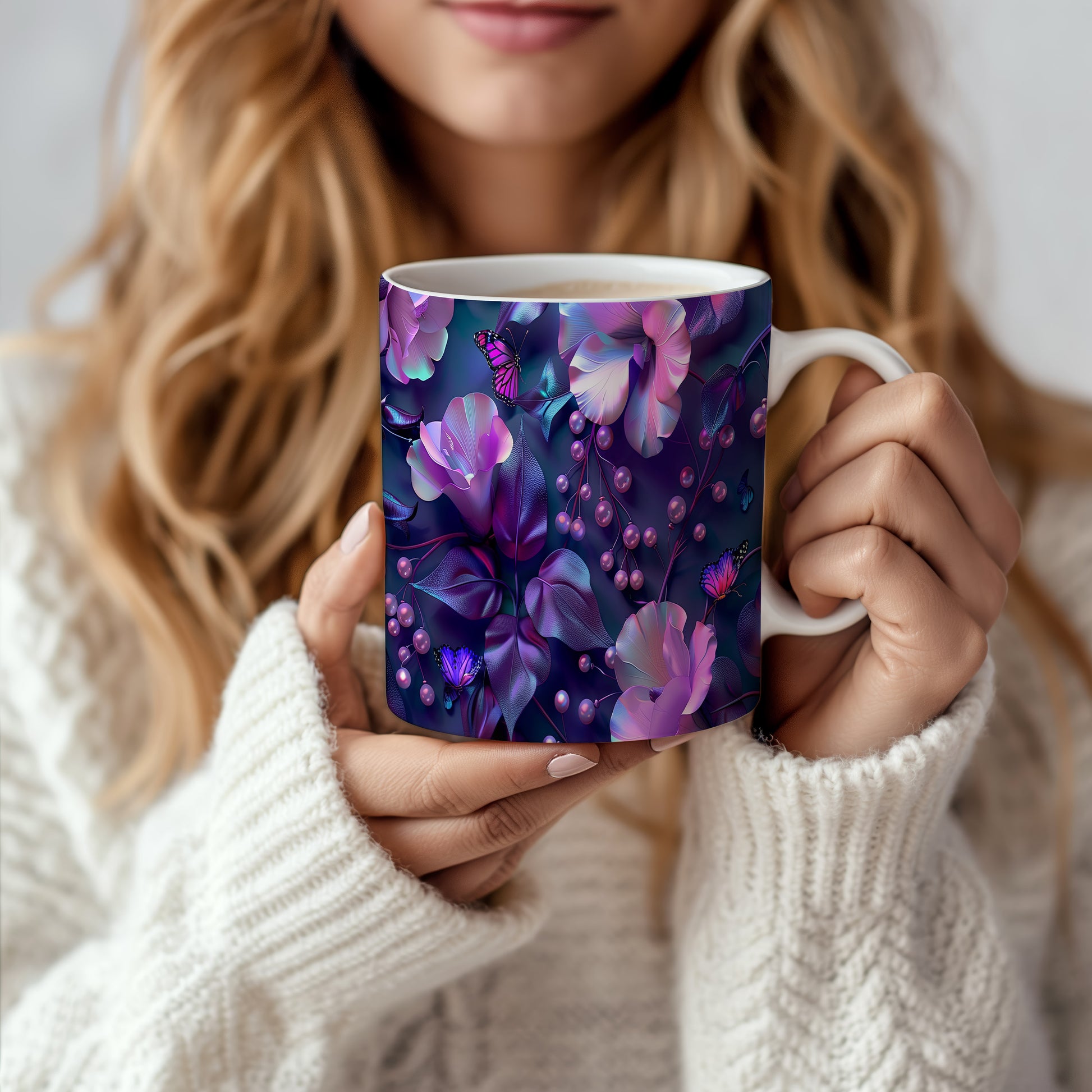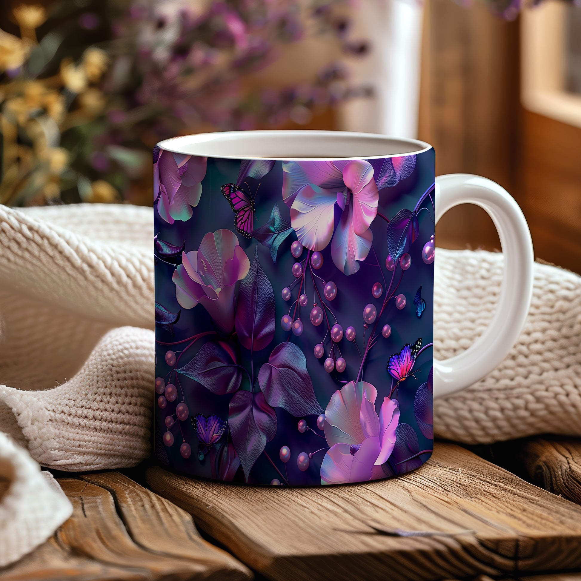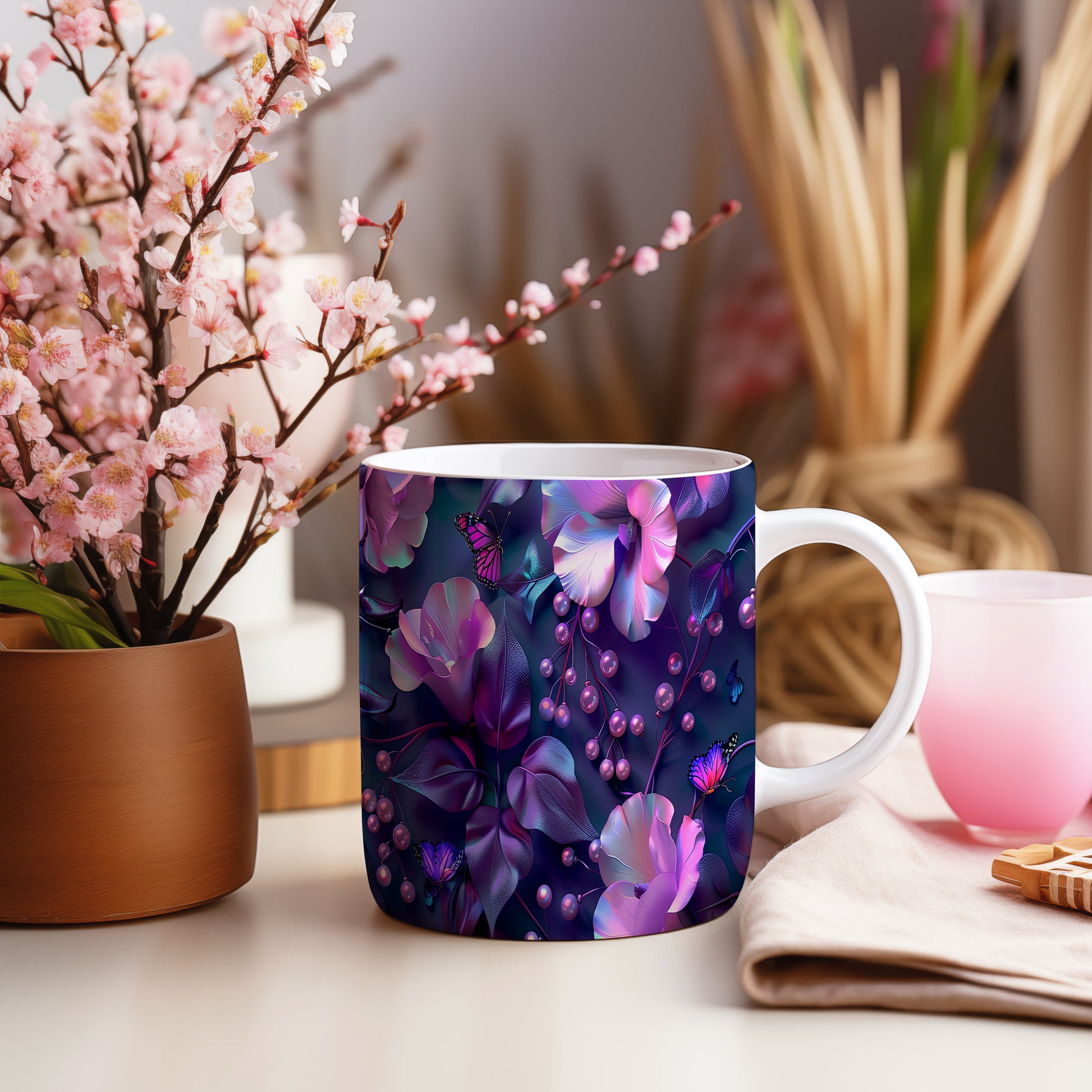 Elegantní hrnek s živým květinovým vzorem a barevnými motýly. Tento stylový kousek je ideální pro každodenní použití a skvělý tip na dárek pro milovníky přírody. Materiál: keramika. Objem: 330 ml. Vhodné do myčky i mikrovlnky. Užívejte si svou oblíbenou kávu nebo čaj v krásném designu, který potěší každého.