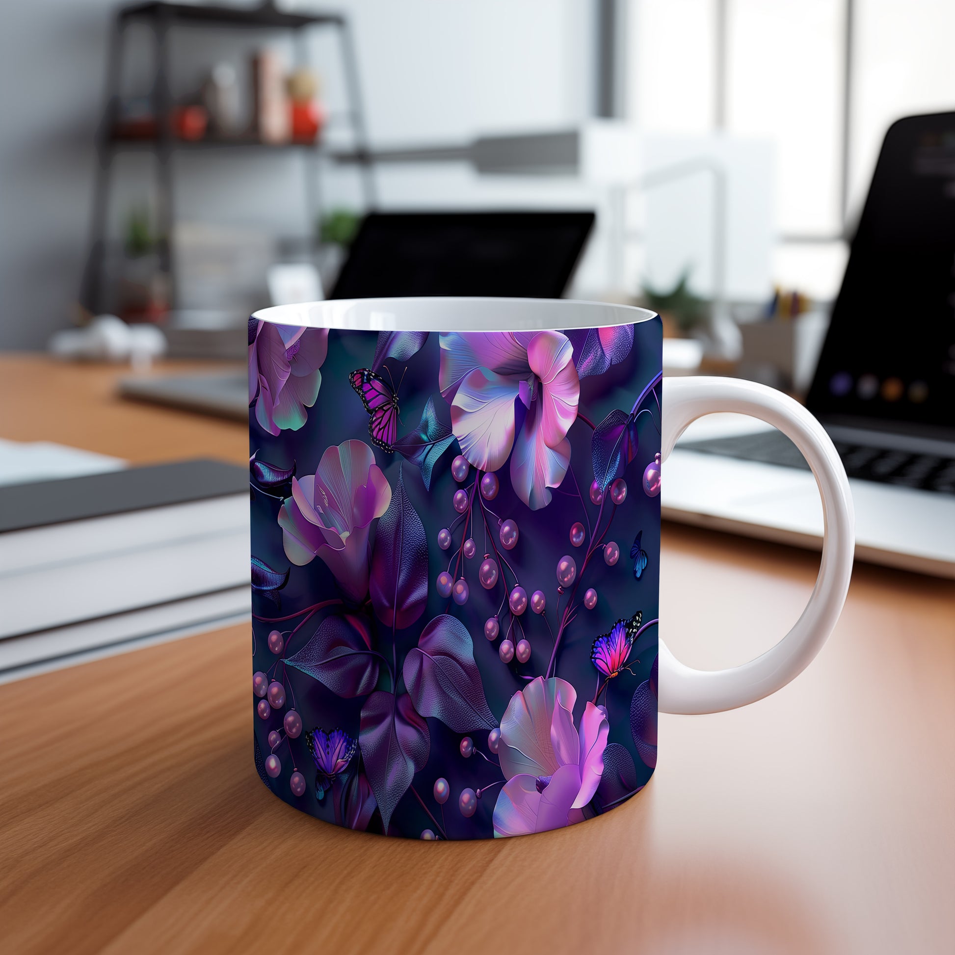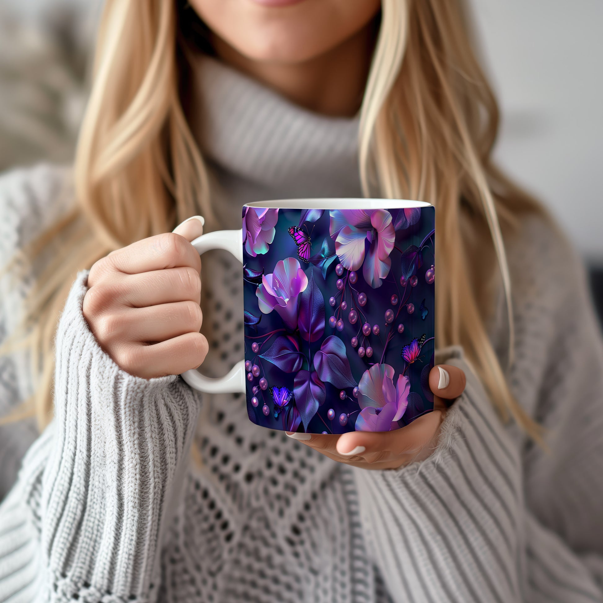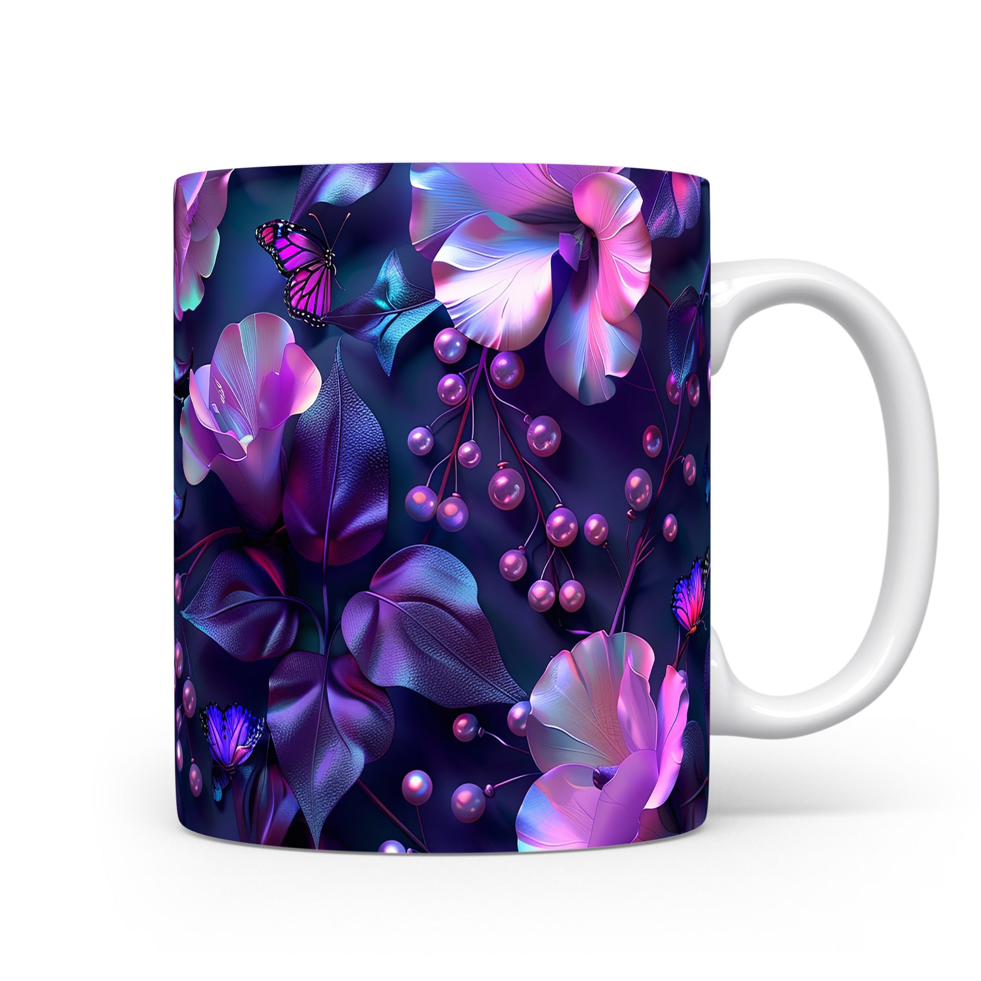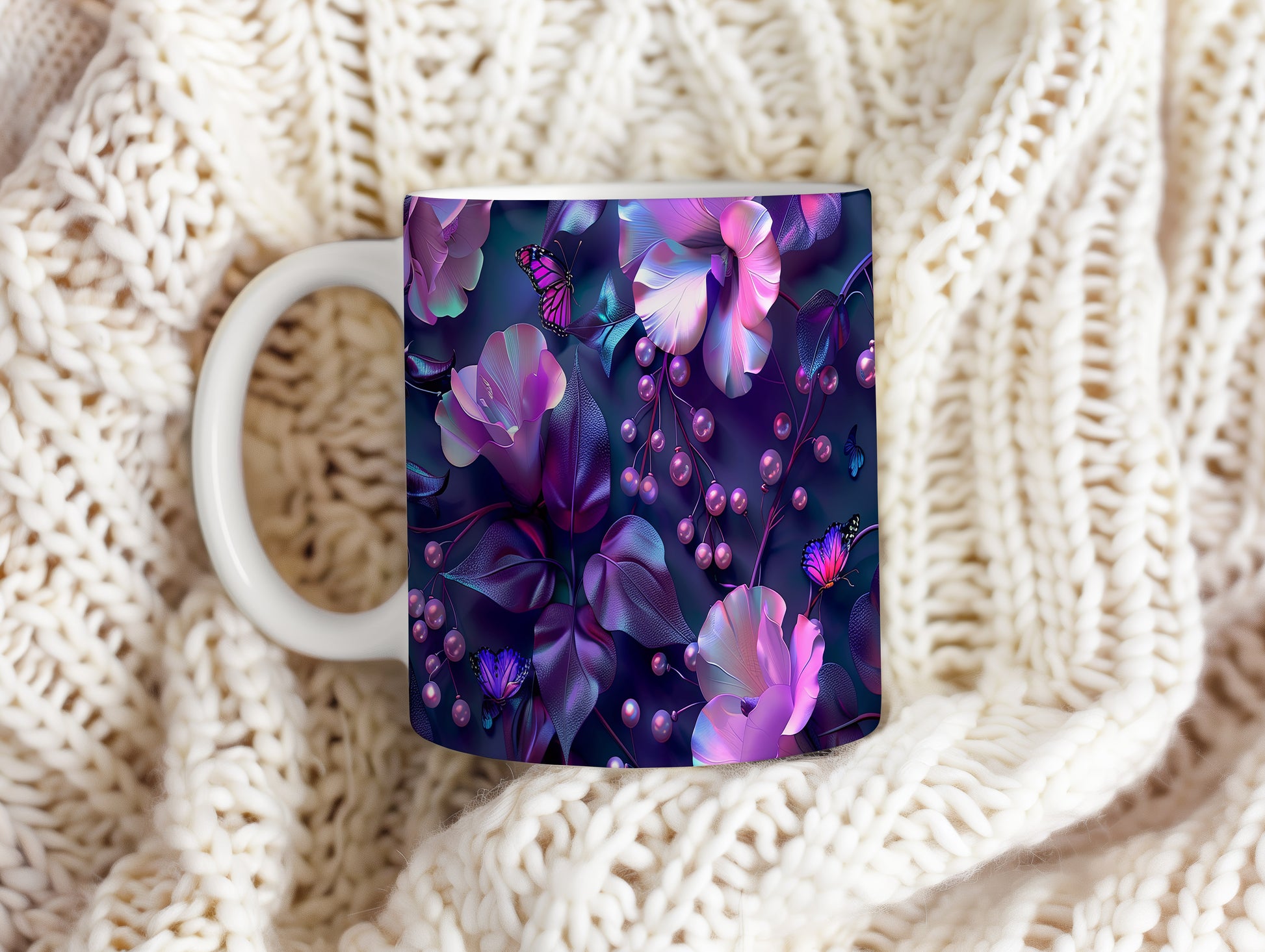 Elegantní hrnek s živým květinovým vzorem a barevnými motýly. Tento stylový kousek je ideální pro každodenní použití a skvělý tip na dárek pro milovníky přírody. Materiál: keramika. Objem: 330 ml. Vhodné do myčky i mikrovlnky. Užívejte si svou oblíbenou kávu nebo čaj v krásném designu, který potěší každého.