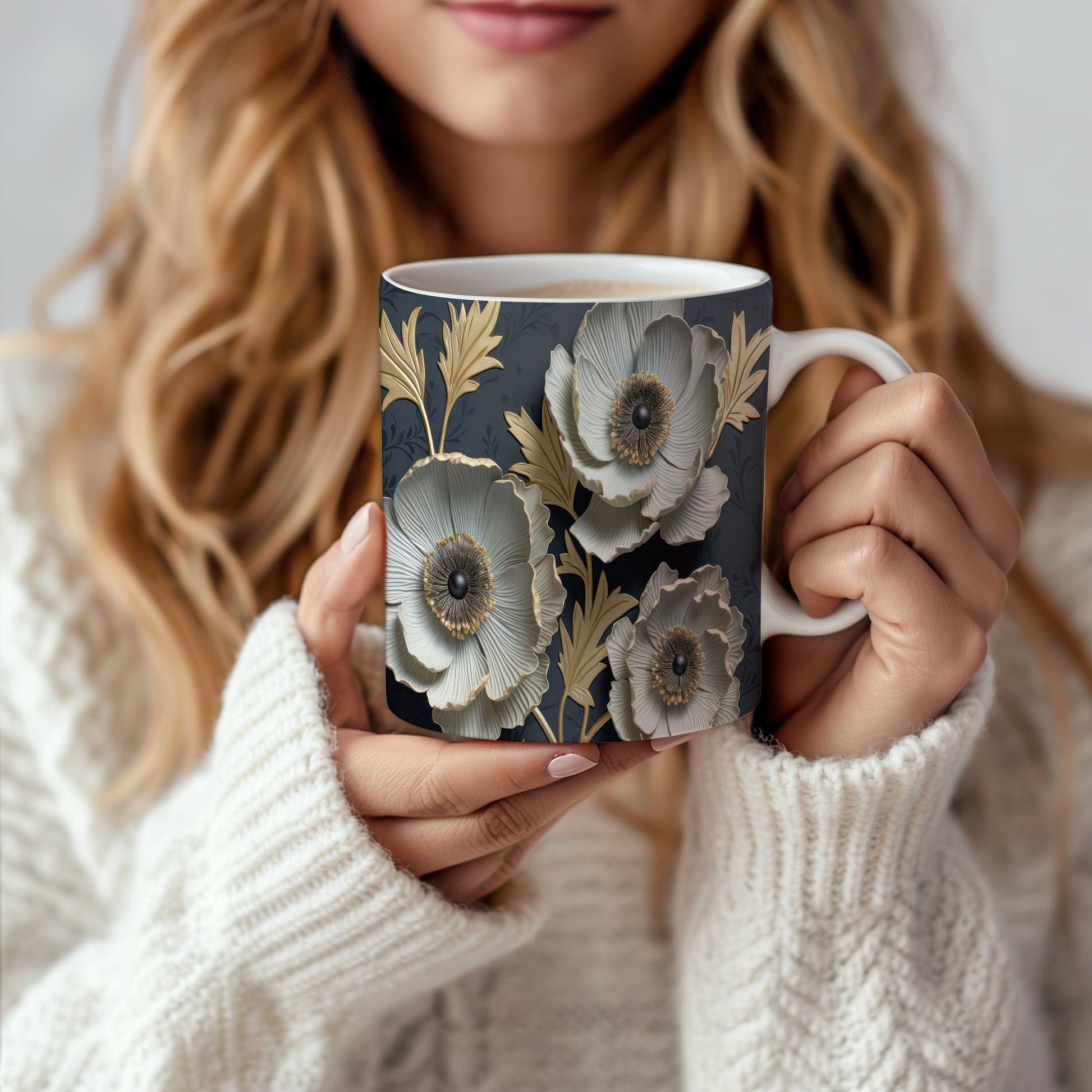 Hrnek s květinovým vzorem – modrými detaily