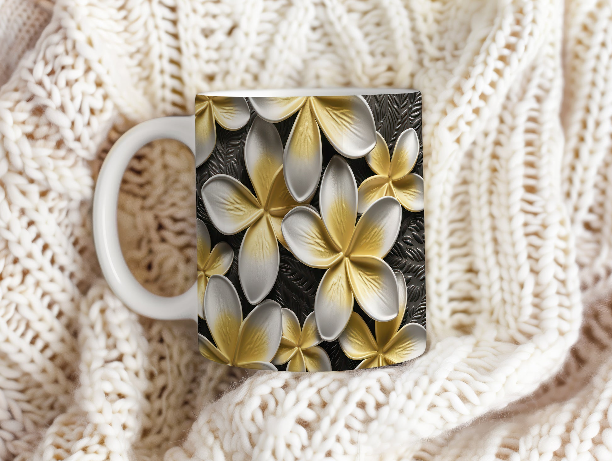 Hrnek s květinovým vzorem s bílými a zlatými květy