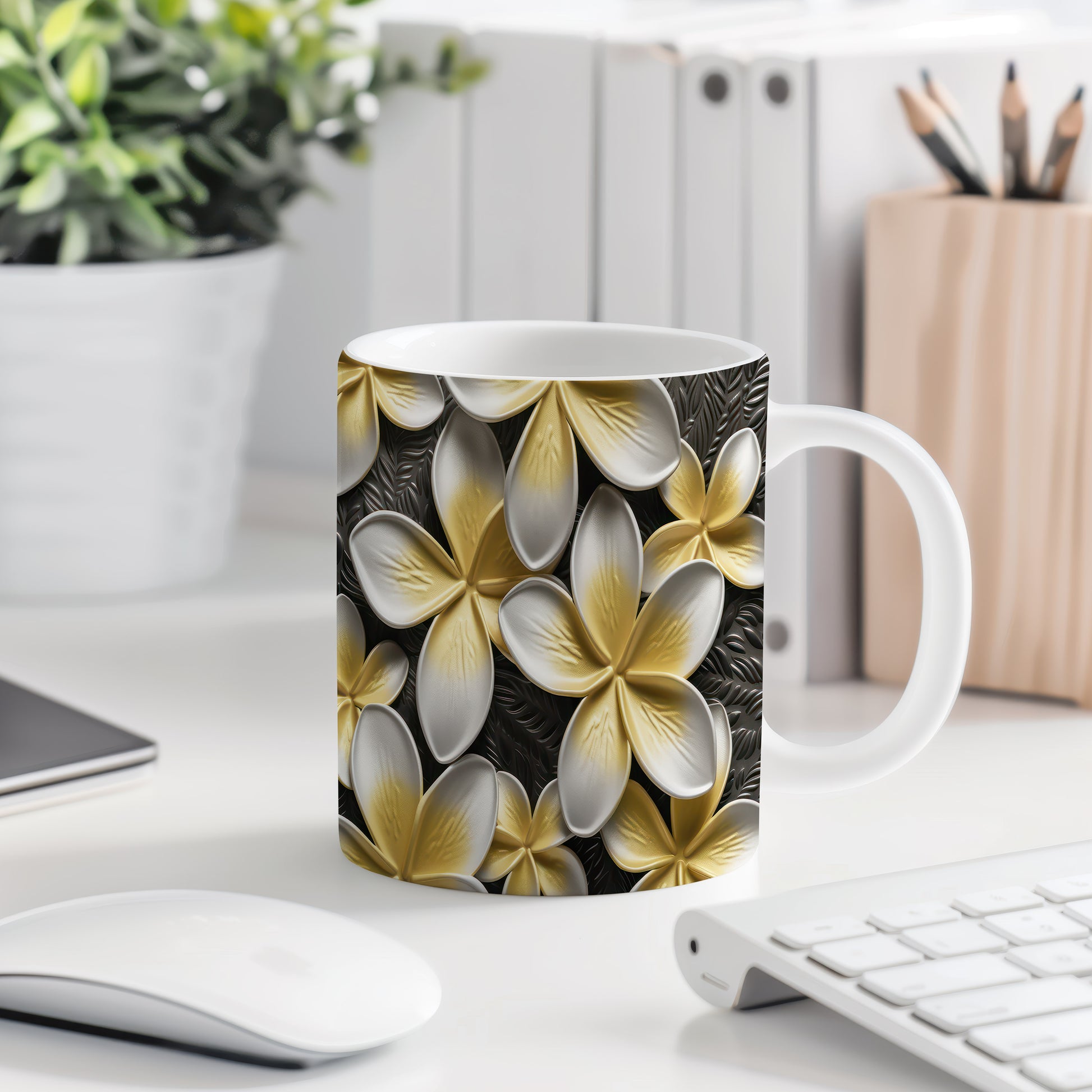 Stylový hrnek s květinovým vzorem v elegantních bílých a zlatých tónech. Tento hrnek je ideální pro milovníky květin a skvělým dárkem pro každého, kdo ocení krásu v každodenním životě. Materiál: keramika. Objem: 330 ml. Vhodné do myčky i mikrovlnky. Díky svému designu přináší do vašeho domova nádech elegance a radosti.