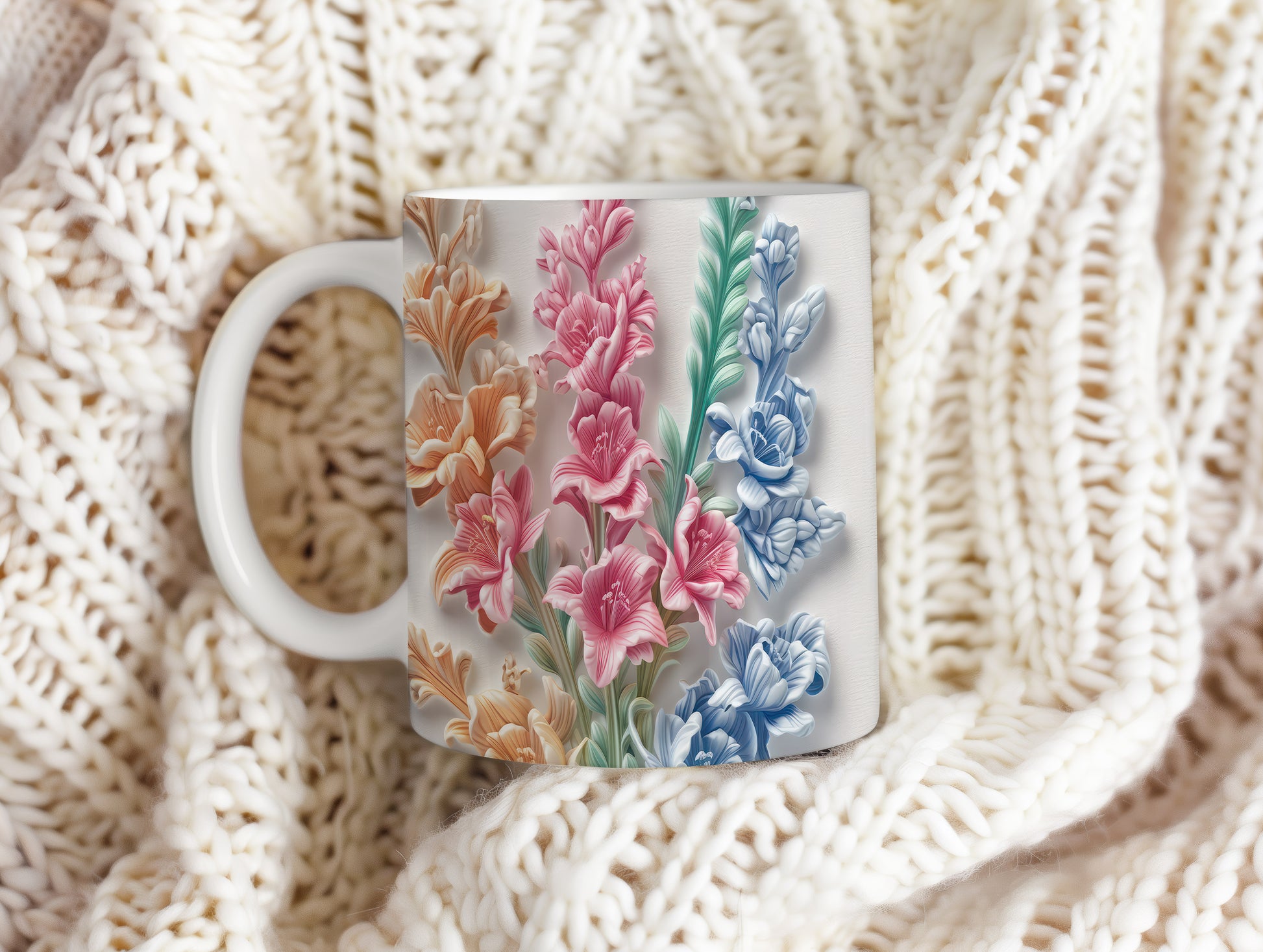 Hrnek s květinovým vzorem v béžových a modrých tónech