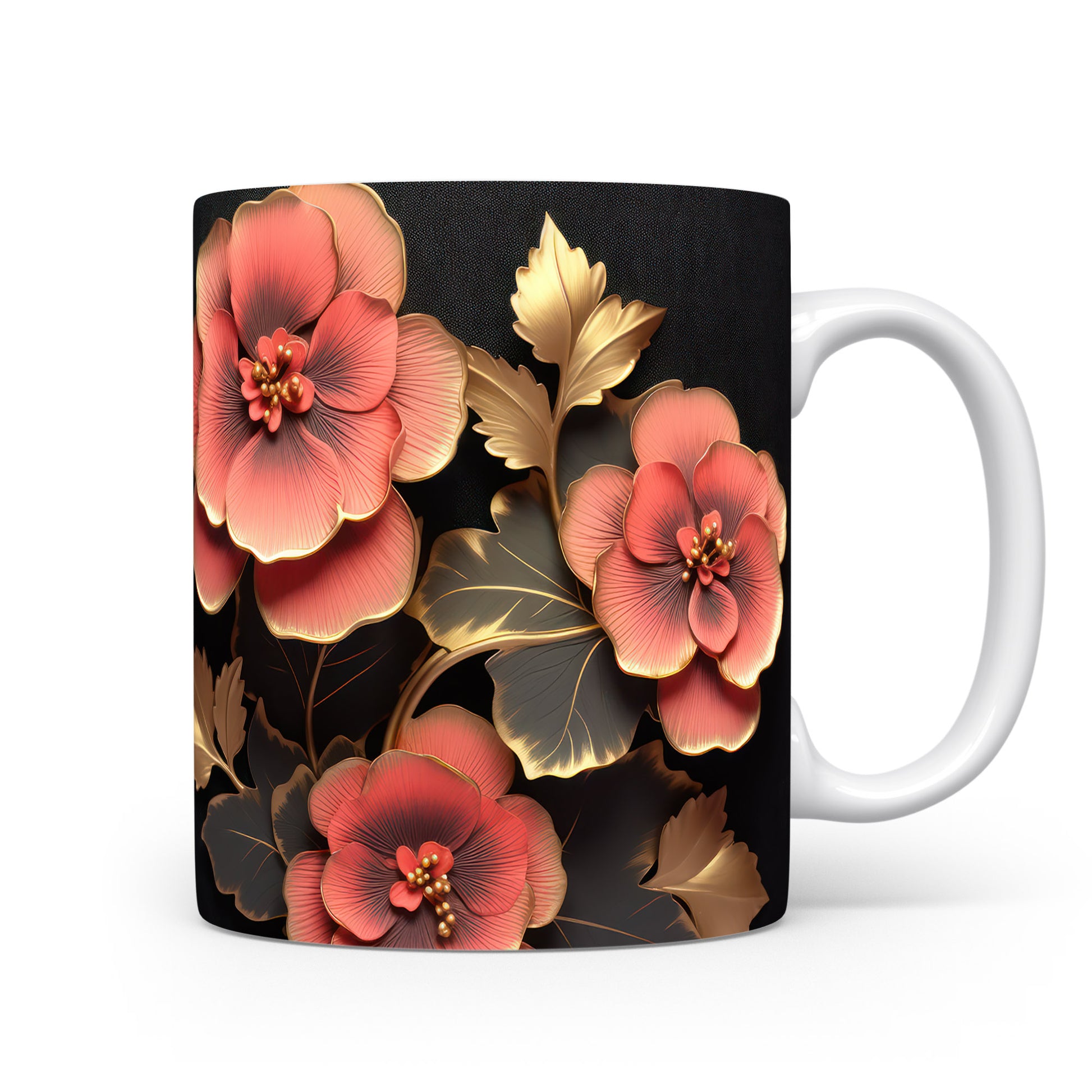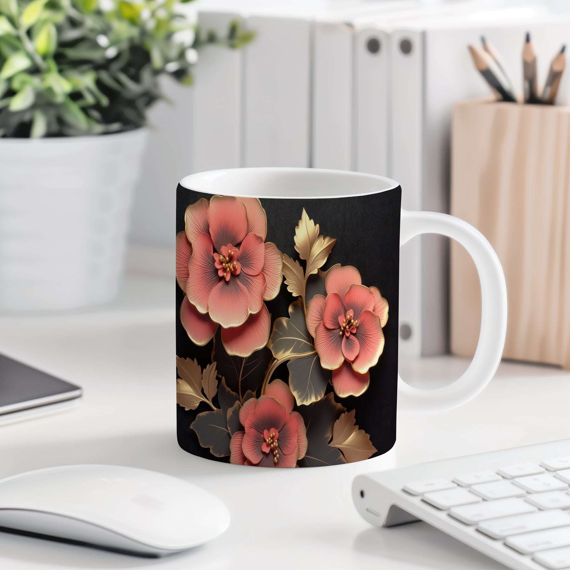 Tento elegantní hrnek s motivem růžových květin a zlatých listů přináší do vašeho domova styl a šarm. Je ideální pro milovníky květinových designů a skvělým dárkem pro přátele či rodinu. Materiál: keramika. Objem: 330 ml. Vhodné do myčky i mikrovlnky. Díky svému praktickému použití se stane oblíbeným kouskem ve vaší kuchyni.