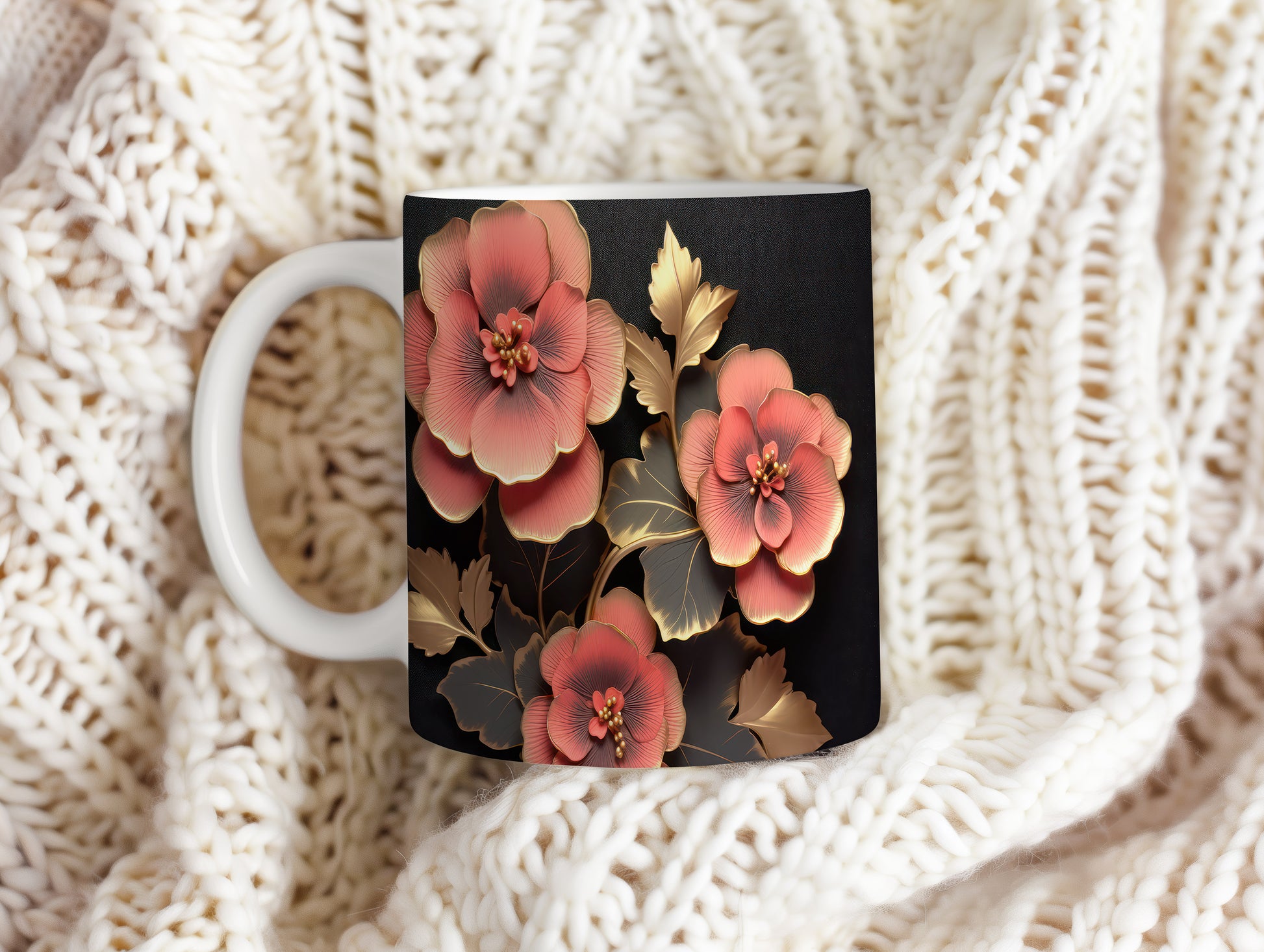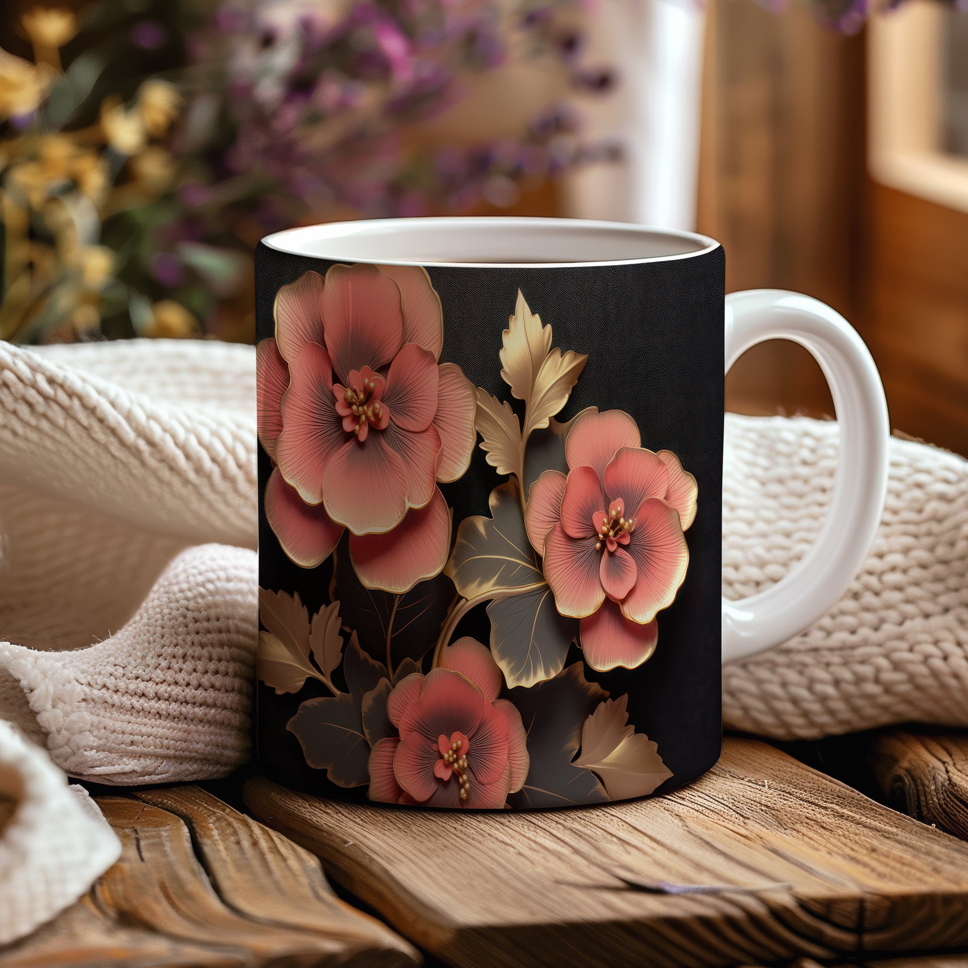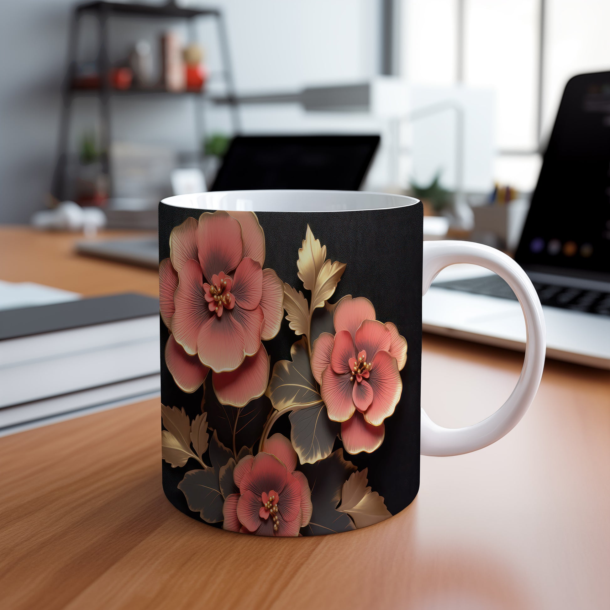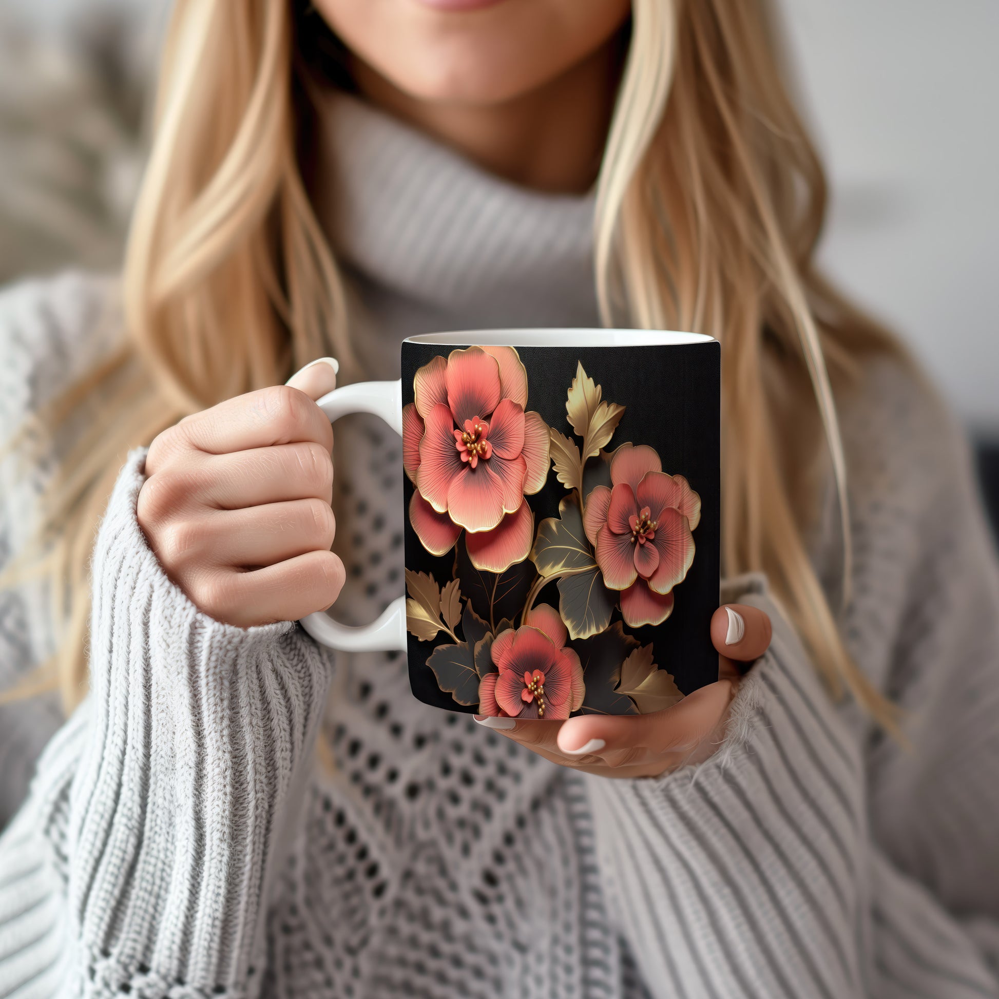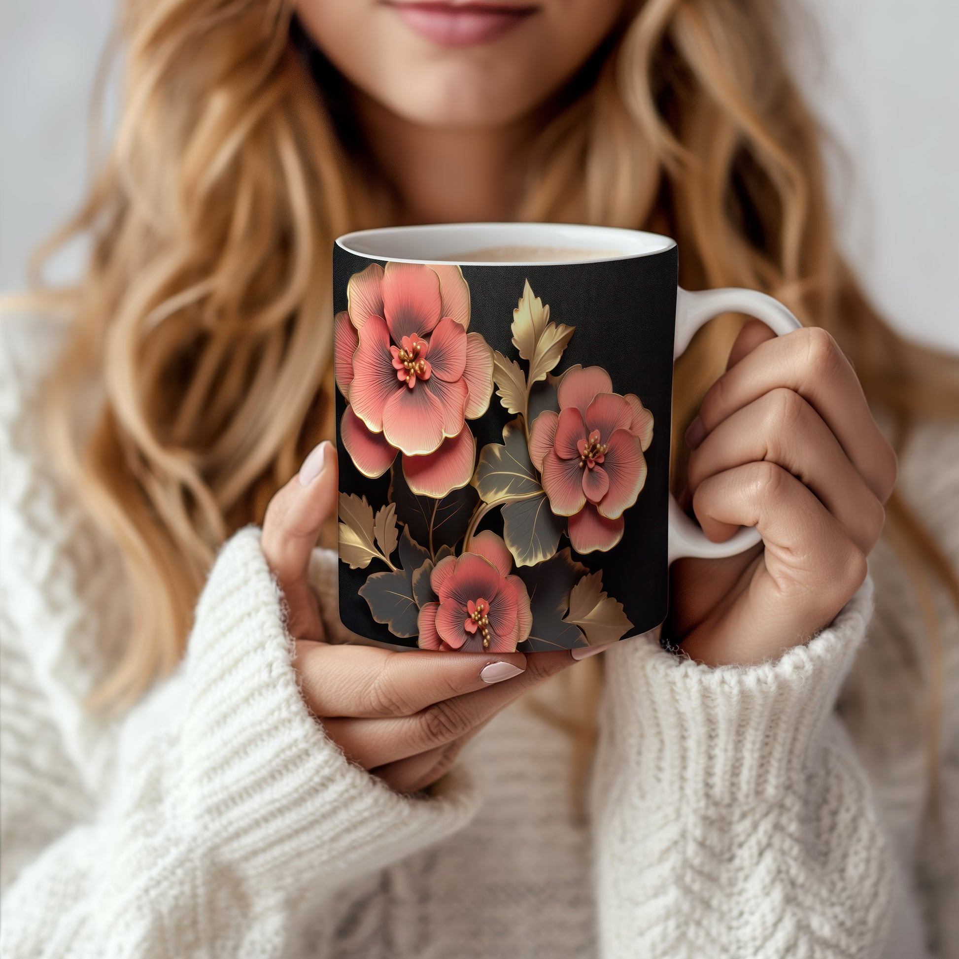 Hrnek s květinovým vzorem v černé barvě – černým akcentem