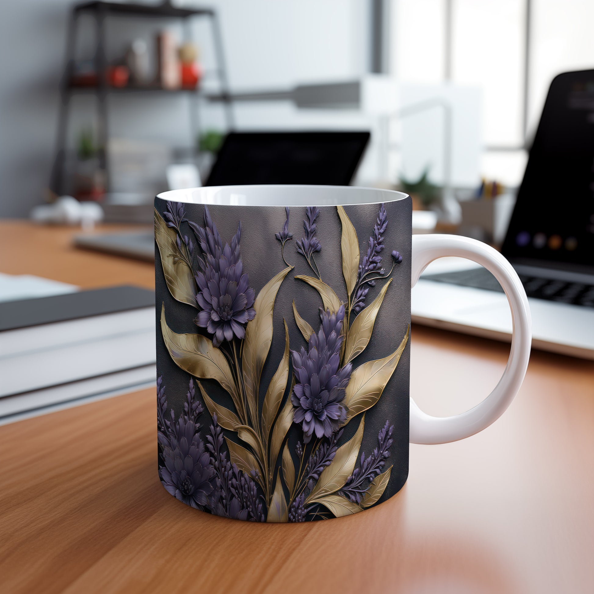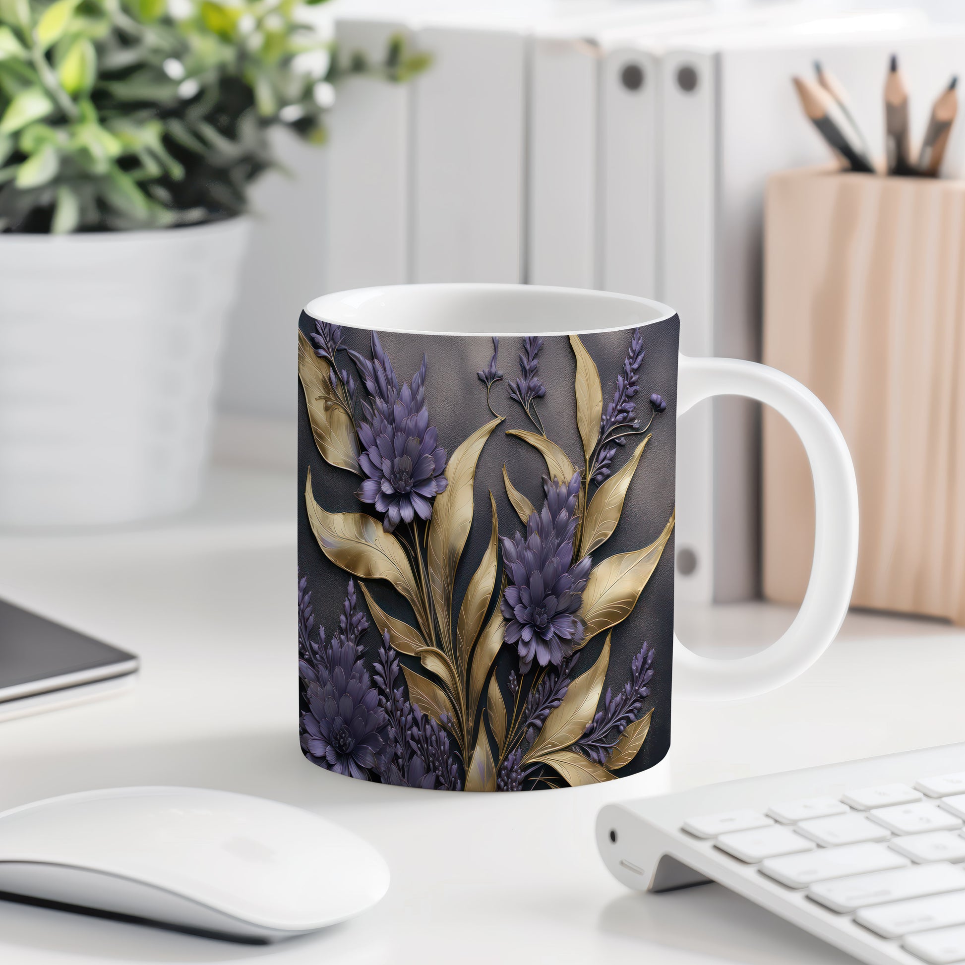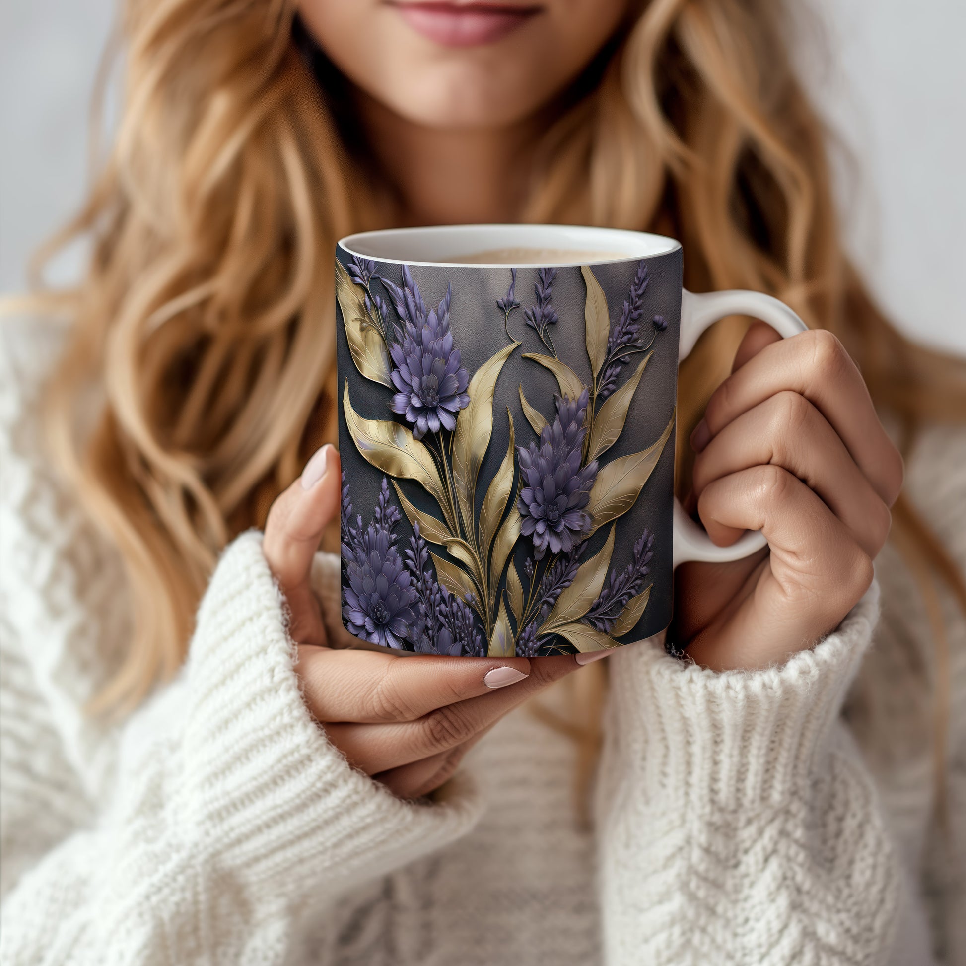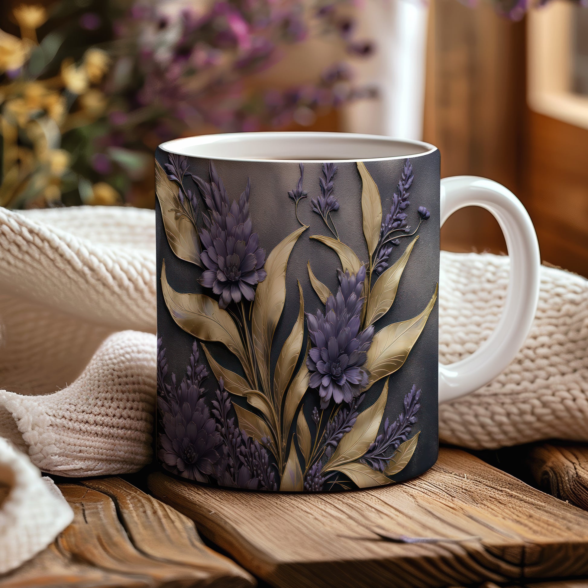 Tento elegantní hrnek s detailním květinovým motivem v odstínech fialové a zlaté je ideální pro milovníky stylového nádobí. Skvěle se hodí jako dárek pro přátele nebo rodinu, kteří ocení krásu a funkčnost. Materiál: keramika. Objem: 330 ml. Vhodné do myčky i mikrovlnky. Užijte si své oblíbené nápoje v tomto jedinečném hrnku, který přináší radost do každého dne.