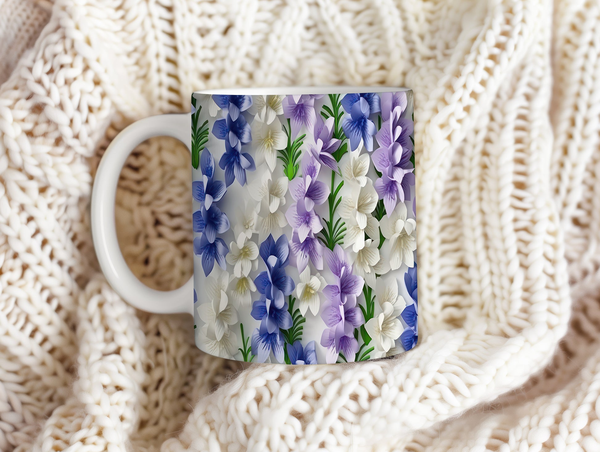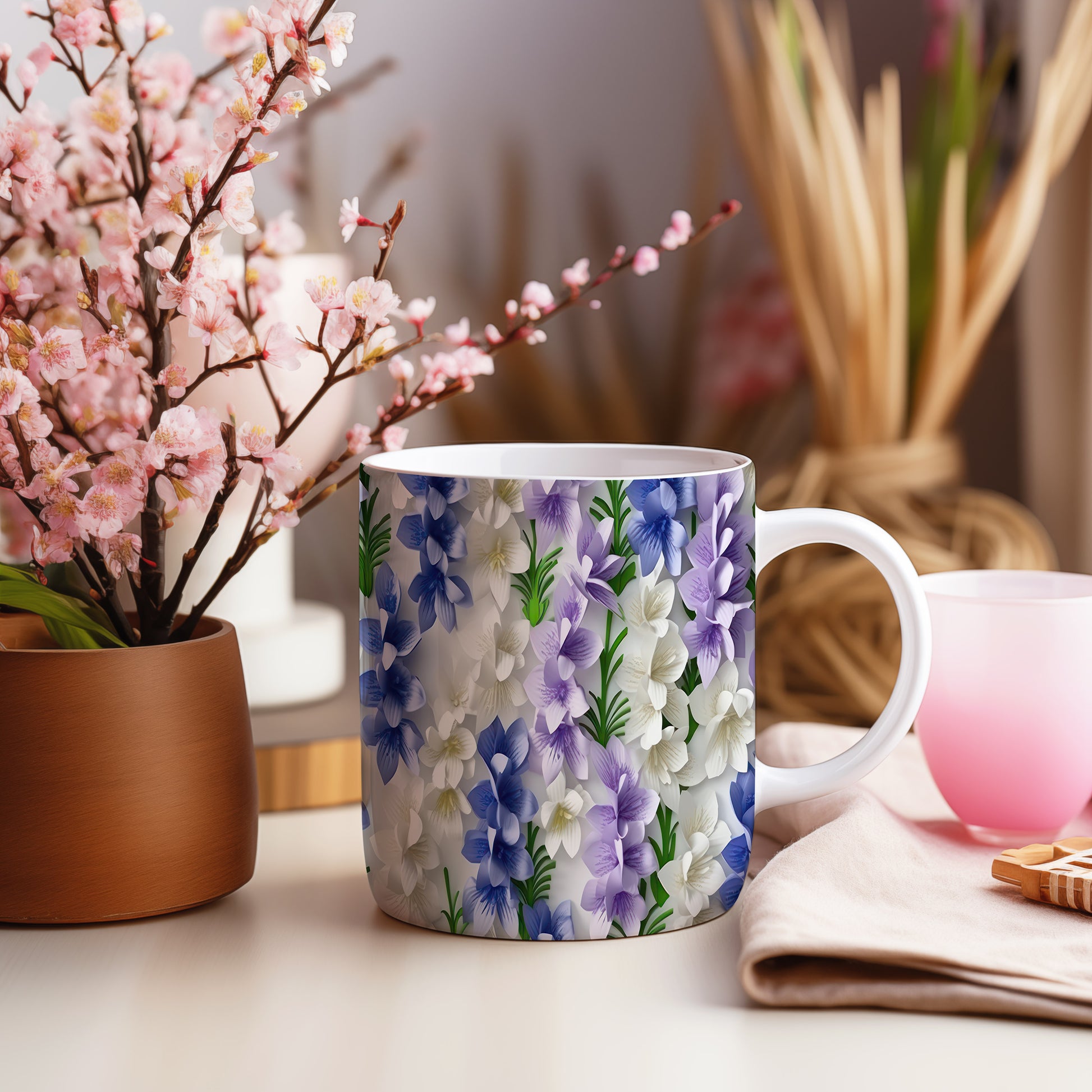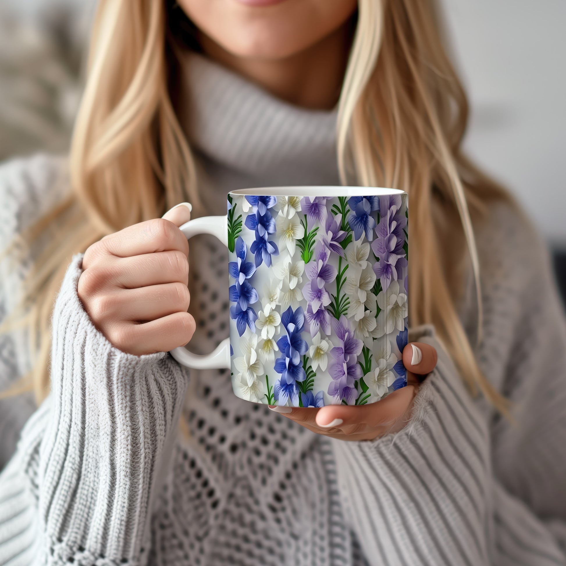 Hrnek s květinovým vzorem v modro