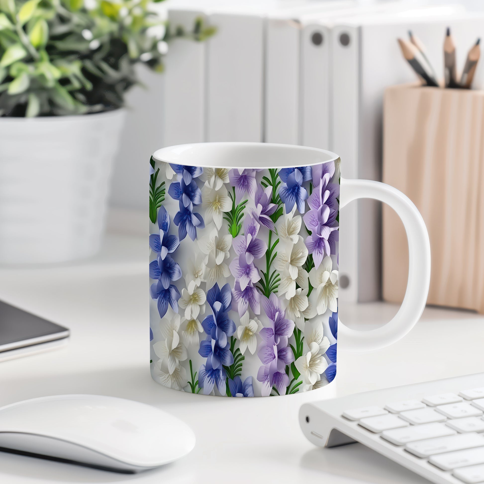 Tento keramický hrnek s květinovým vzorem v modro – fialových odstínech potěší všechny milovníky přírody a květin. Je skvělým dárkem pro přátele nebo rodinu, kteří ocení krásu a eleganci. Materiál: keramika. Objem: 330 ml. Vhodné do myčky i mikrovlnky. Používání tohoto hrnku přináší radost z každého doušku oblíbeného nápoje.