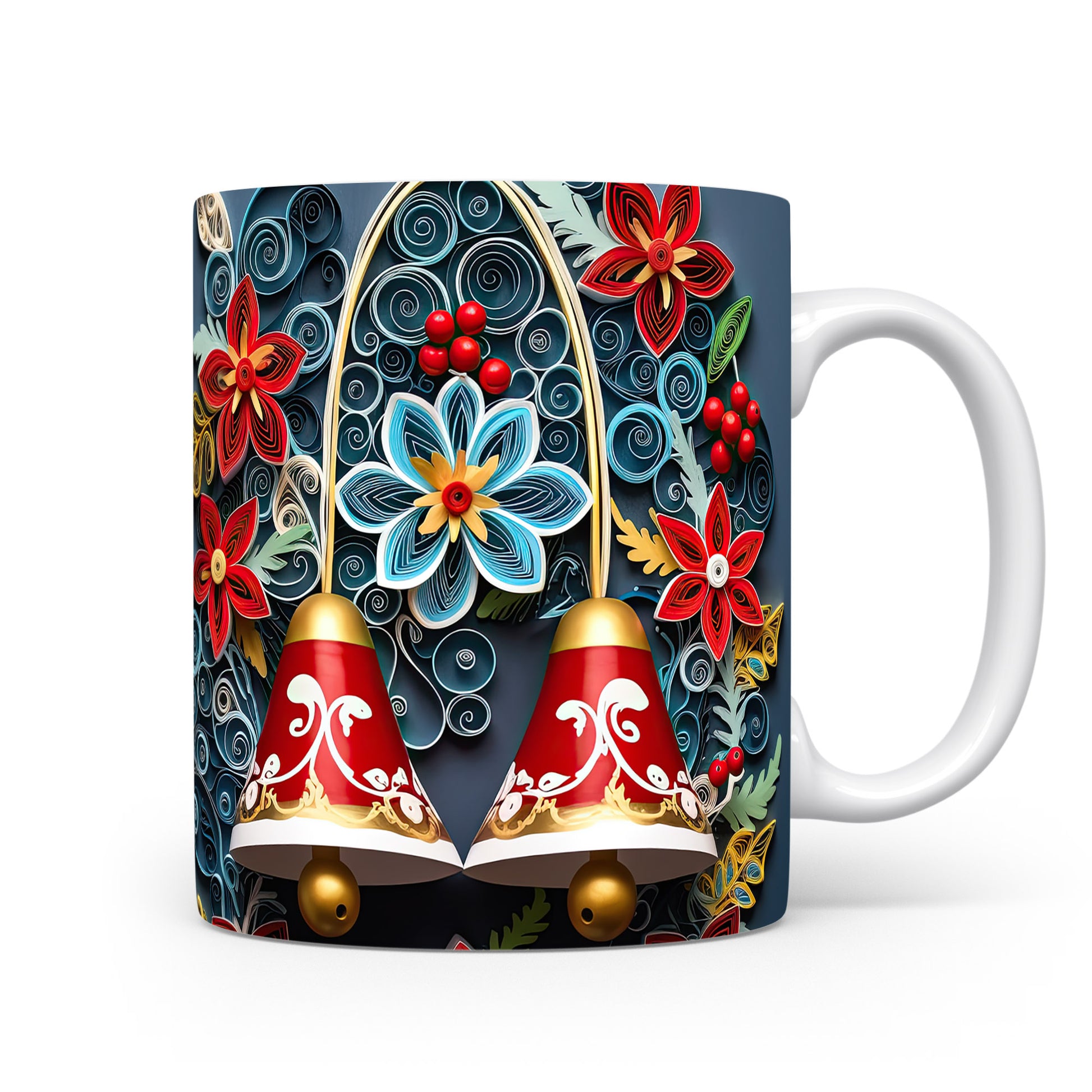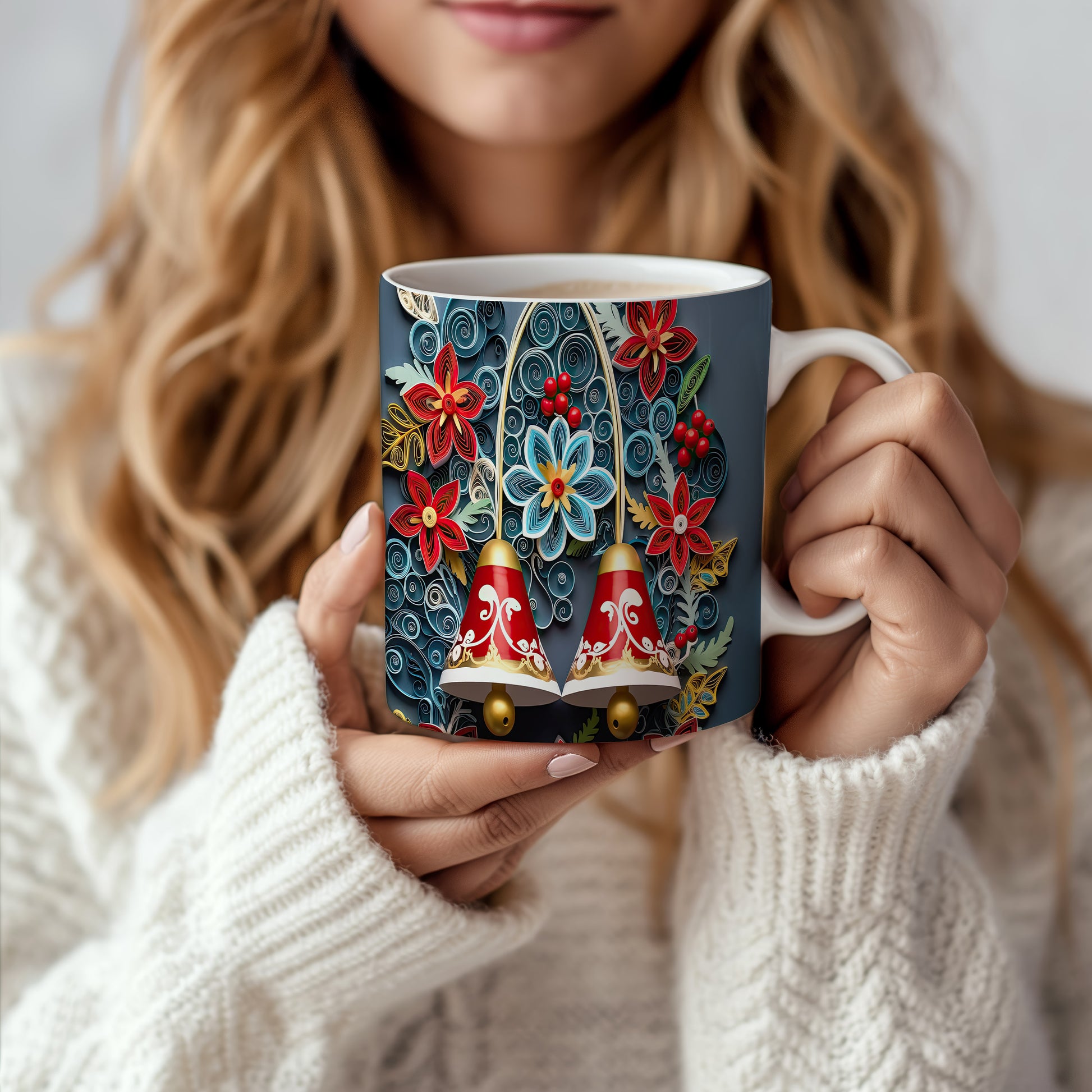 Hrnek s květinovým vzorem v modrých a zelených tónech…