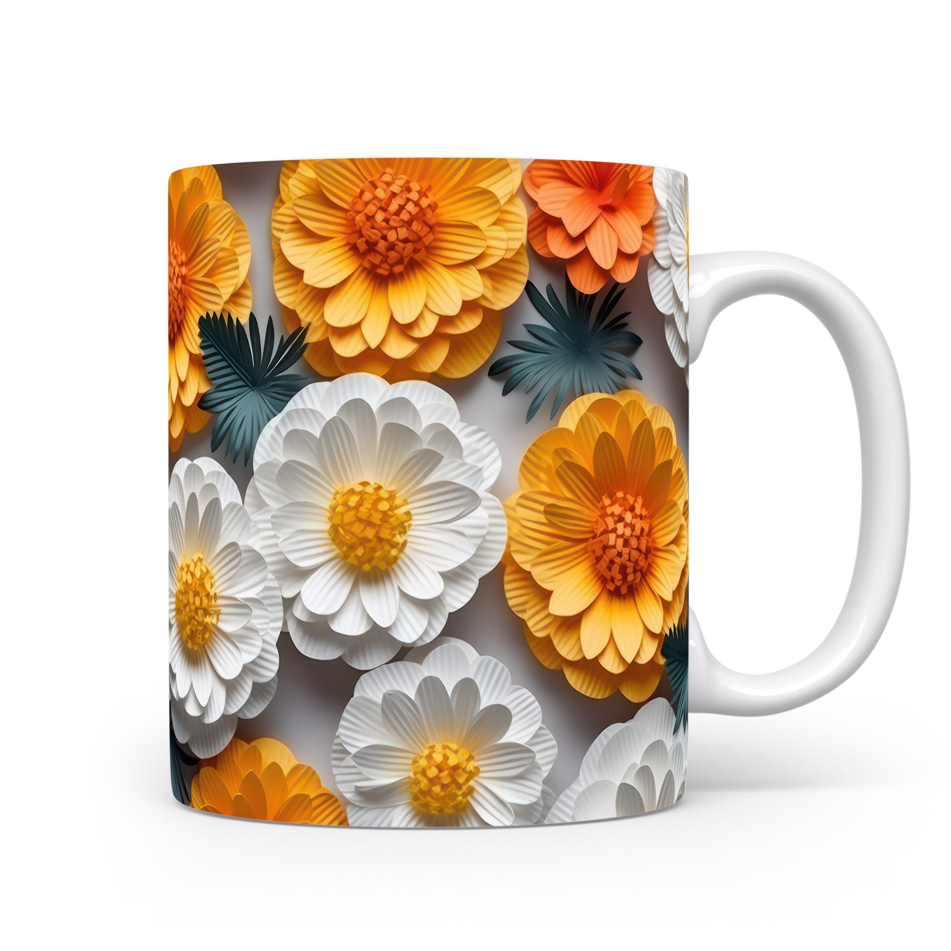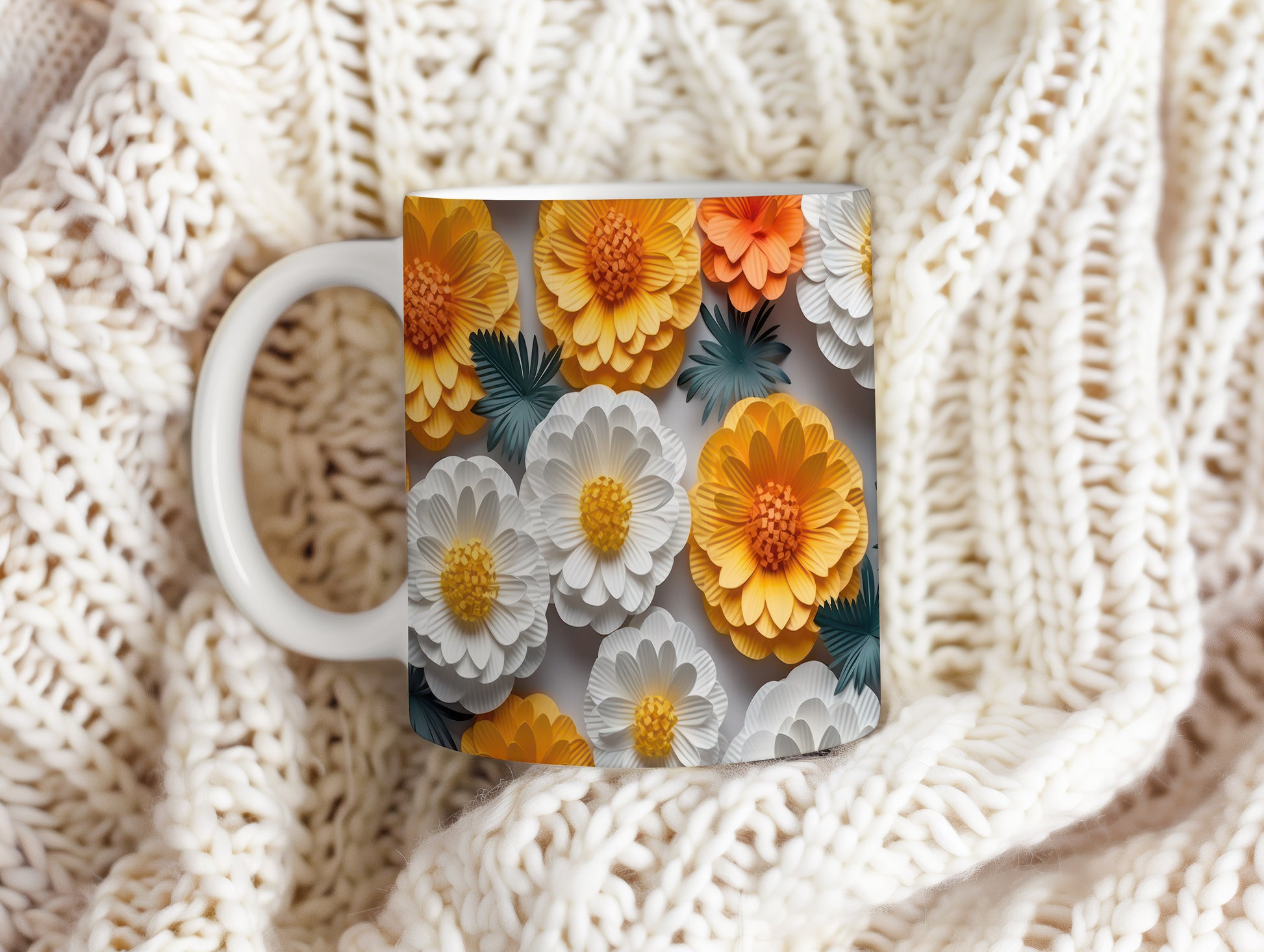 Hrnek s květinovým vzorem v oranžových a zelených tónech