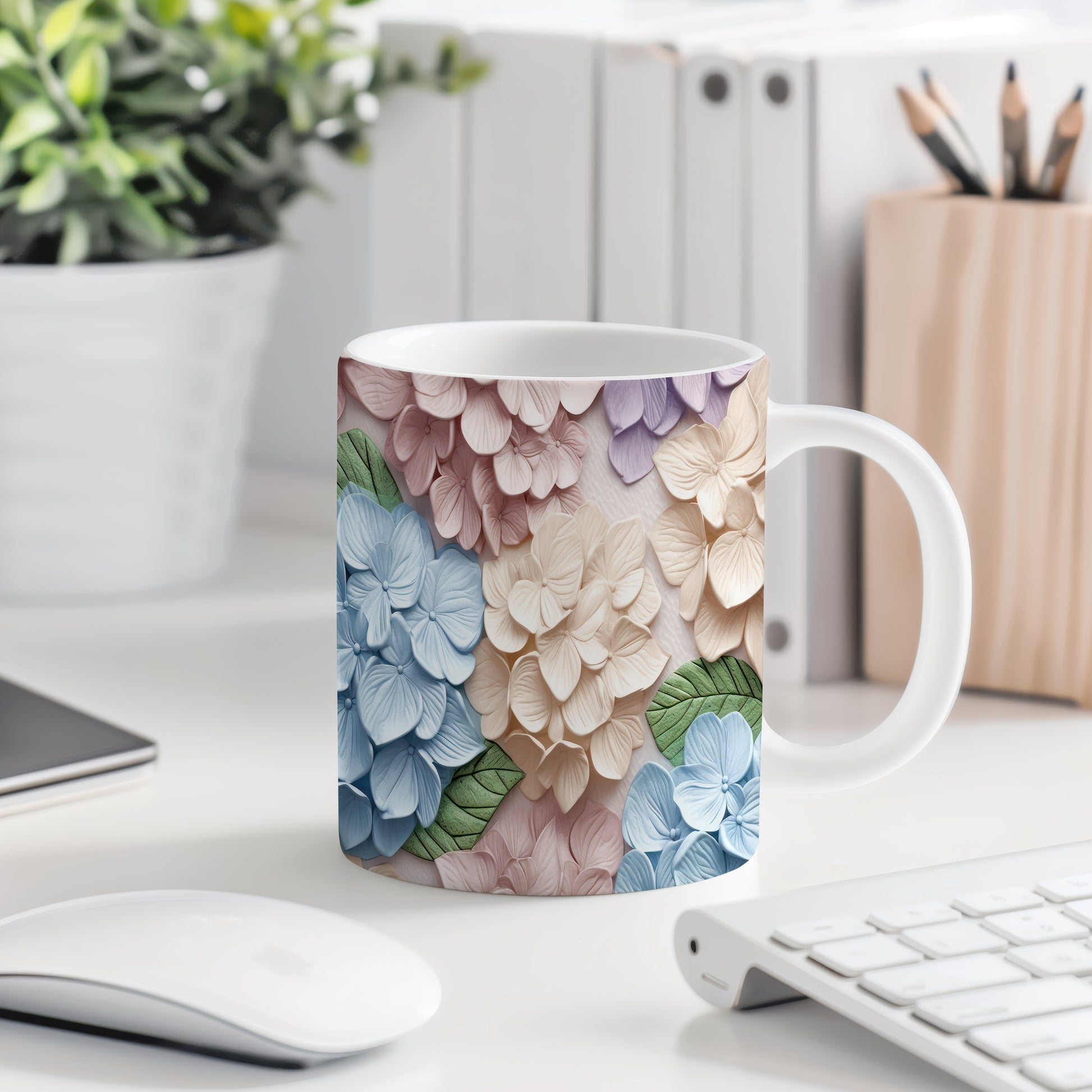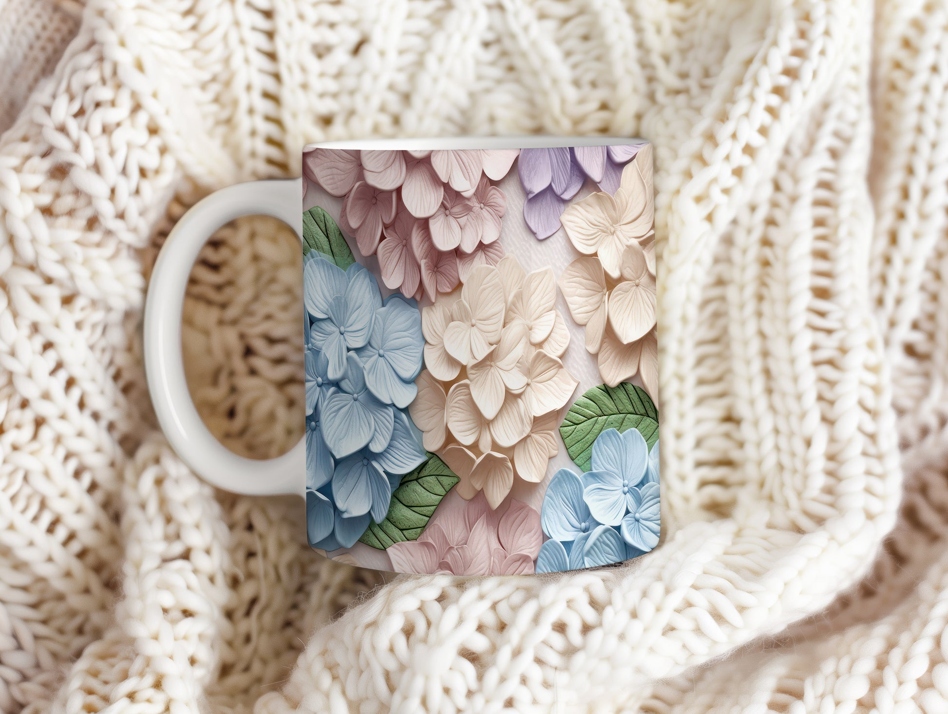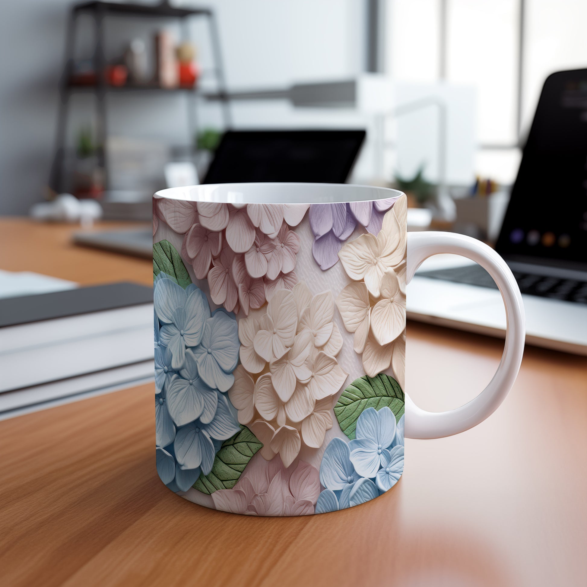 Hrnek s květinovým vzorem v pastelových barvách – 3D efektem
