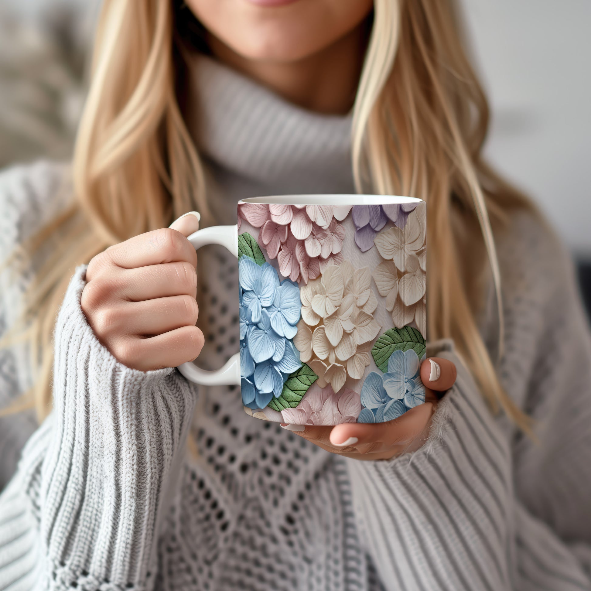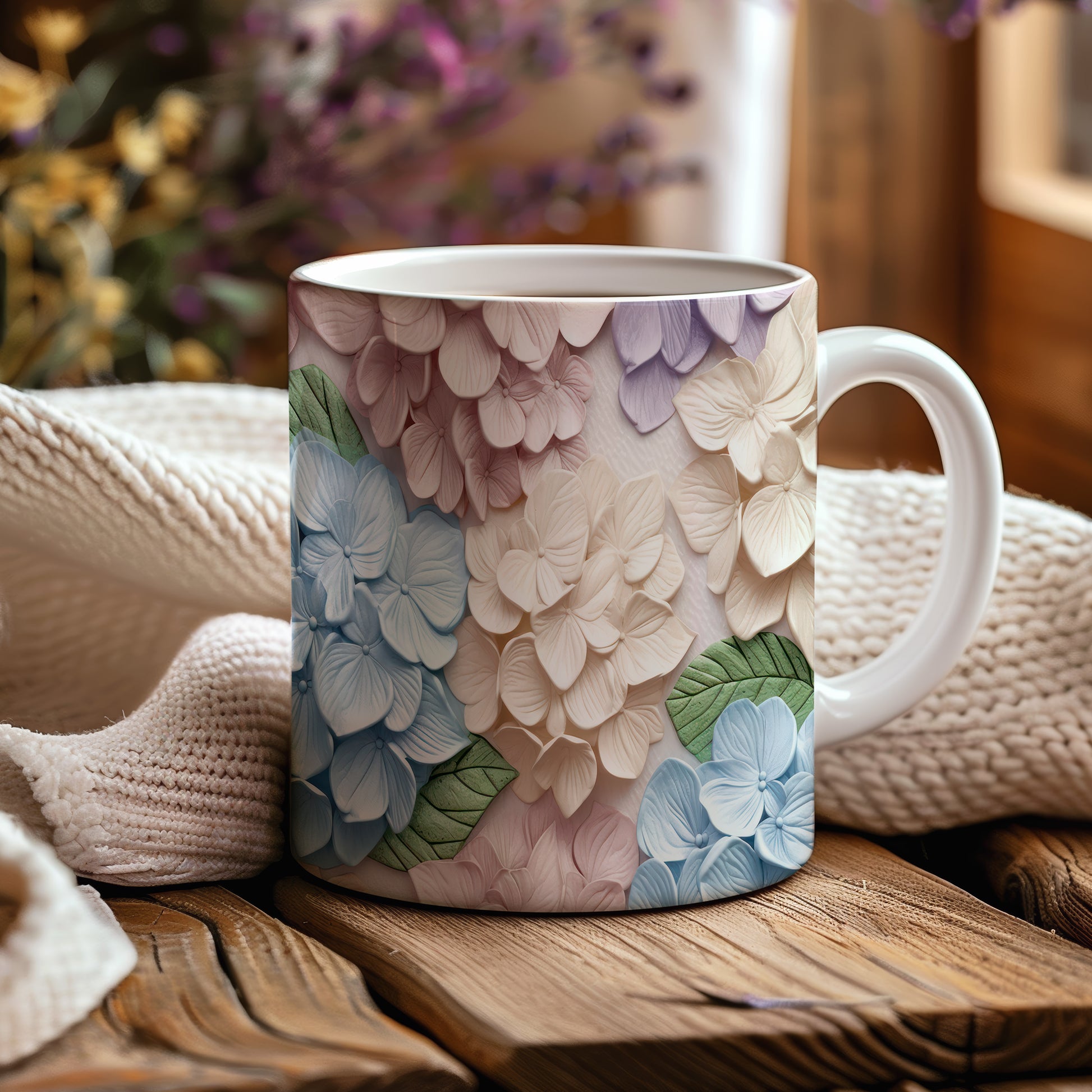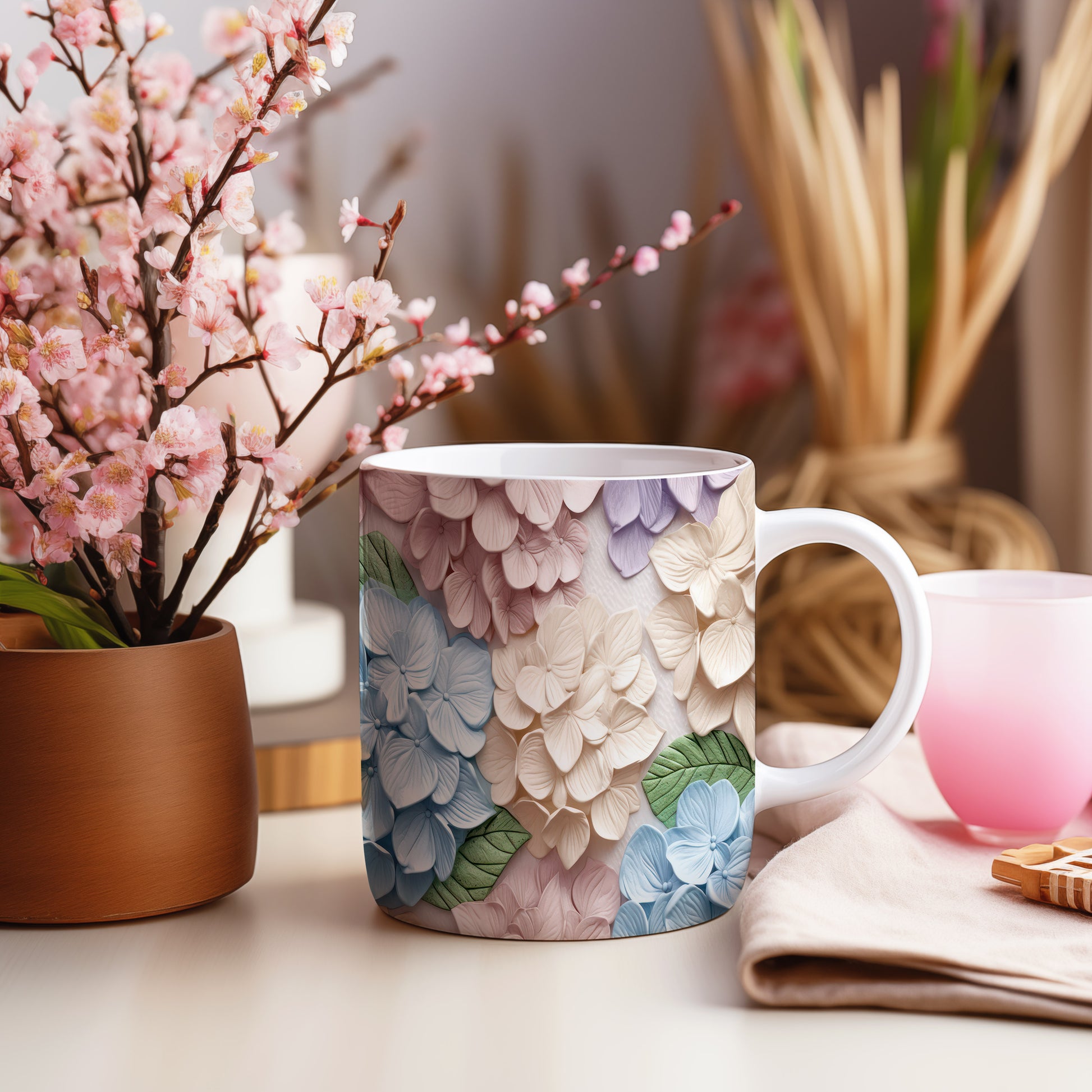 Hrnek s květinovým vzorem v pastelových barvách – 3D efektem