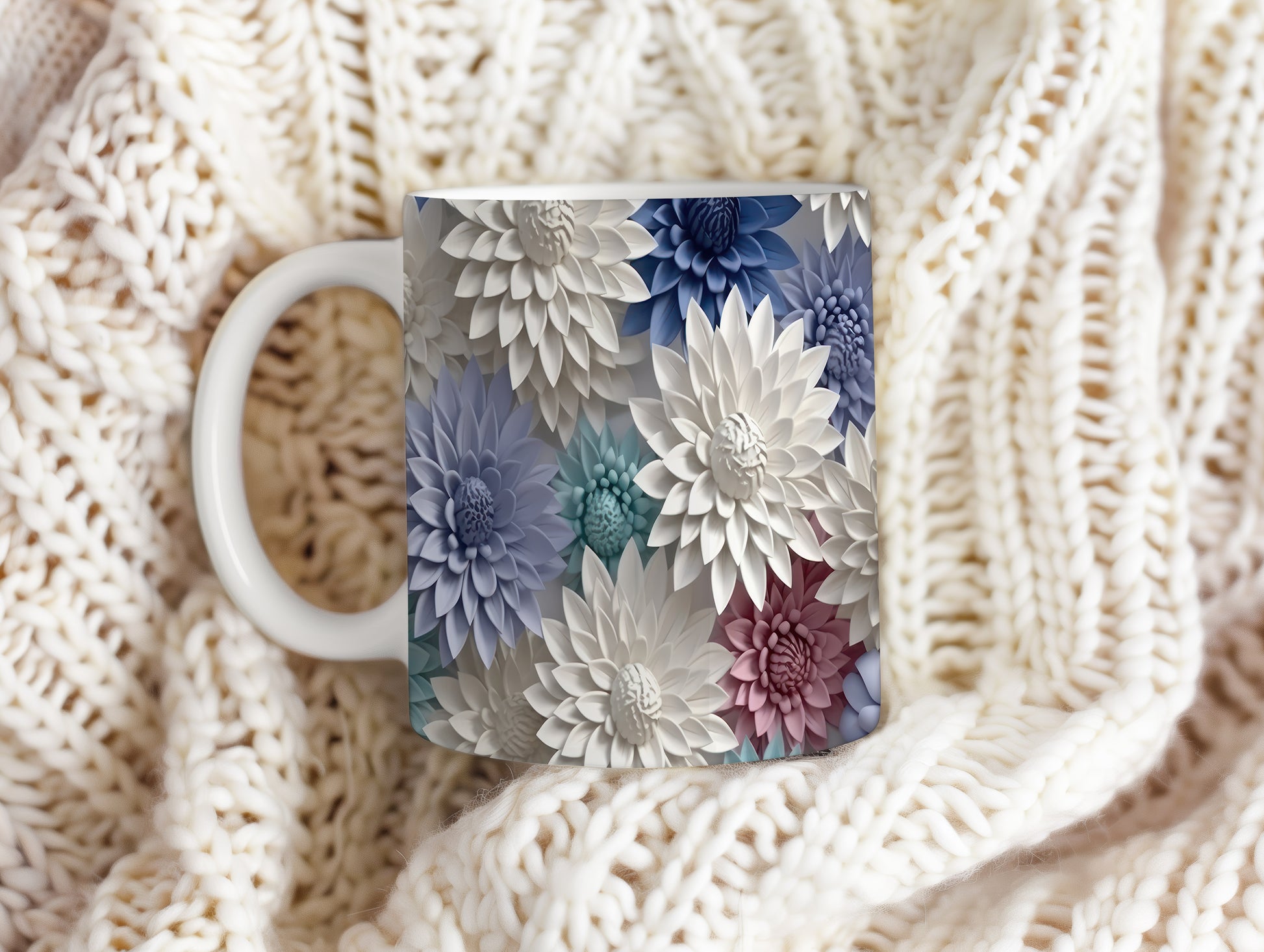 Hrnek s květinovým vzorem v pastelových barvách – modrými detaily