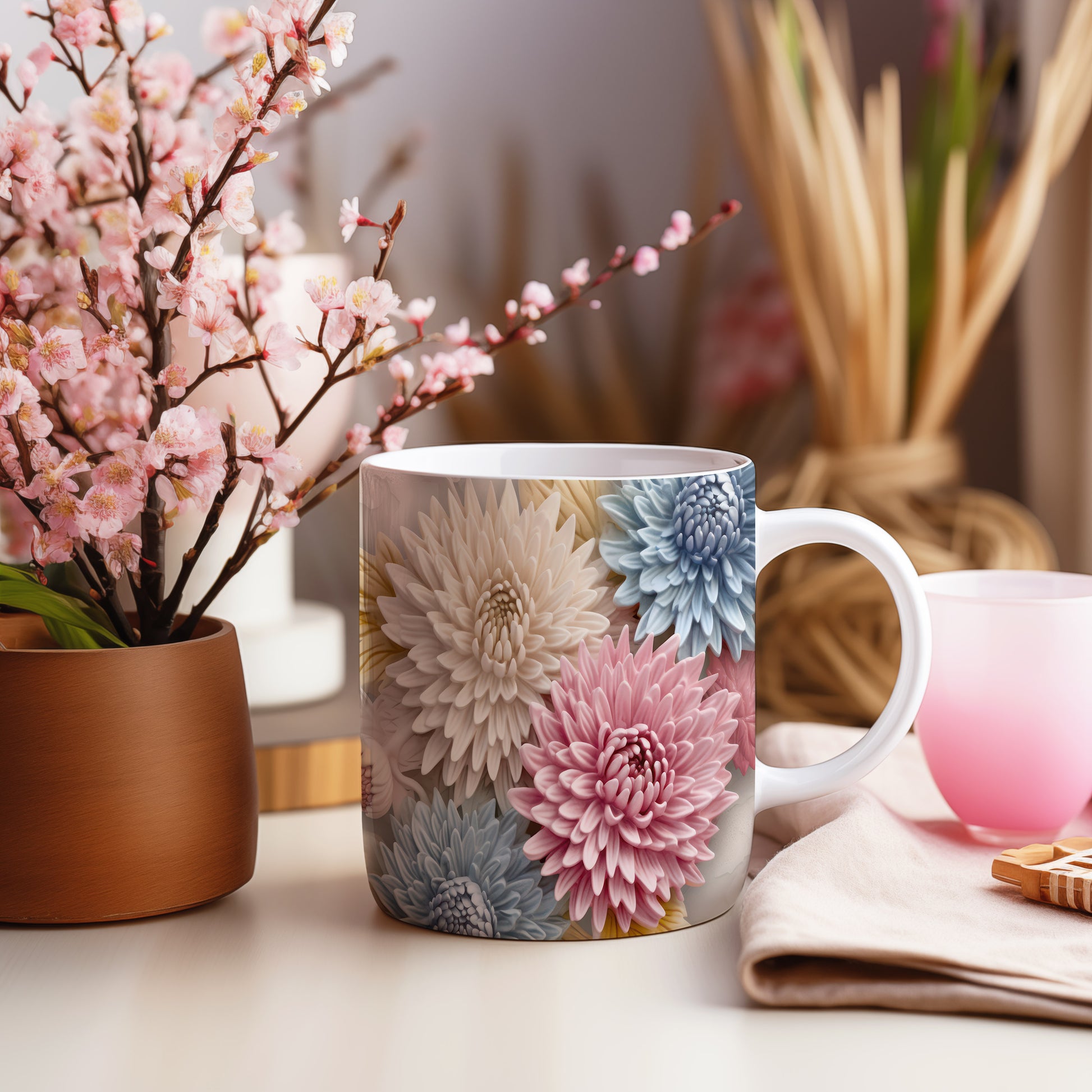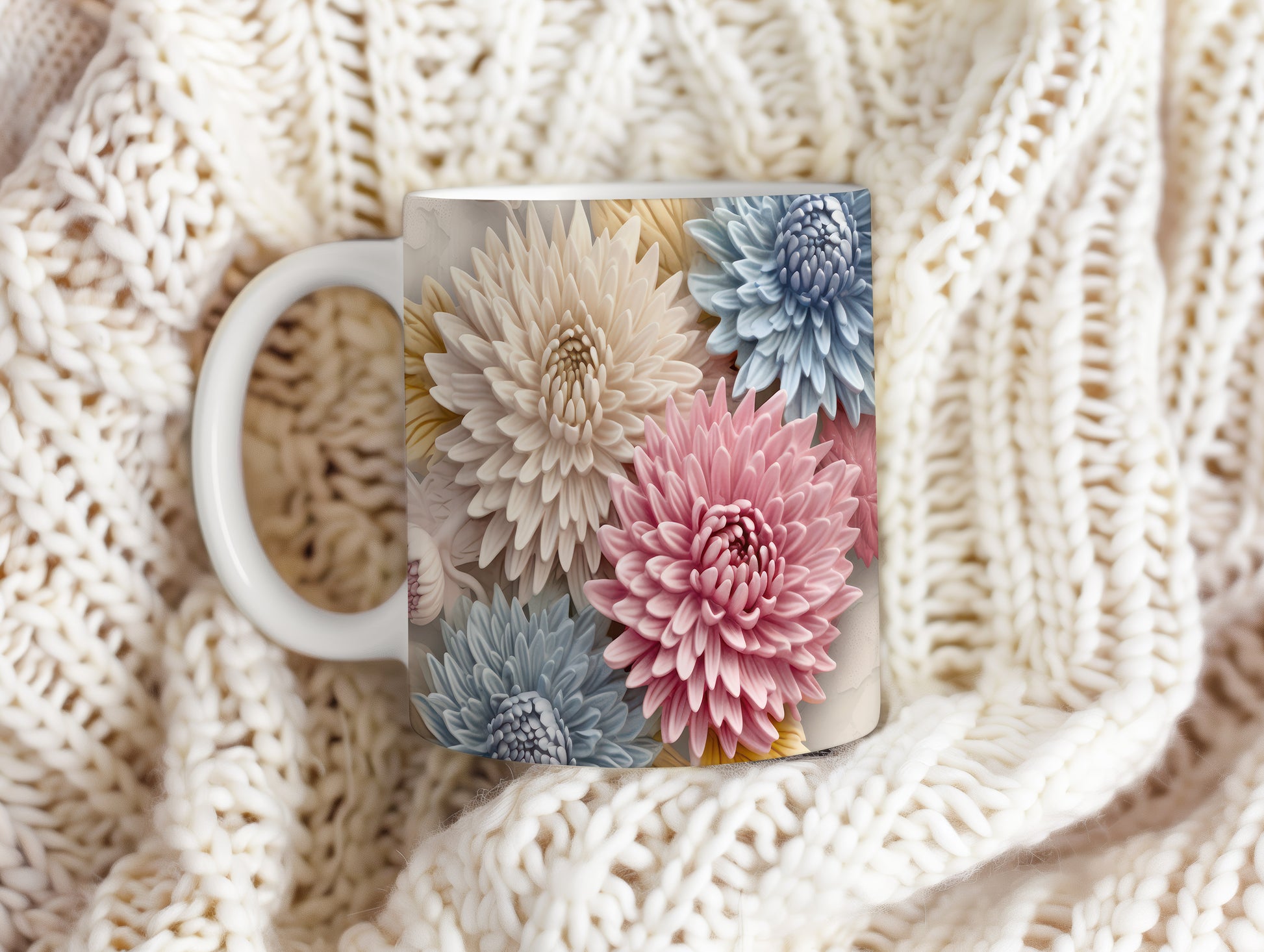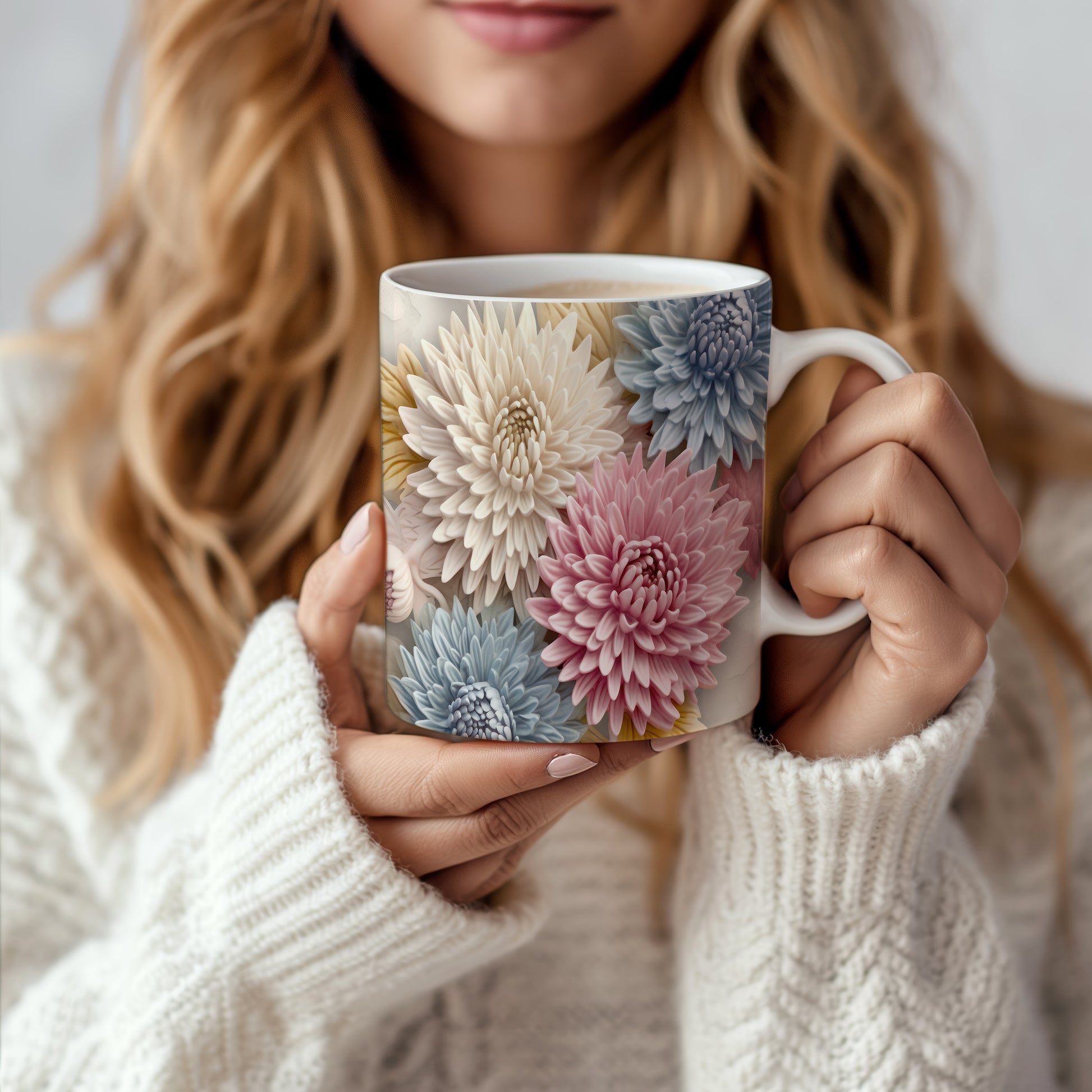 Hrnek s květinovým vzorem v pastelových tónech