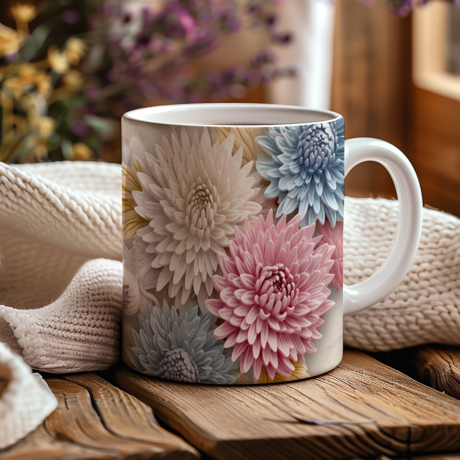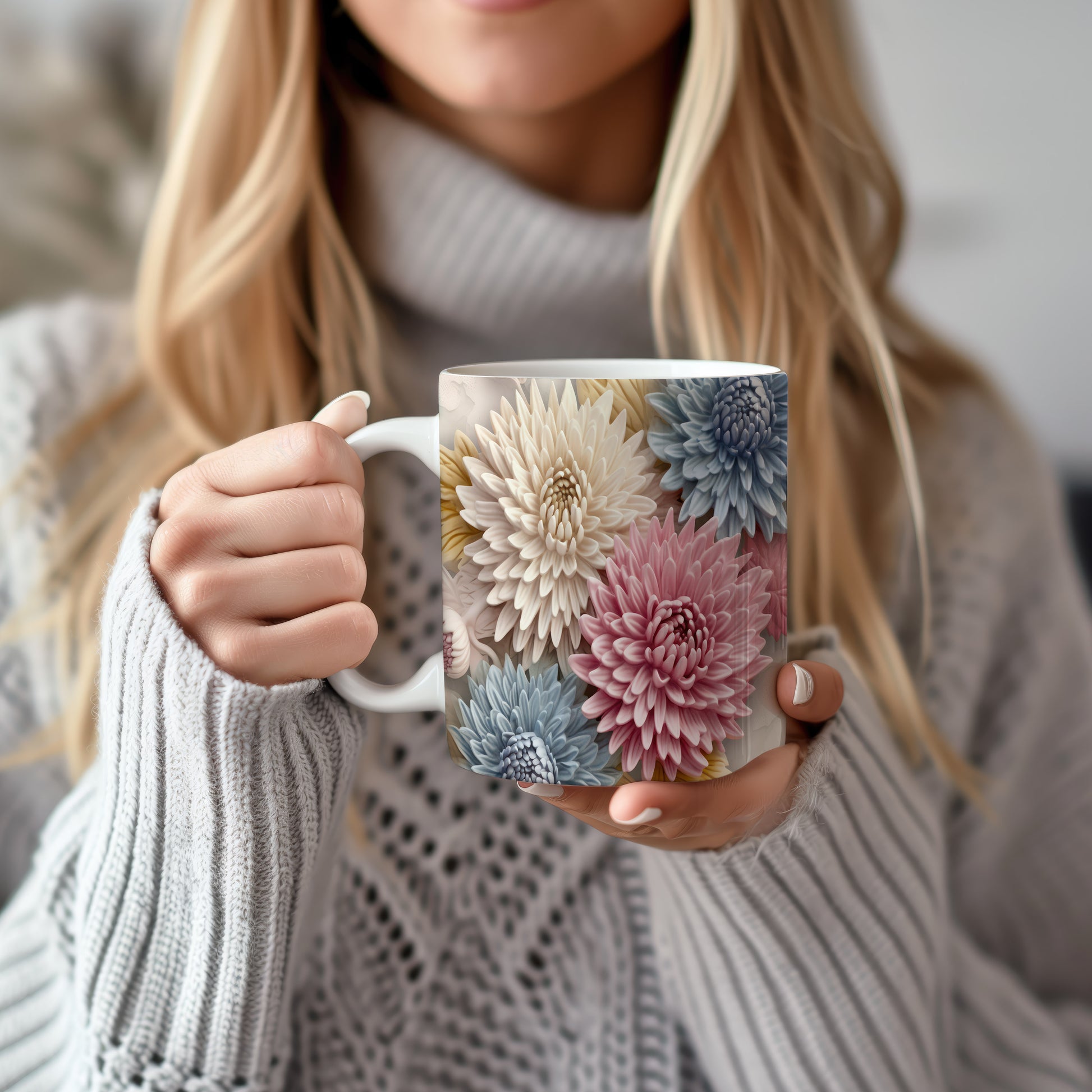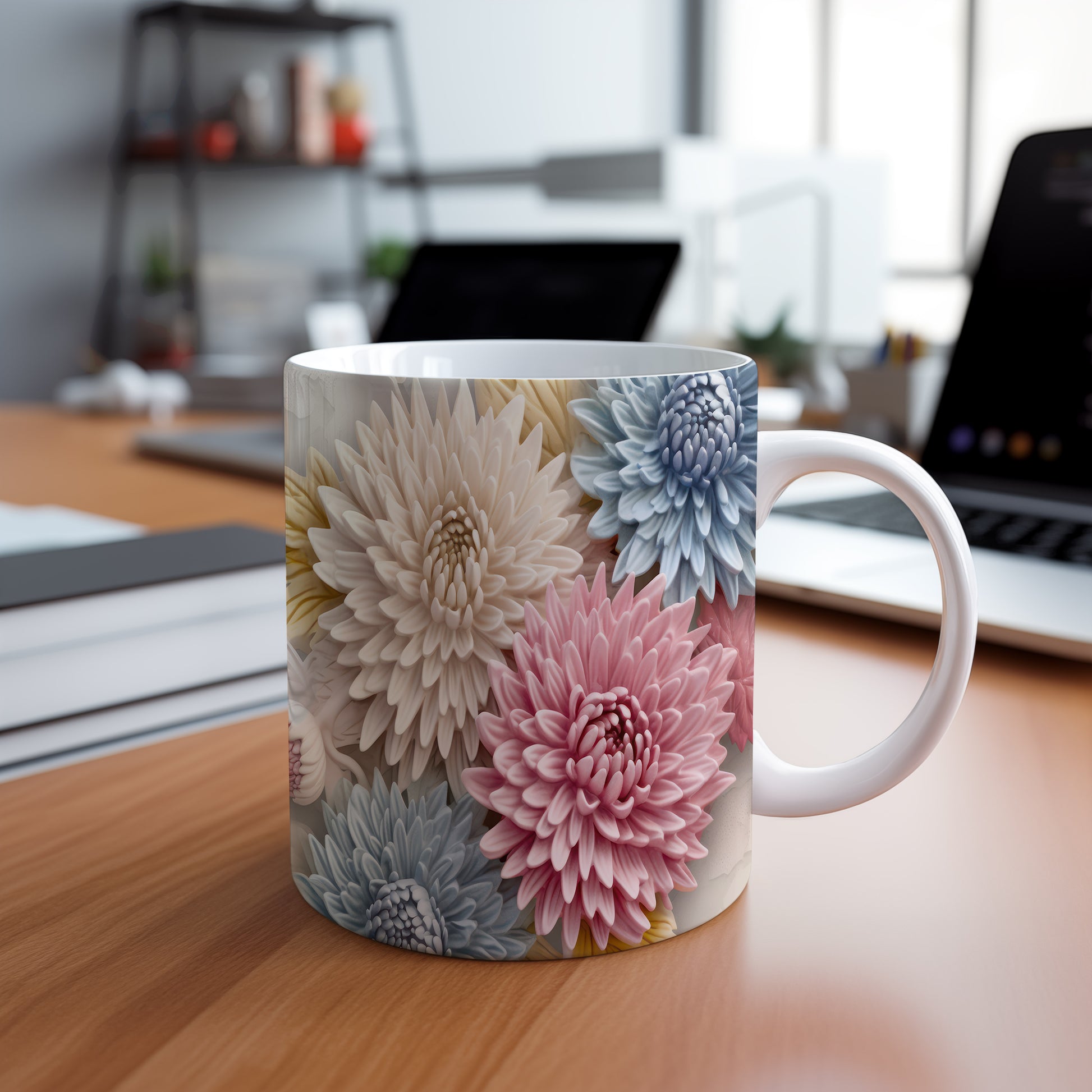 Hrnek s květinovým vzorem v pastelových tónech