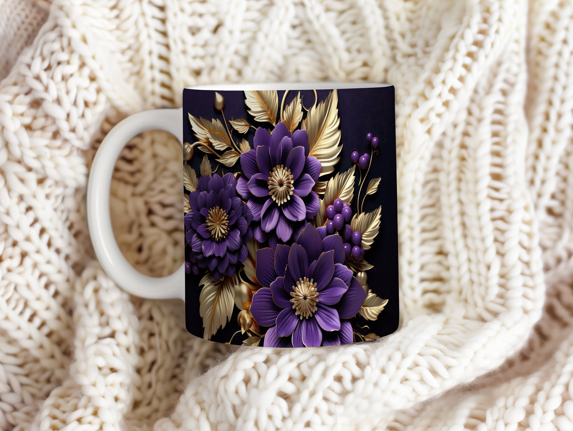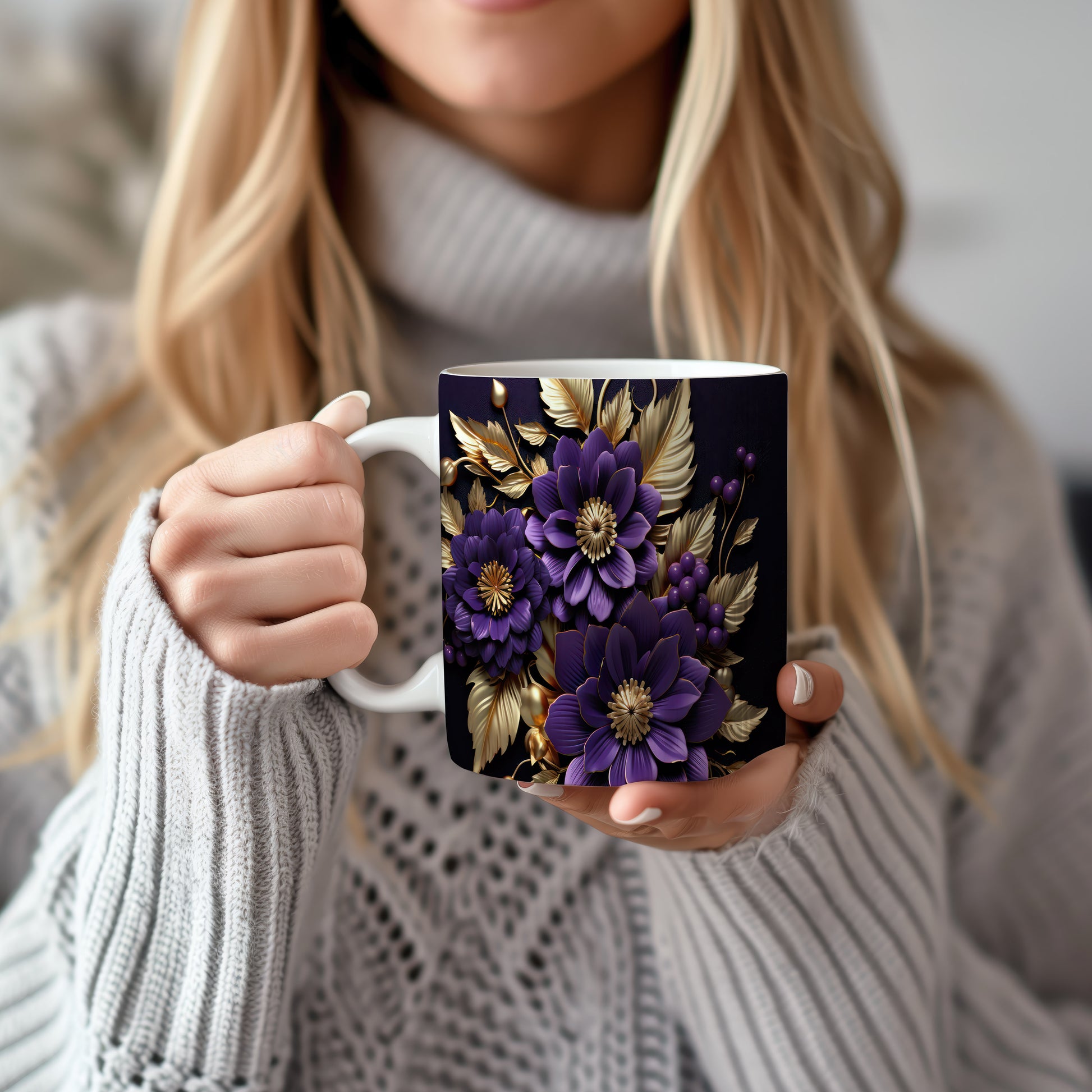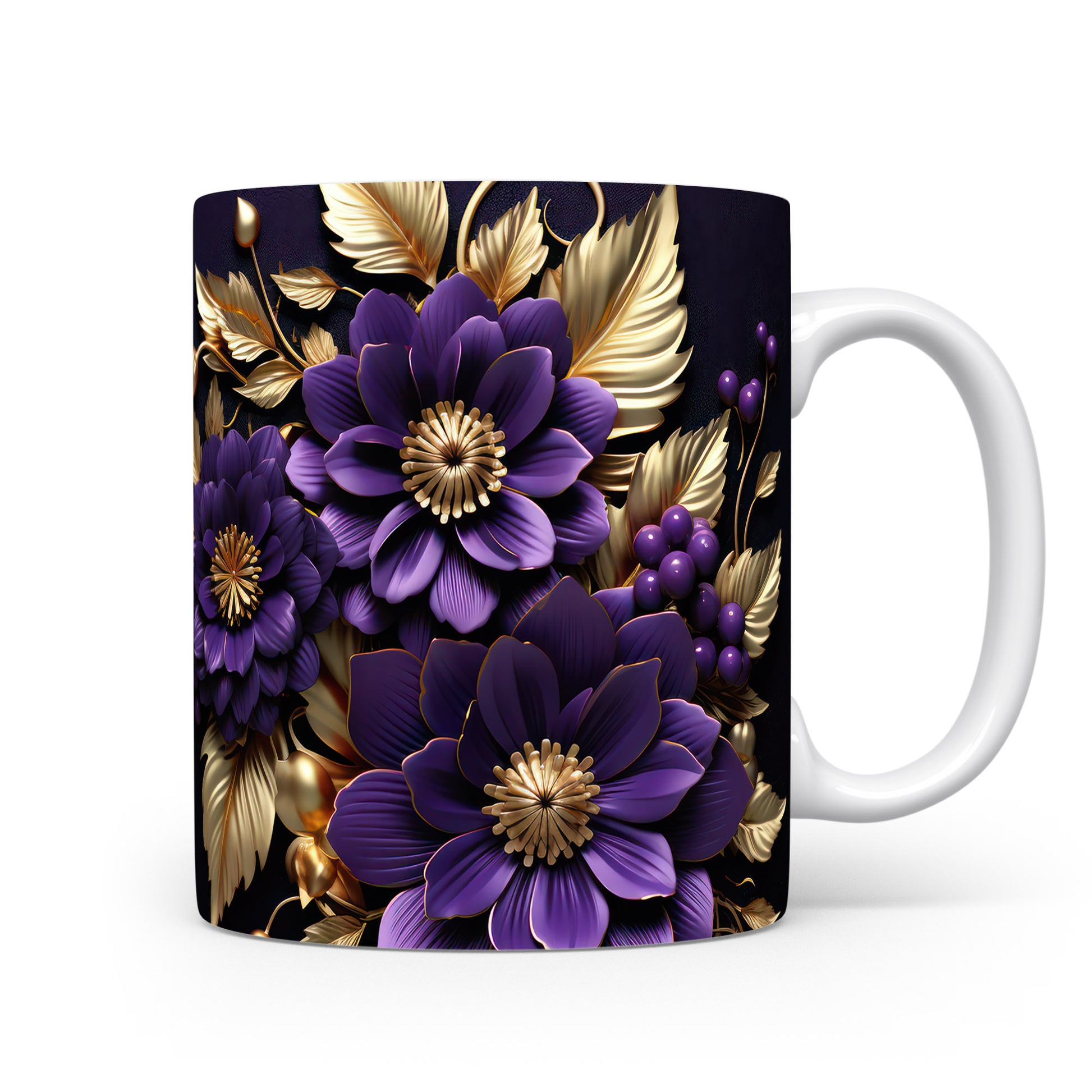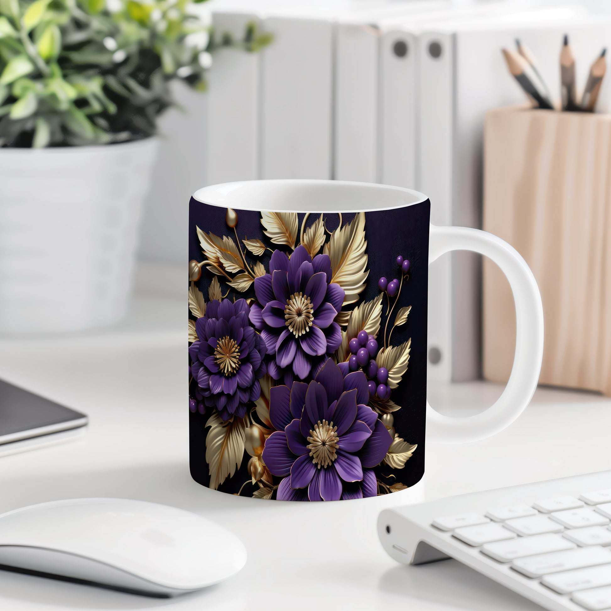 Tento elegantní hrnek s květinovým motivem v purpurových a zlatých tónech je skvělou volbou pro každodenní užívání. Je ideální jako dárek pro milovníky květin nebo pro ty, kteří chtějí ozvláštnit svůj stůl. Materiál: keramika. Objem: 330 ml. Vhodné do myčky i mikrovlnky. Používání tohoto hrnku přináší radost z pití oblíbeného nápoje.