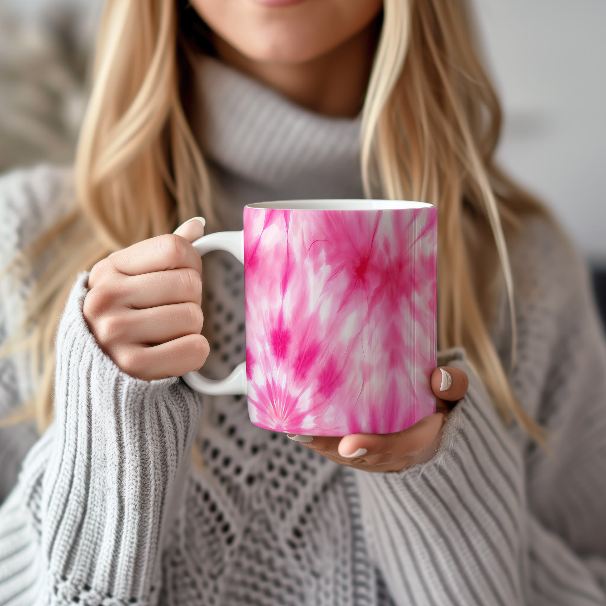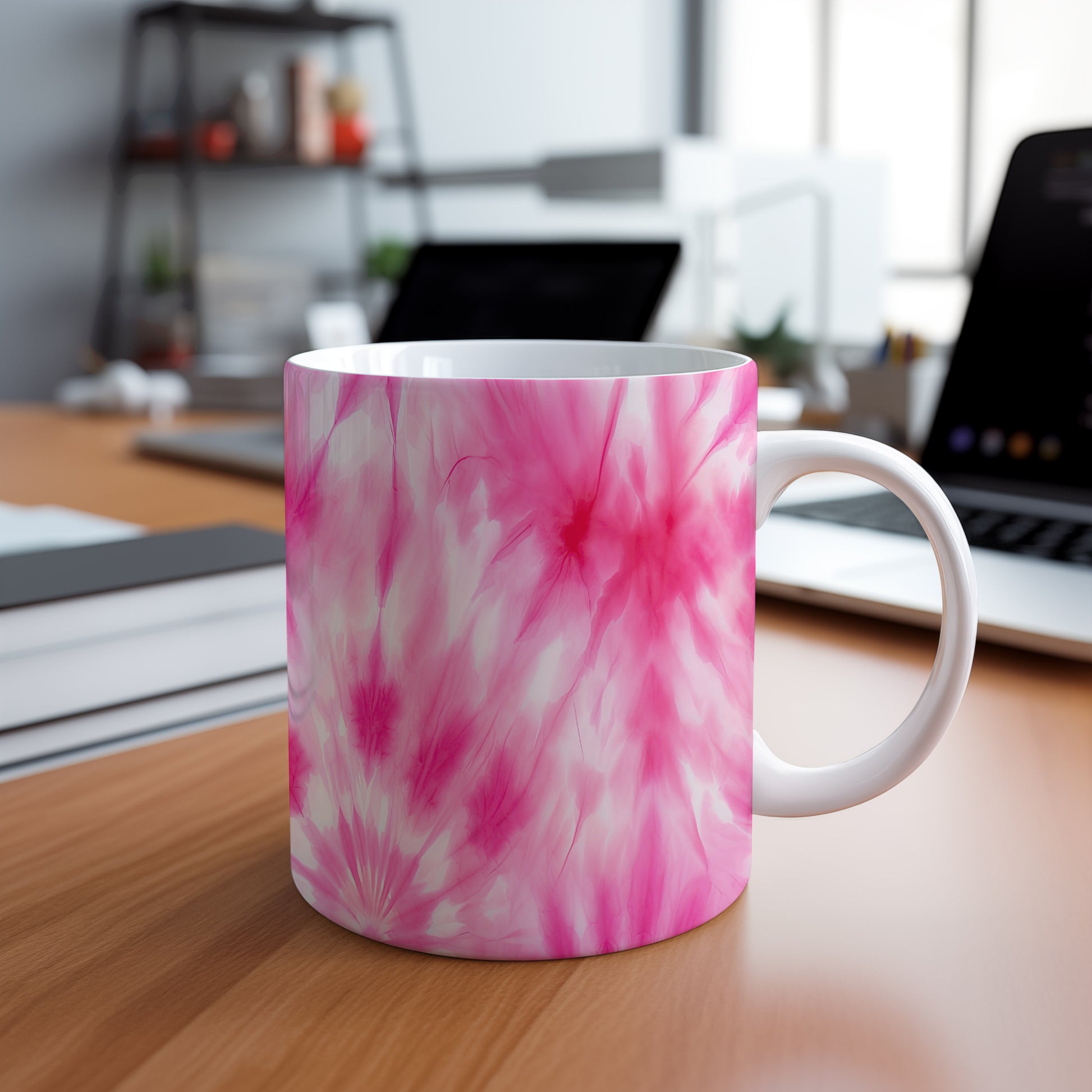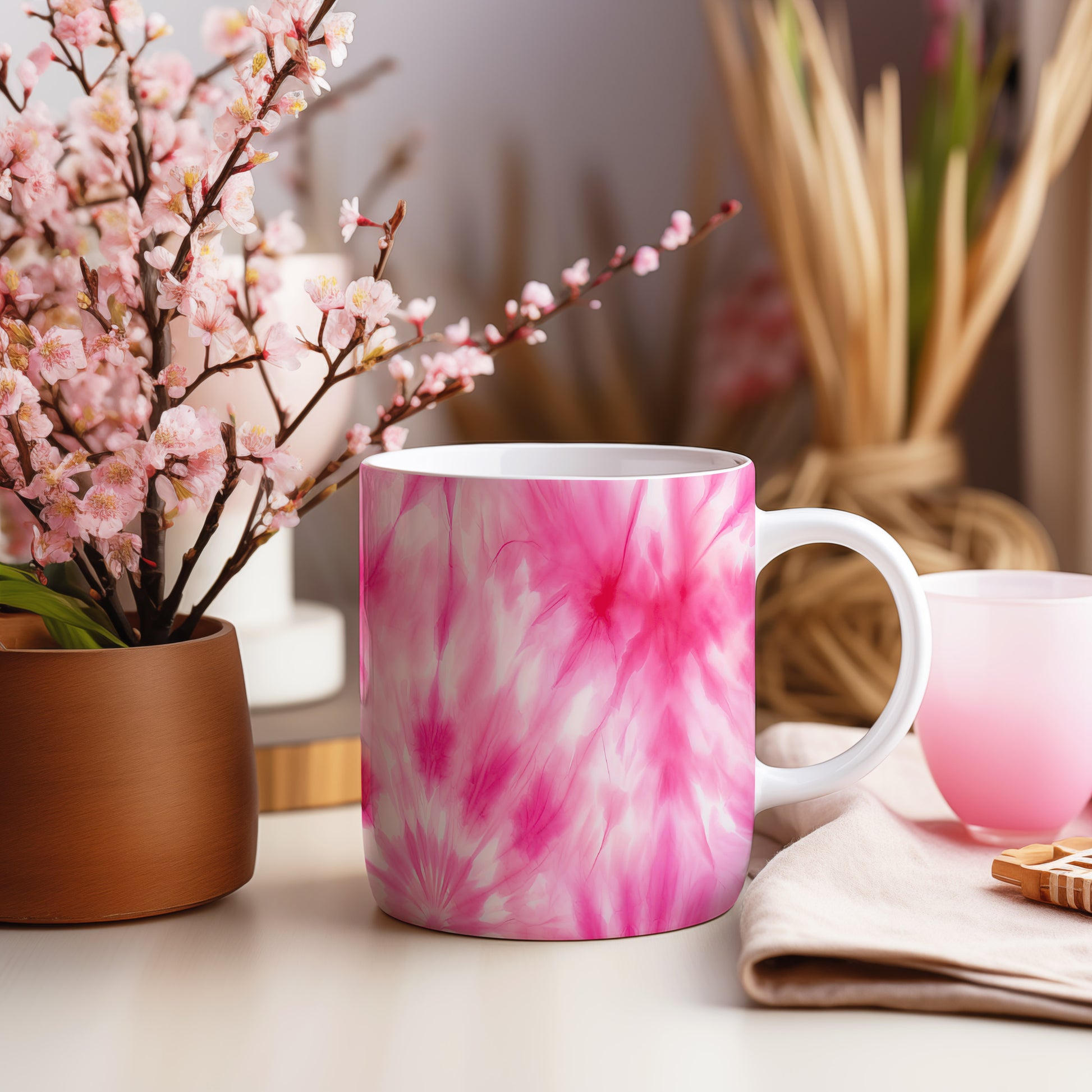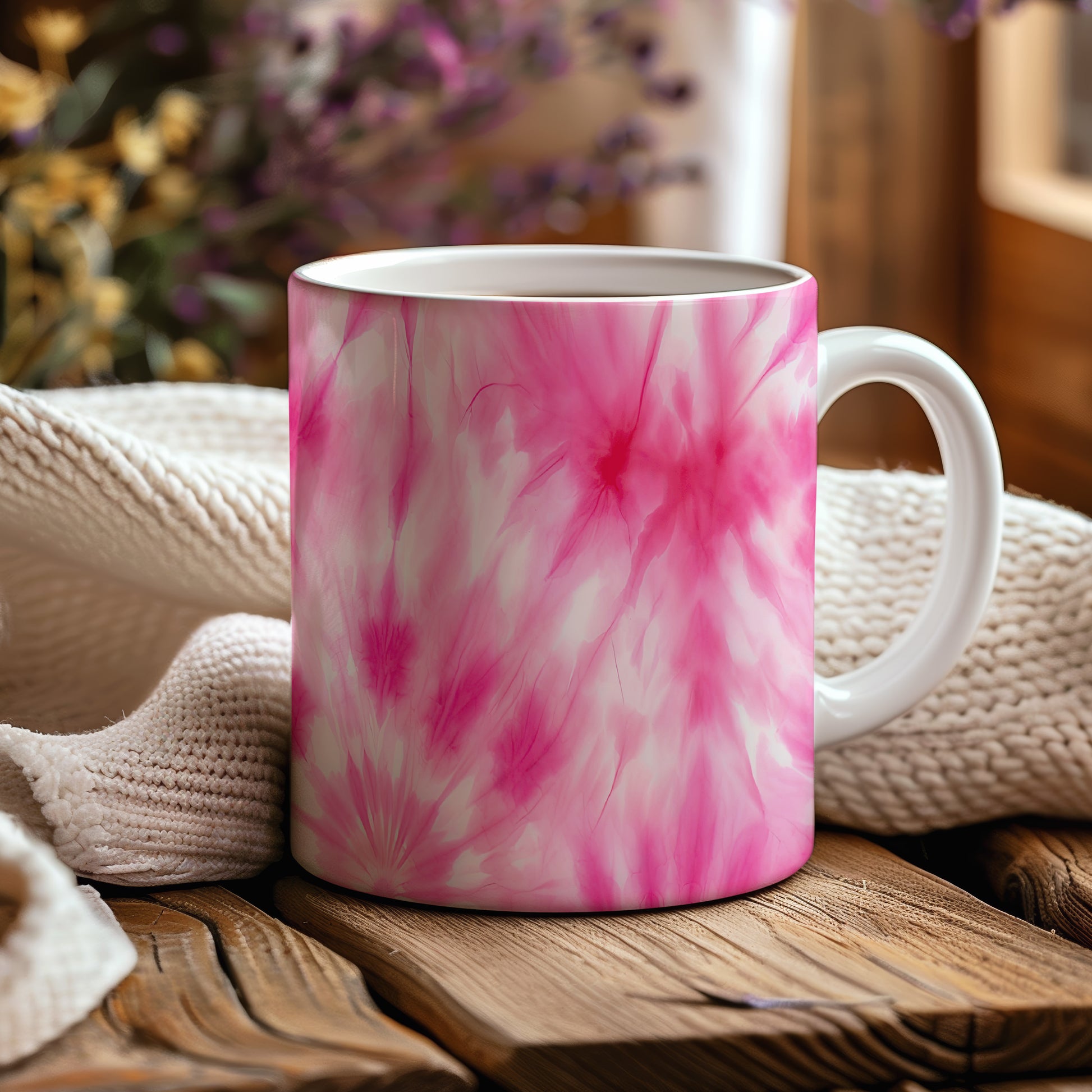 Hrnek s květinovým vzorem v růžových odstínech