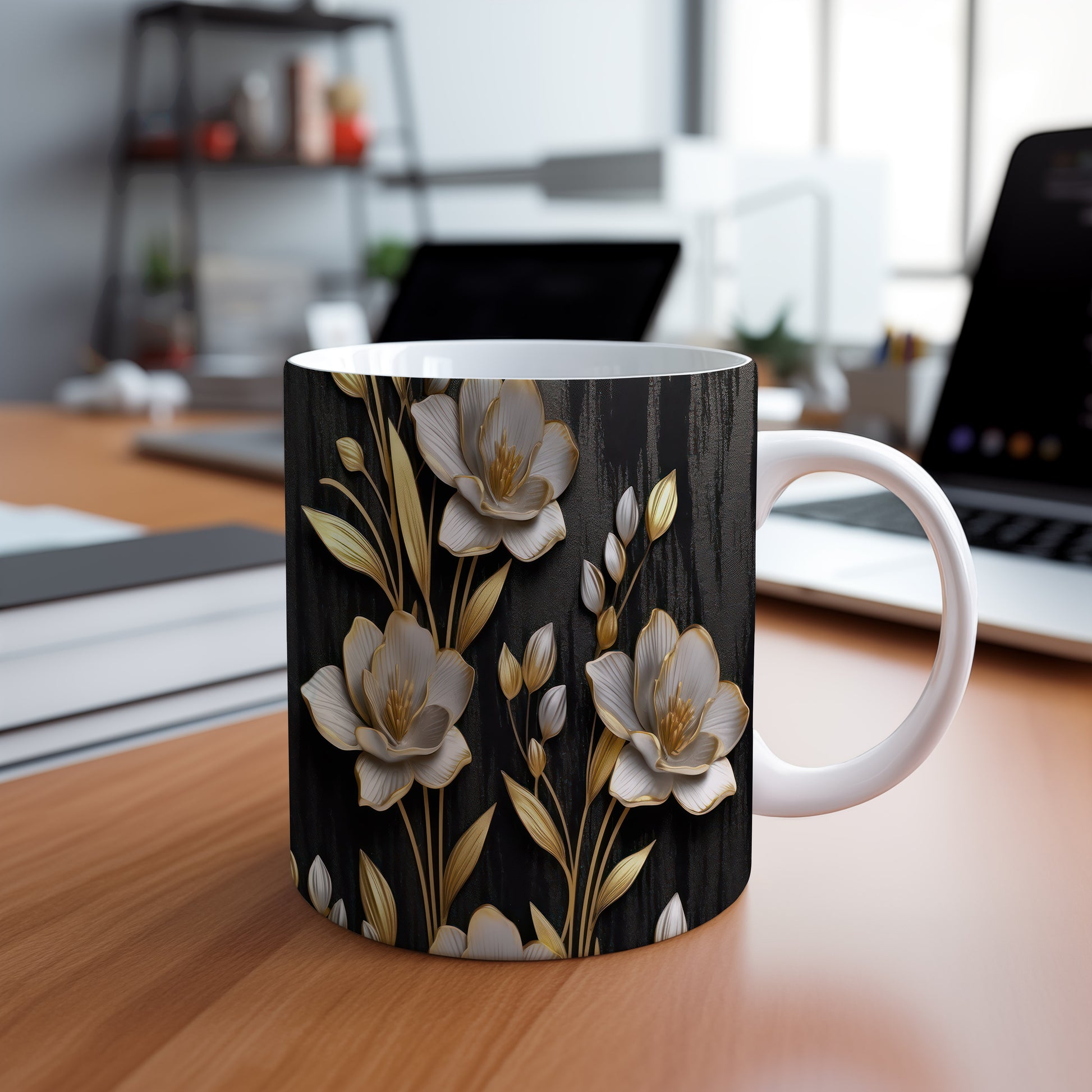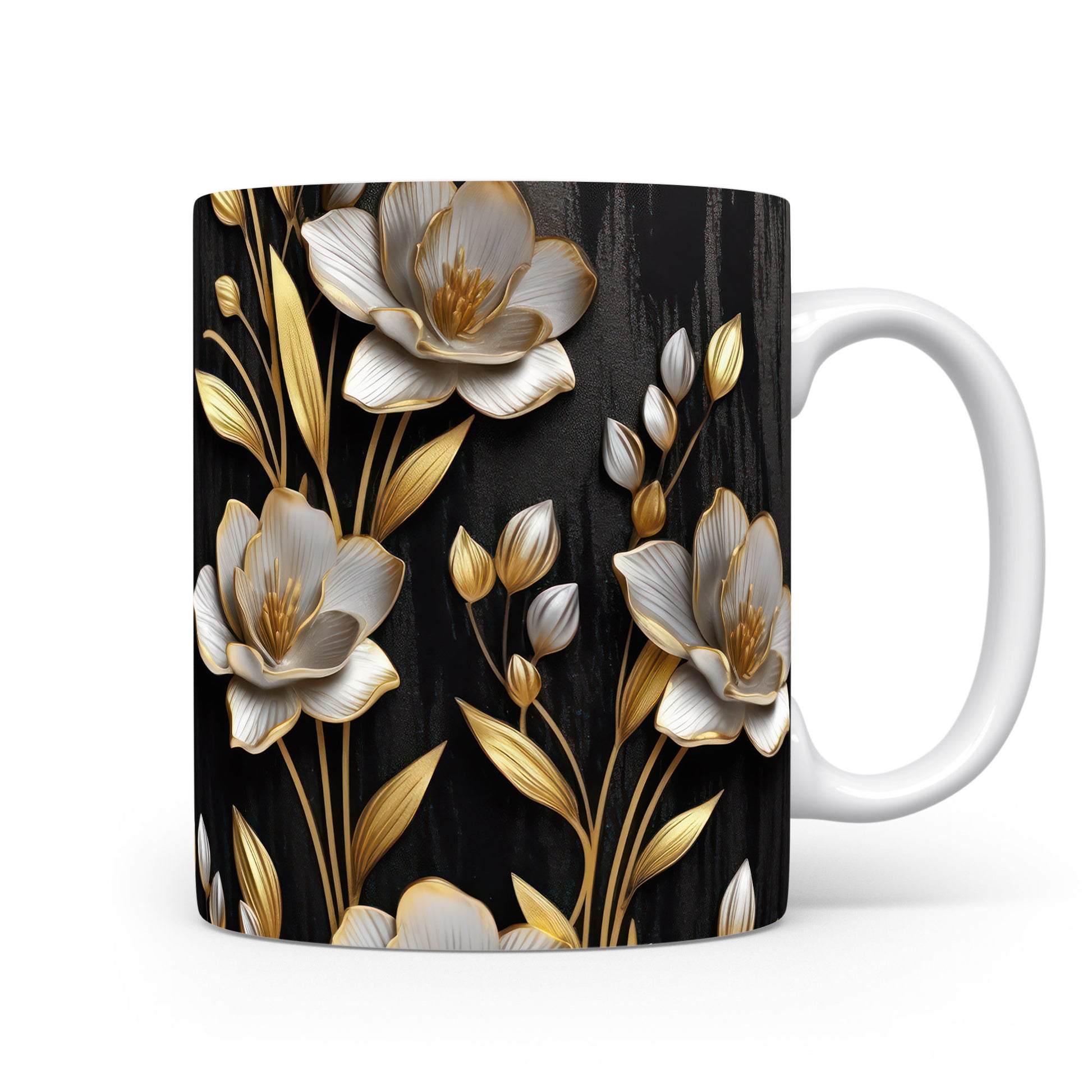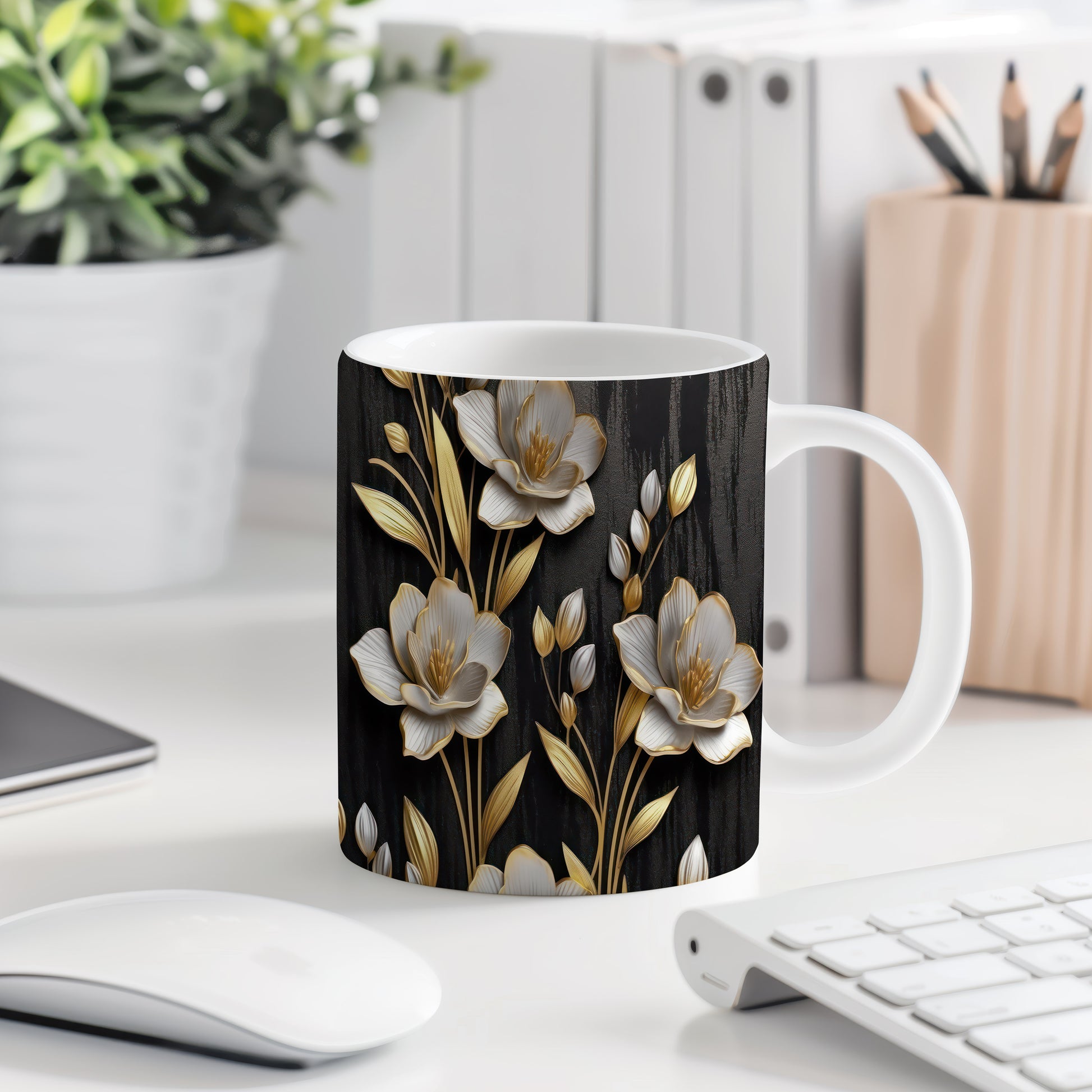 Elegantní hrnek s květinovým vzorem, který kombinuje bílé a zlaté květy na černém pozadí. Tento stylový kousek je ideální pro milovníky přírody a designu, skvěle se hodí jako dárek pro blízké. Materiál: keramika. Objem: 330 ml. Vhodné do myčky i mikrovlnky. Používání tohoto hrnku přináší radost z každého doušku.