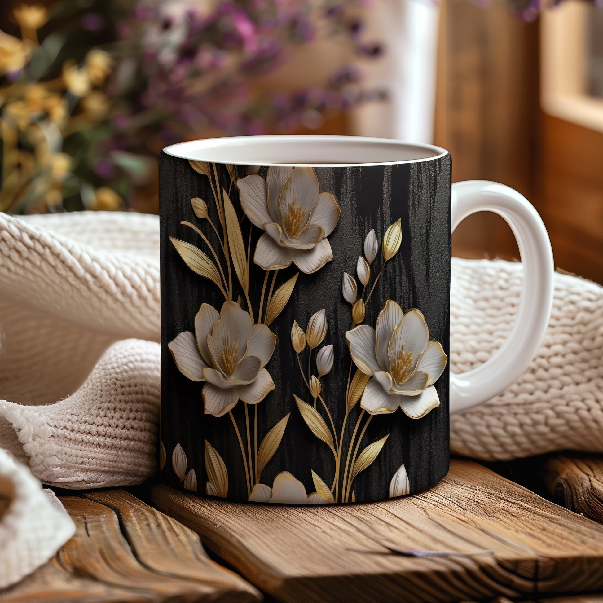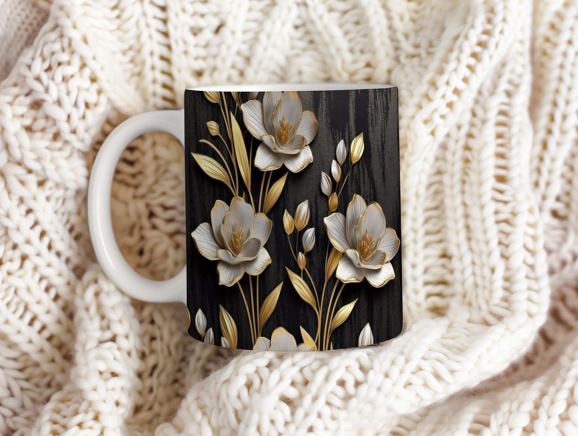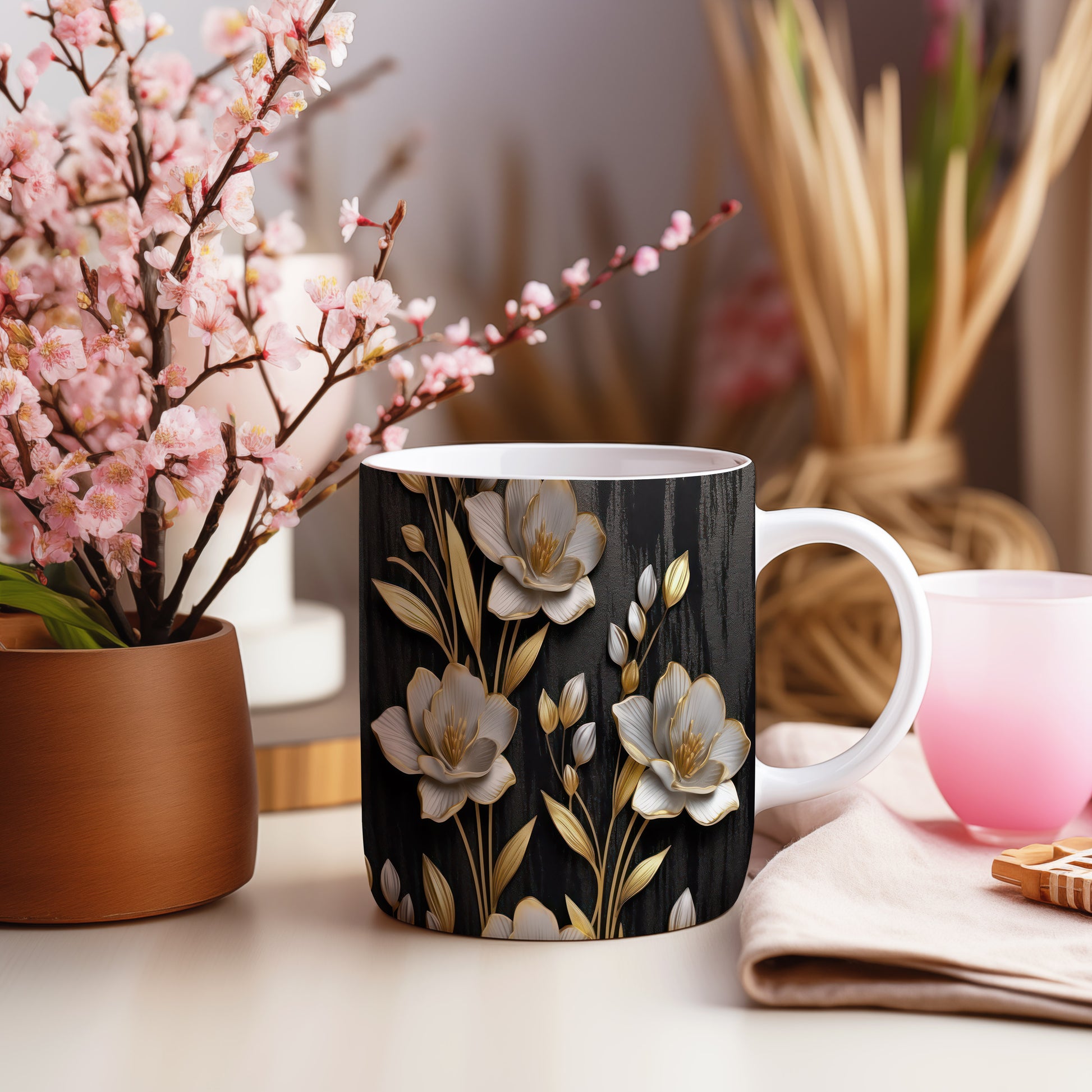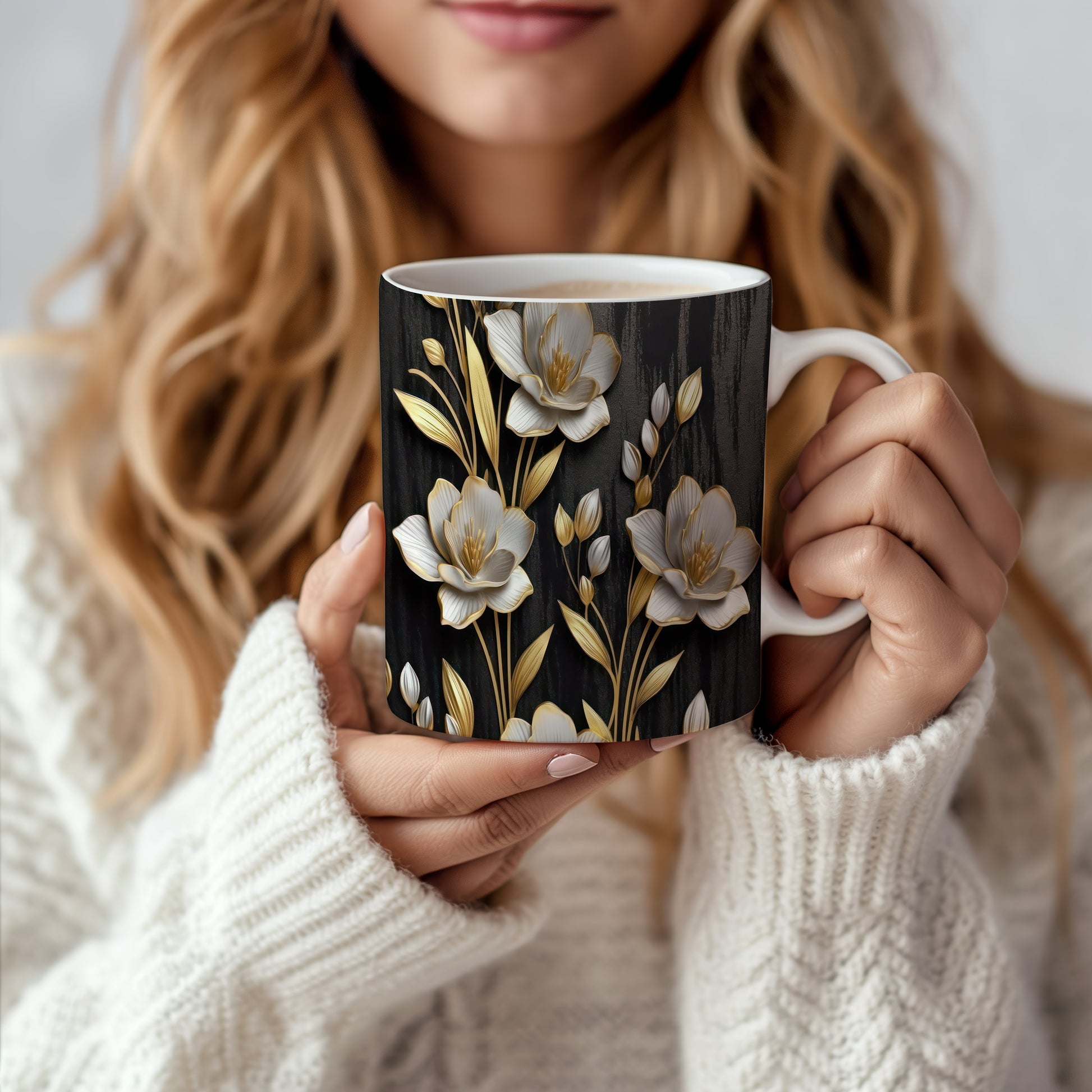 Elegantní hrnek s květinovým vzorem, který kombinuje bílé a zlaté květy na černém pozadí. Tento stylový kousek je ideální pro milovníky přírody a designu, skvěle se hodí jako dárek pro blízké. Materiál: keramika. Objem: 330 ml. Vhodné do myčky i mikrovlnky. Používání tohoto hrnku přináší radost z každého doušku.