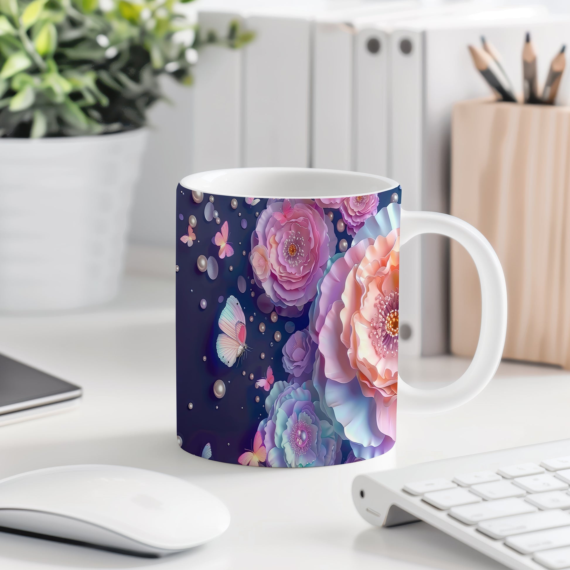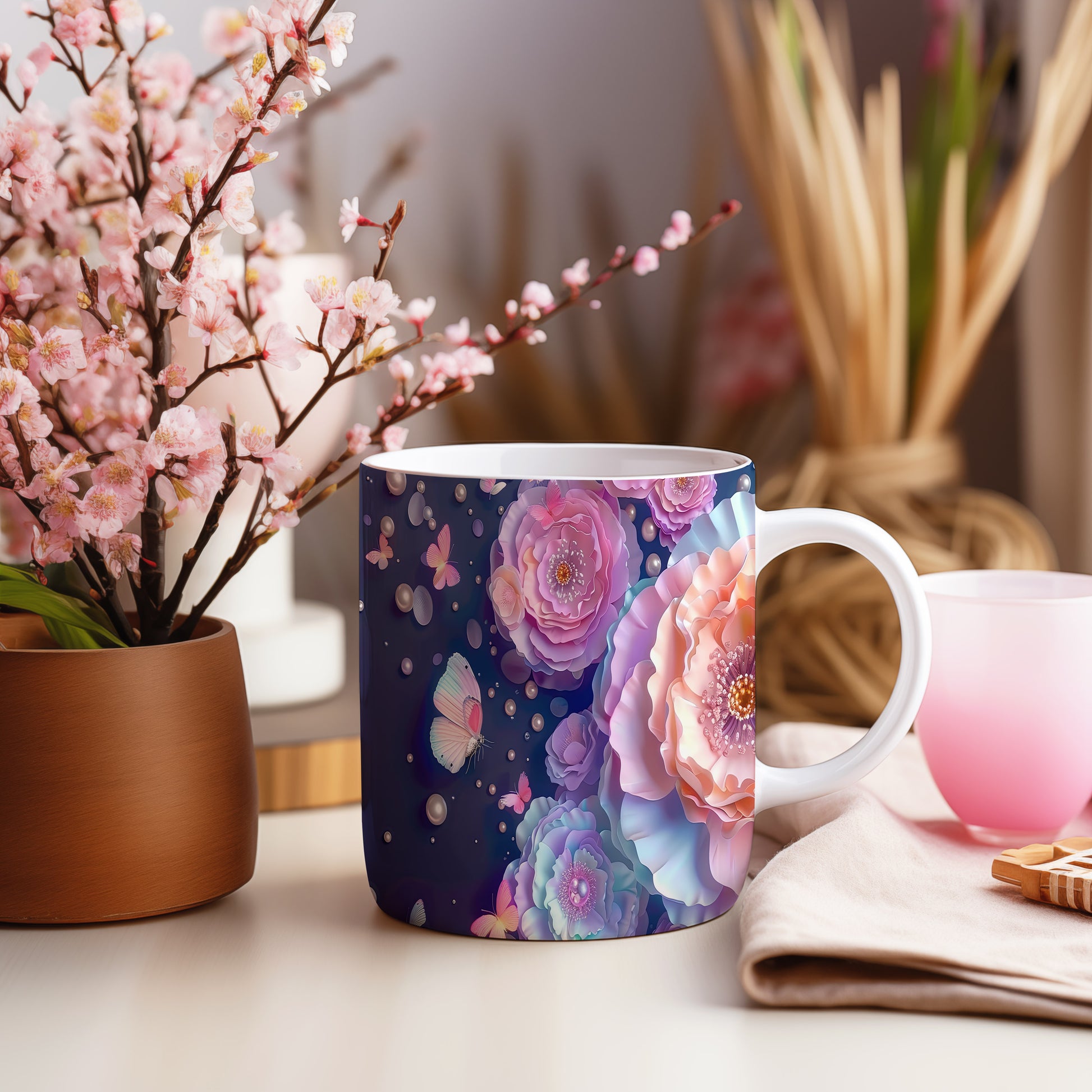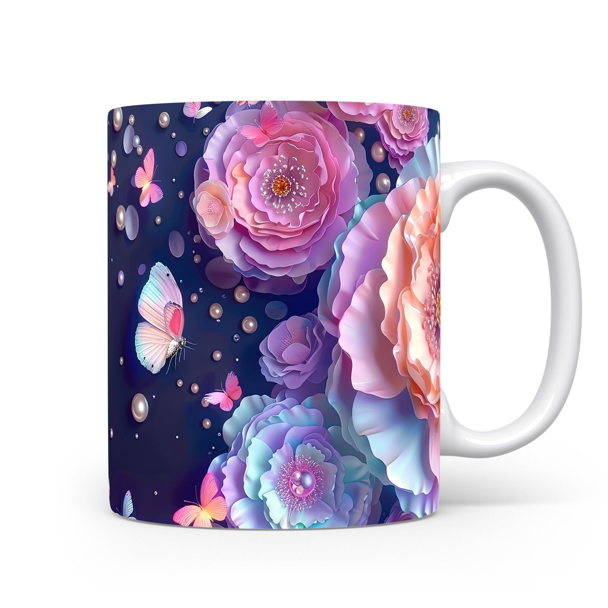 Tento keramický hrnek je zdobený krásnými květinovými motivy a barevnými motýly. Je ideální pro všechny milovníky přírody a květin, skvělý tip na dárek pro vaše blízké. Materiál: keramika. Objem: 330 ml. Vhodné do myčky i mikrovlnky. Používání tohoto hrnku přináší radost z každého doušku.