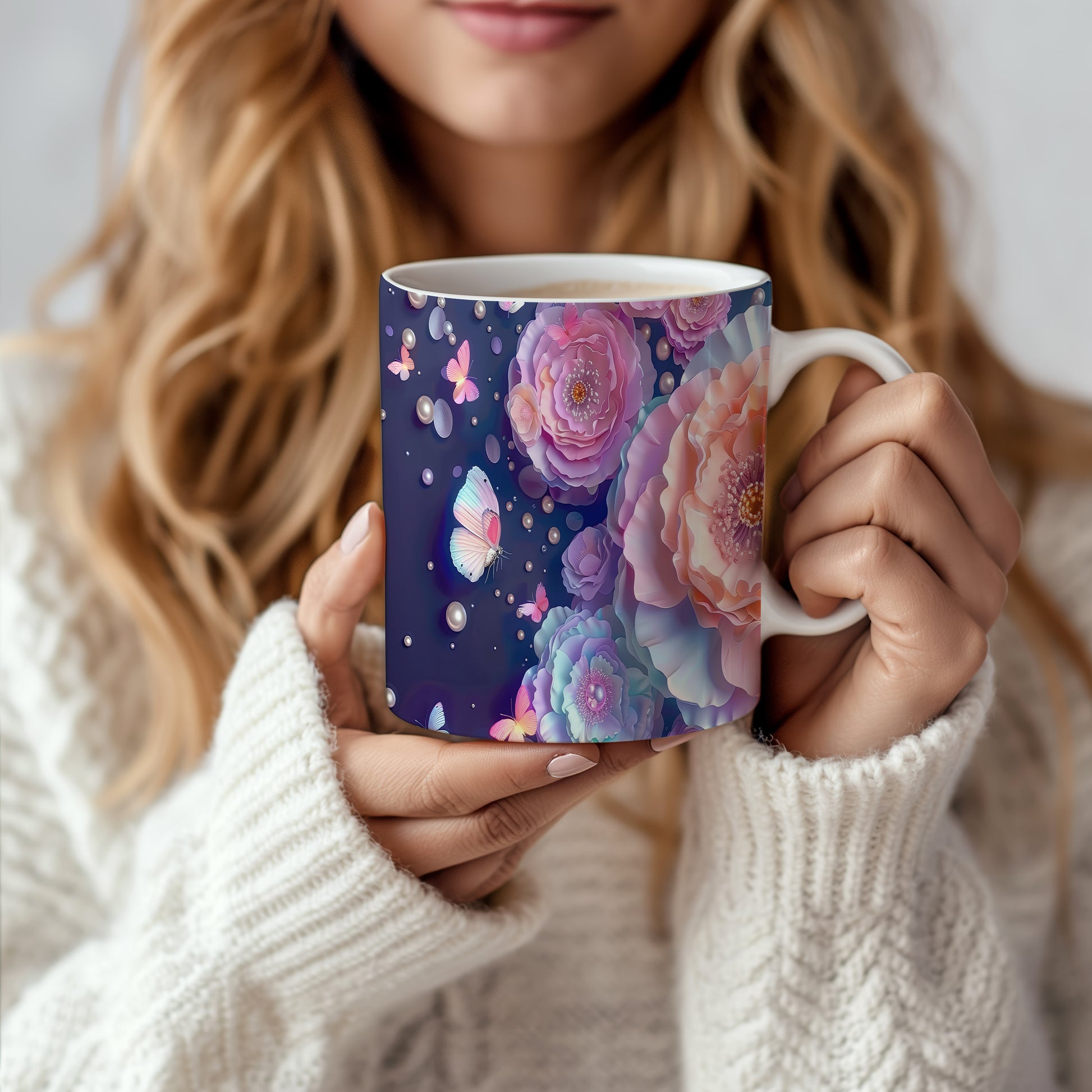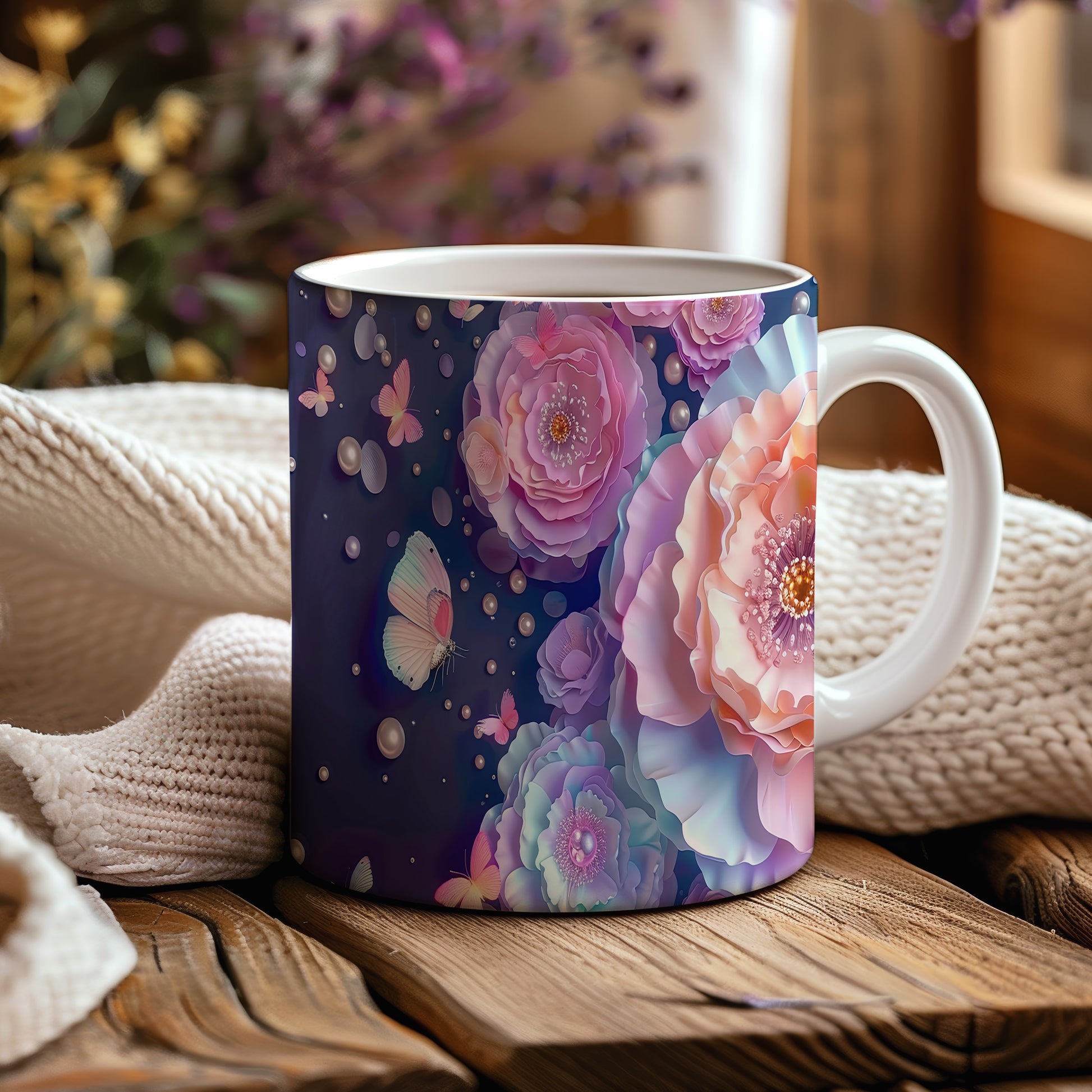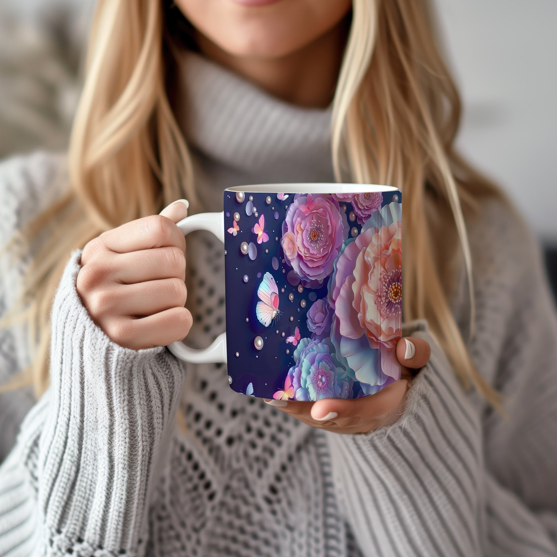 Tento keramický hrnek je zdobený krásnými květinovými motivy a barevnými motýly. Je ideální pro všechny milovníky přírody a květin, skvělý tip na dárek pro vaše blízké. Materiál: keramika. Objem: 330 ml. Vhodné do myčky i mikrovlnky. Používání tohoto hrnku přináší radost z každého doušku.