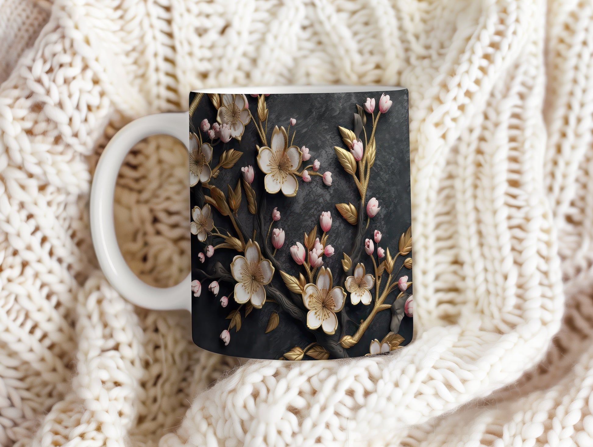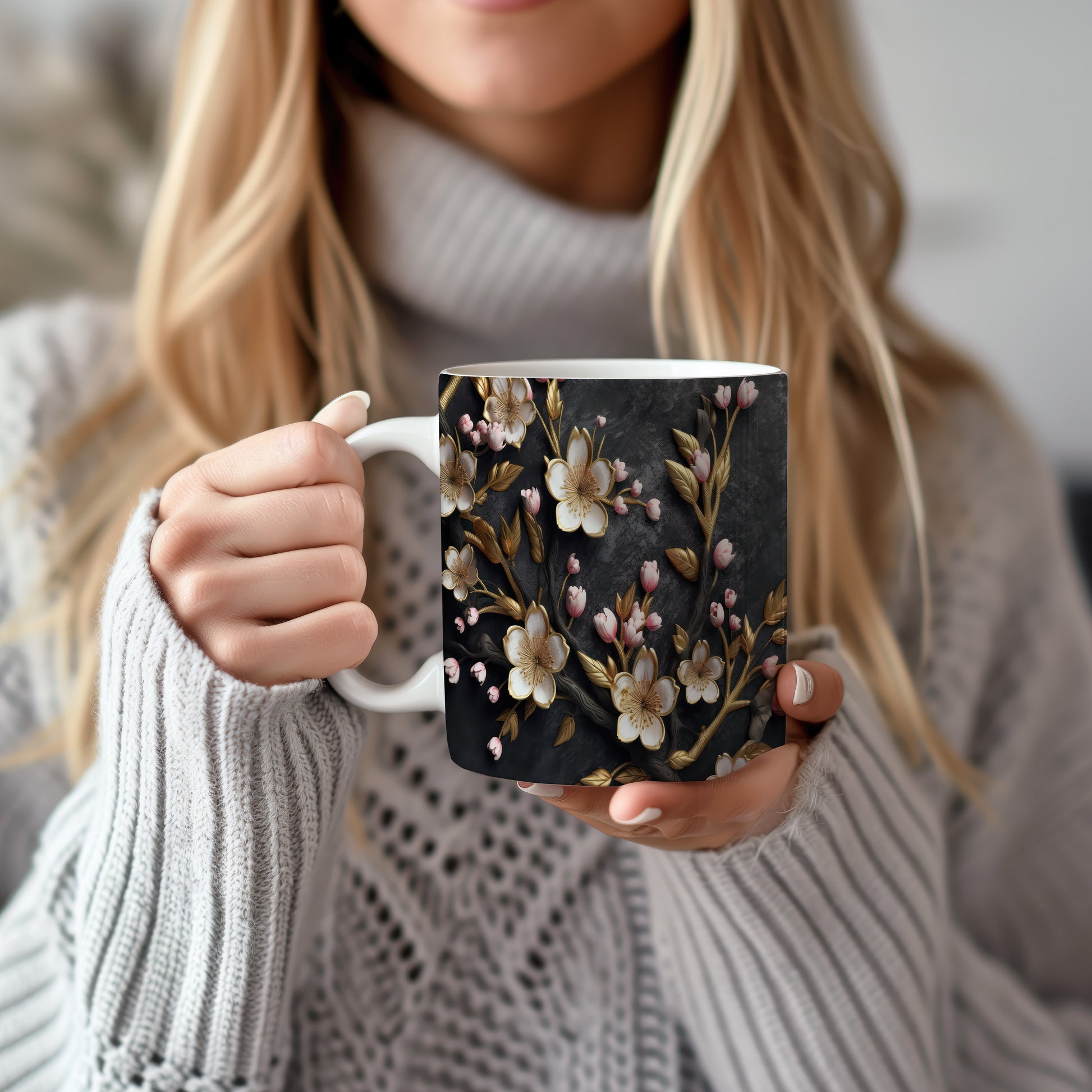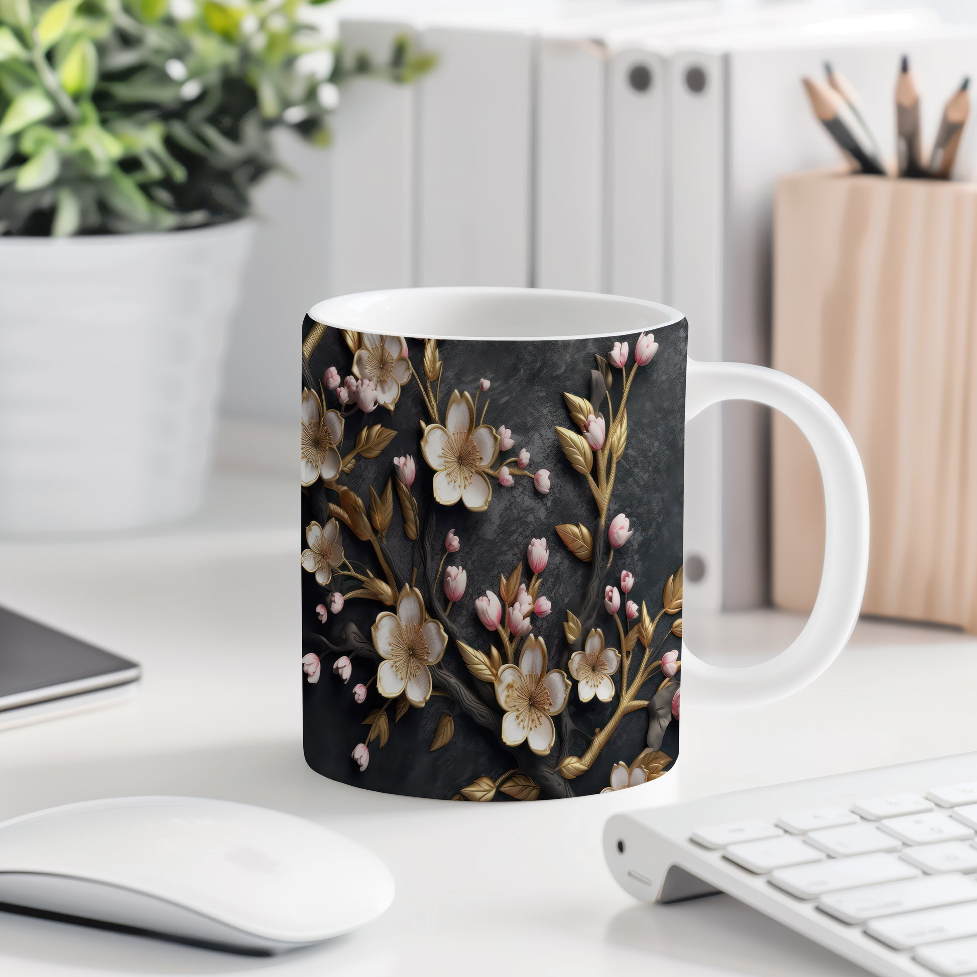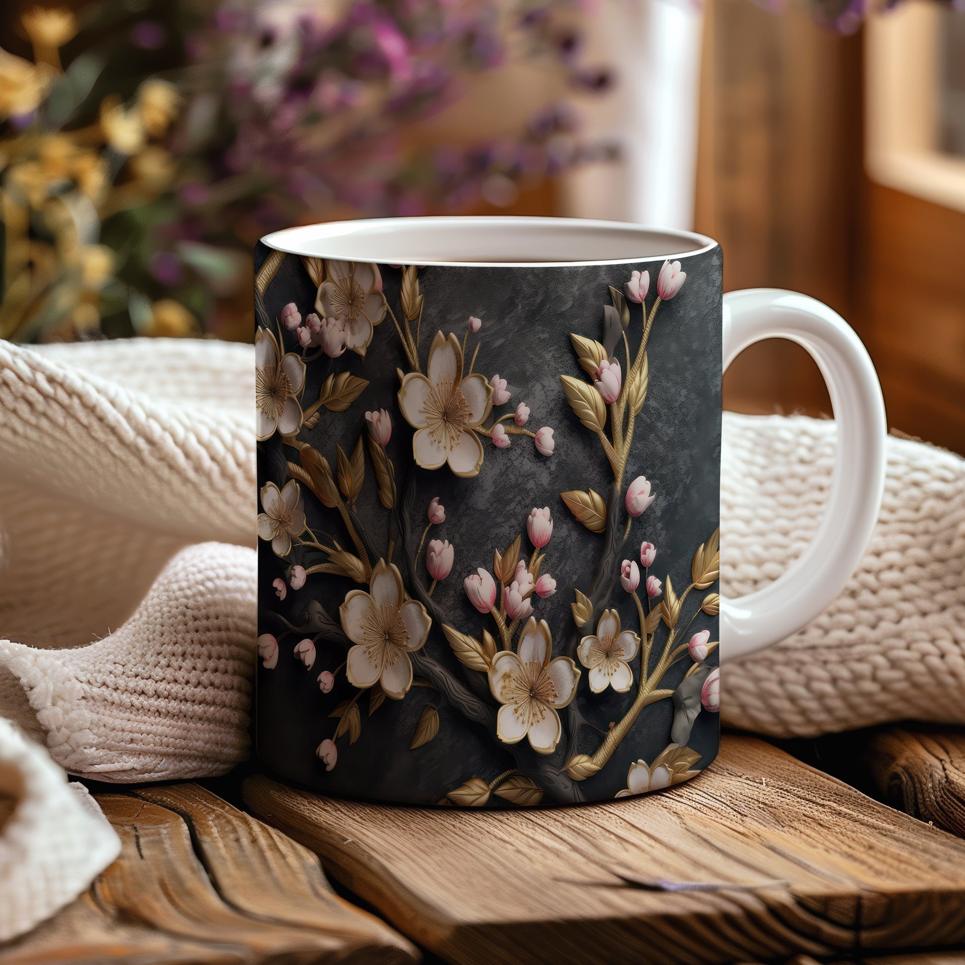 Tento keramický hrnek s motivem kvetoucích květin a zlatých listů přináší do vašeho domova nádech elegance a přírody. Je ideální pro každodenní používání, skvělý jako dárek pro milovníky květin a přírody. Materiál: keramika. Objem: 330 ml. Vhodné do myčky i mikrovlnky. Díky svému designu se stane oblíbeným společníkem při každém doušku vašeho oblíbeného nápoje.