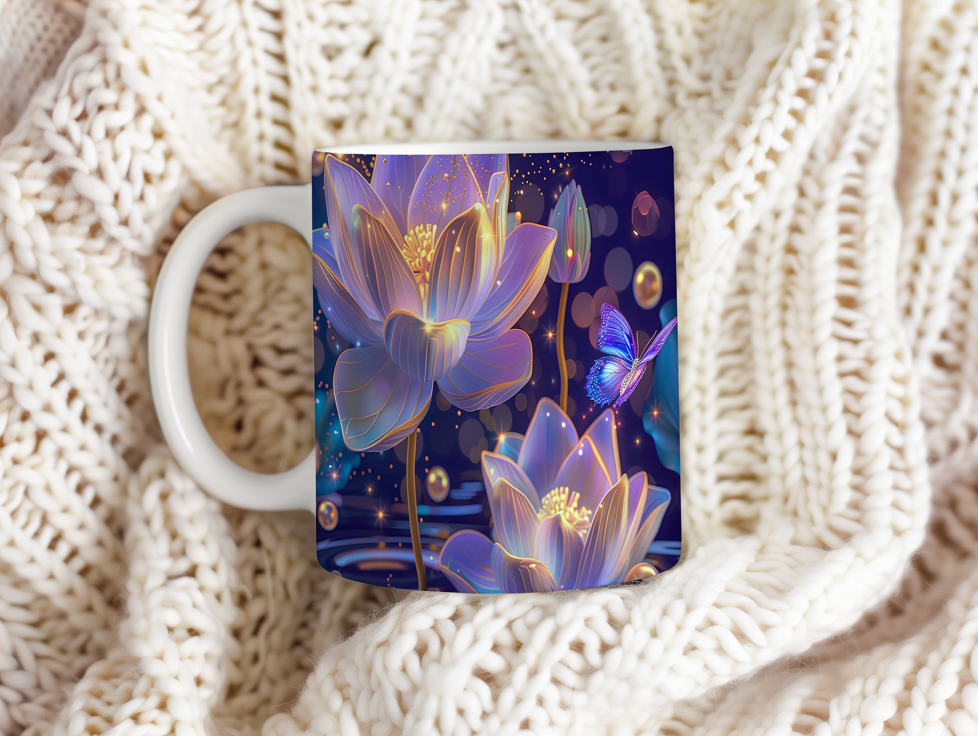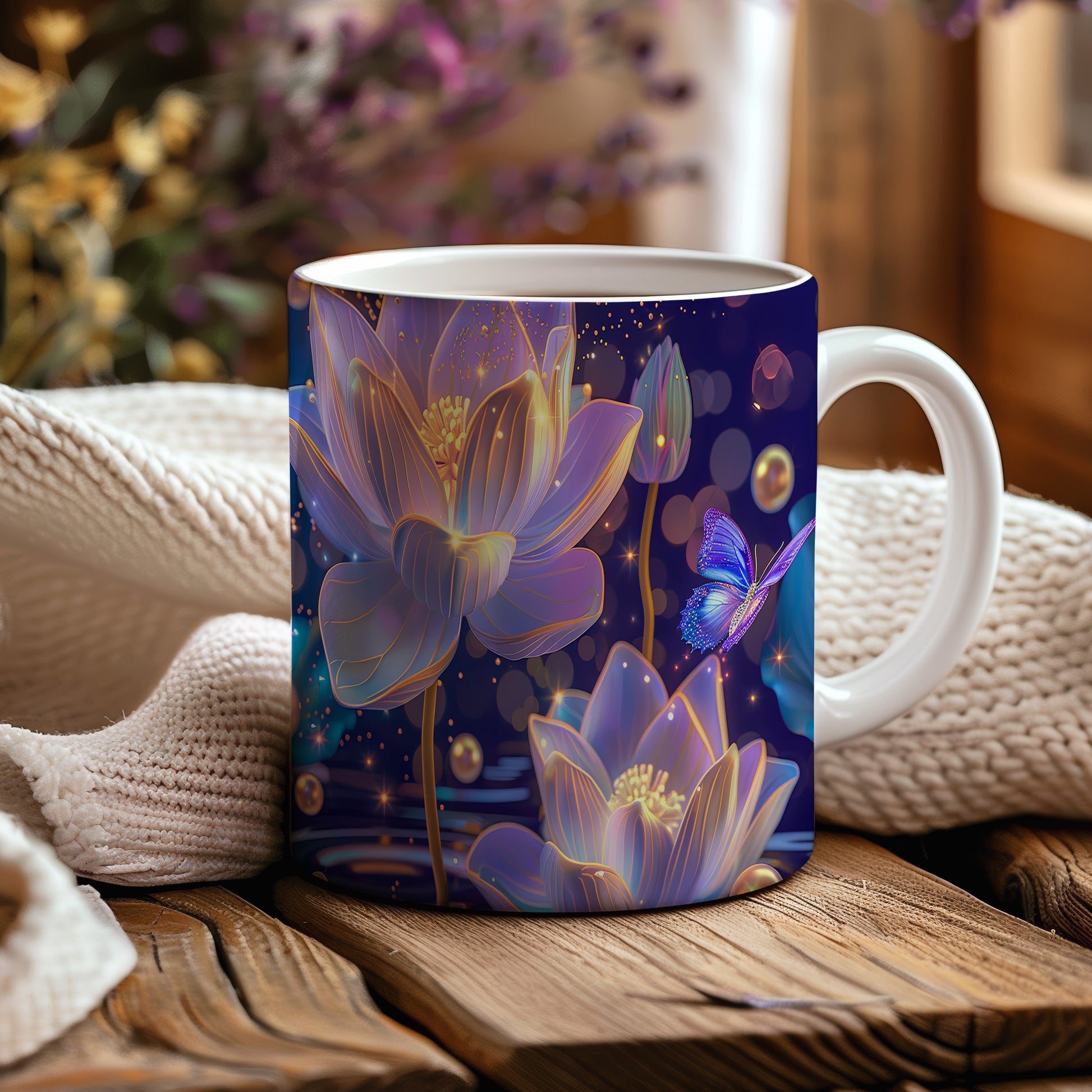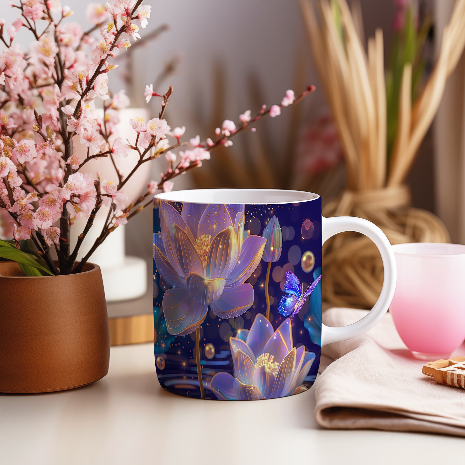 Tento hrnek zobrazuje krásné květy leknínu a motýla, což vytváří jemný a přírodní vzhled. Je ideální pro milovníky přírody a skvělým dárkem pro každého, kdo ocení krásu květin. Materiál: keramika. Objem: 330 ml. Vhodné do myčky i mikrovlnky. Používání tohoto hrnku přináší radost z každého doušku vaší oblíbené kávy nebo čaje.