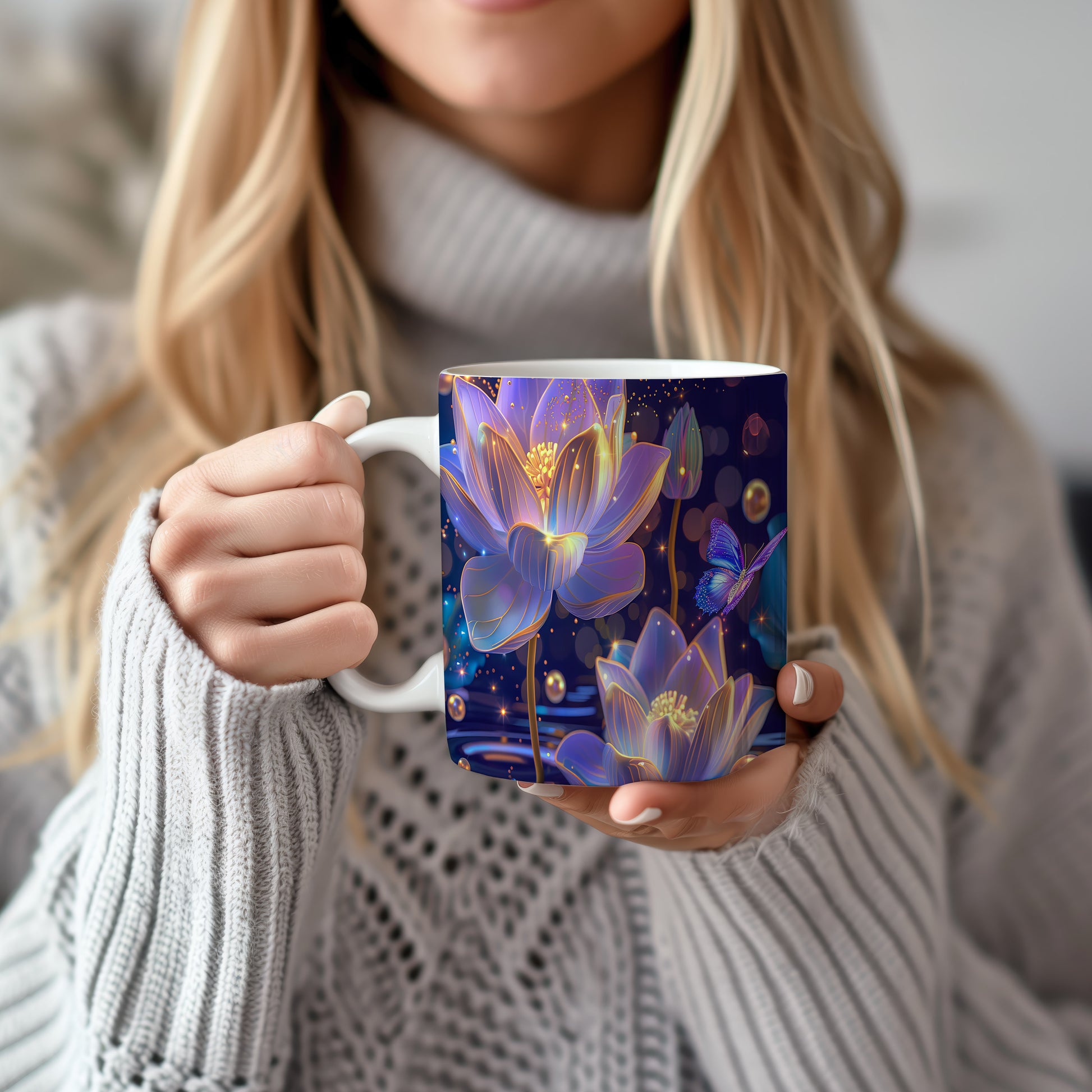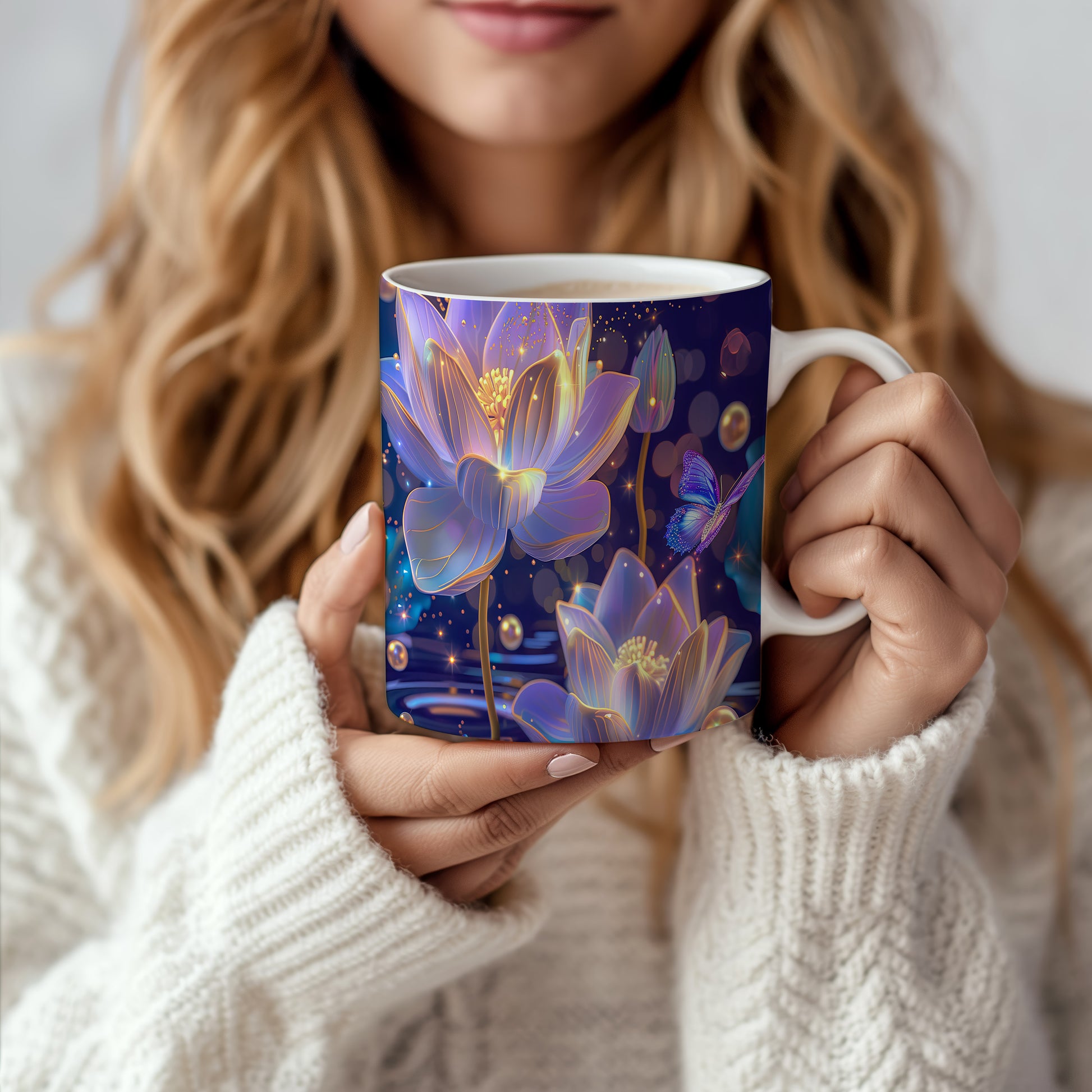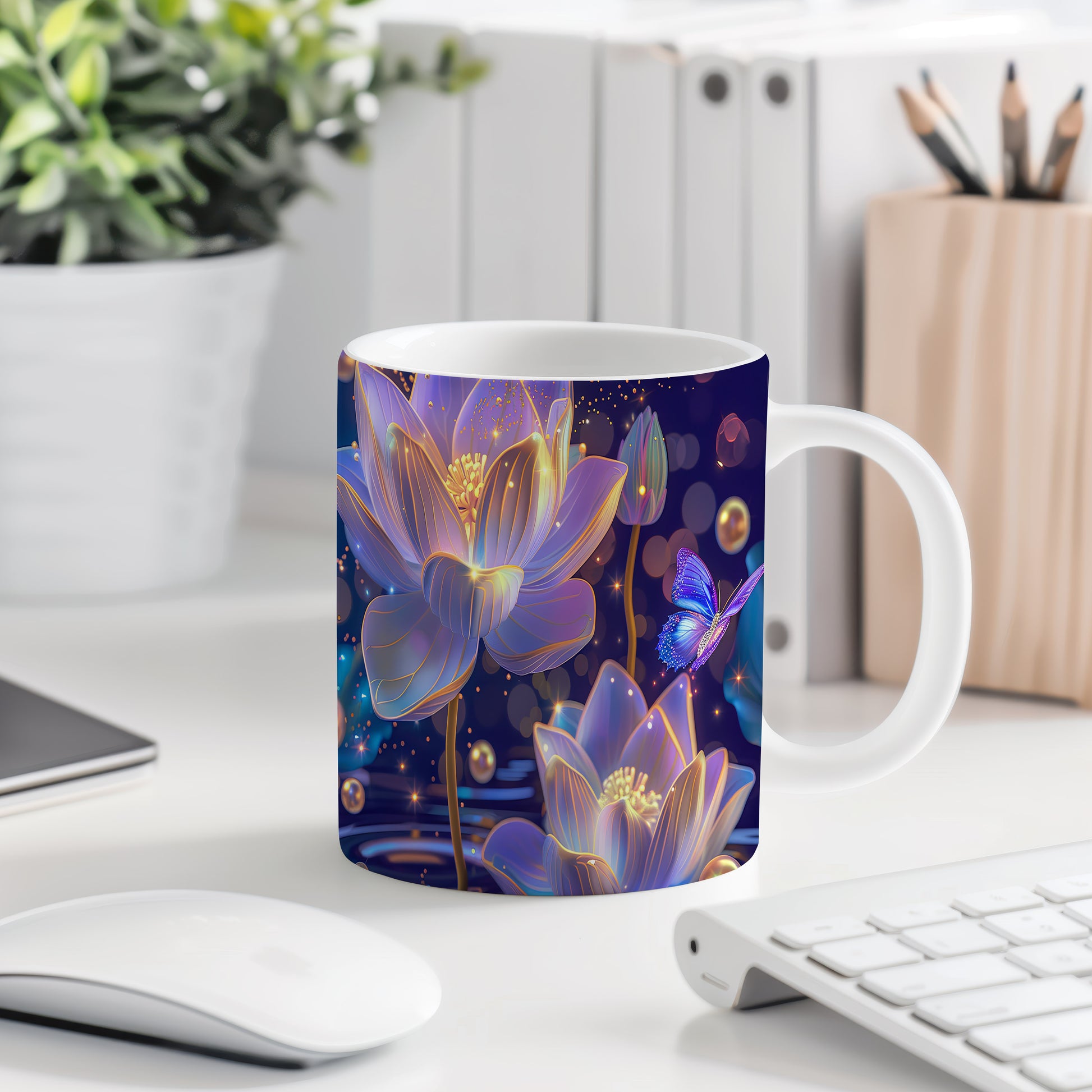 Tento hrnek zobrazuje krásné květy leknínu a motýla, což vytváří jemný a přírodní vzhled. Je ideální pro milovníky přírody a skvělým dárkem pro každého, kdo ocení krásu květin. Materiál: keramika. Objem: 330 ml. Vhodné do myčky i mikrovlnky. Používání tohoto hrnku přináší radost z každého doušku vaší oblíbené kávy nebo čaje.