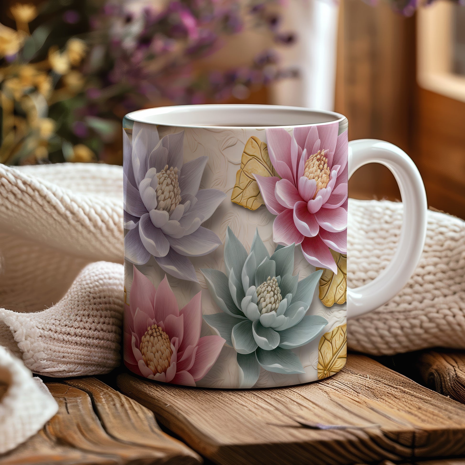 Tento elegantní hrnek zobrazuje překrásné květy lotosu v jemných barvách. Je ideální pro milovníky přírody a skvělým dárkem pro každého, kdo ocení krásu květin. Materiál: keramika. Objem: 330 ml. Vhodné do myčky i mikrovlnky. Používání tohoto hrnku přináší radost z každého doušku oblíbeného nápoje.