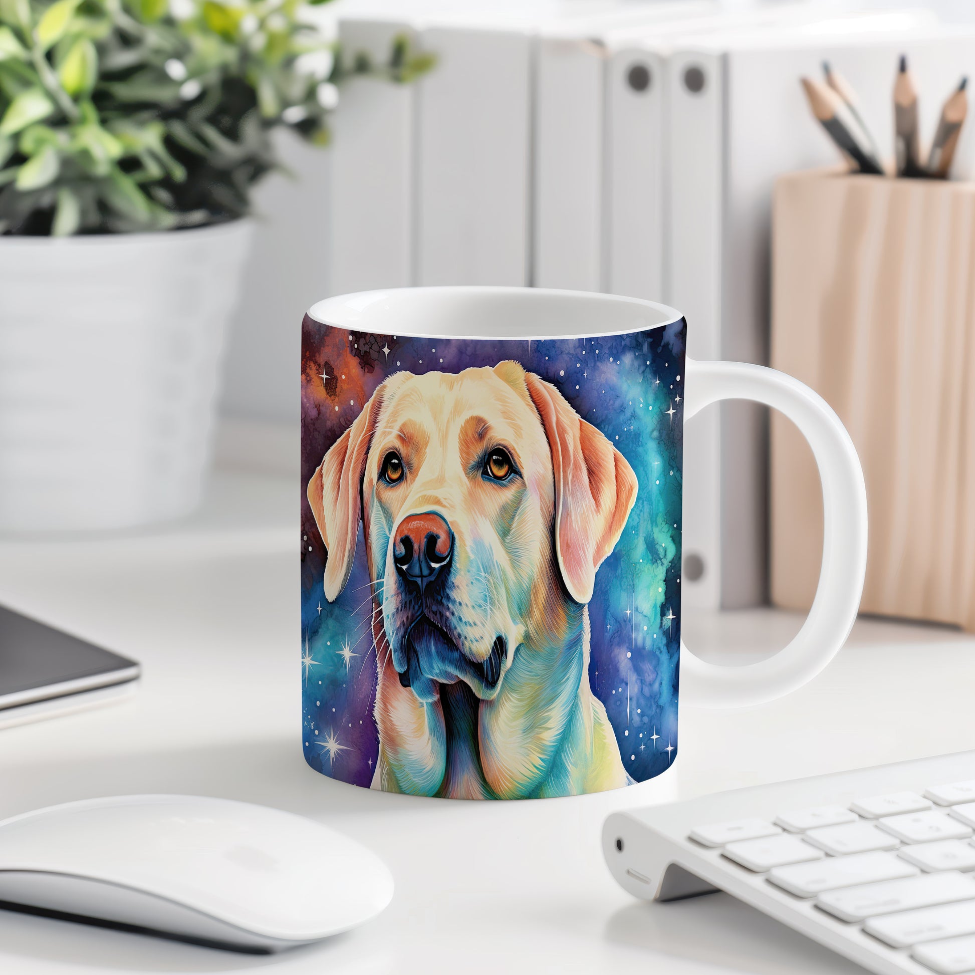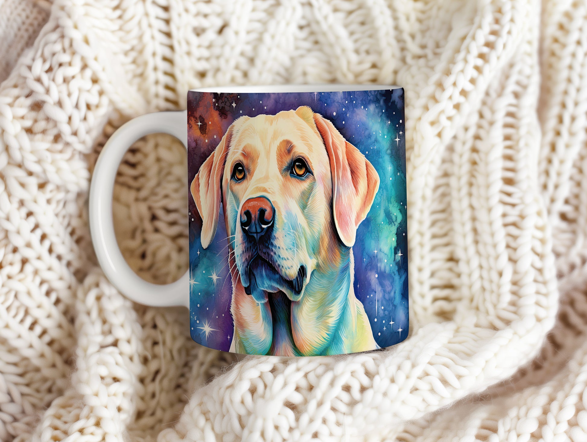 Hrnek s labradorem v kosmickém snění