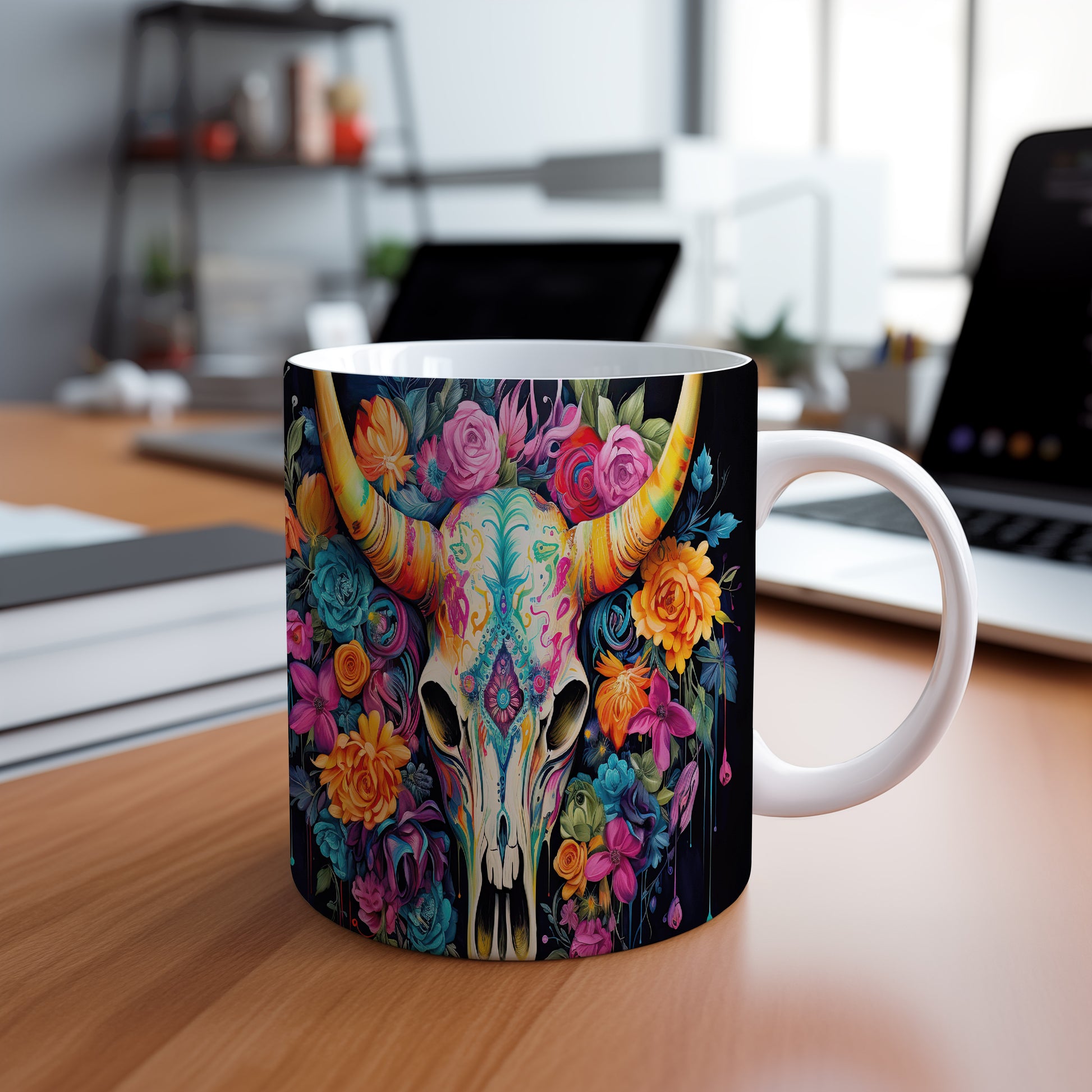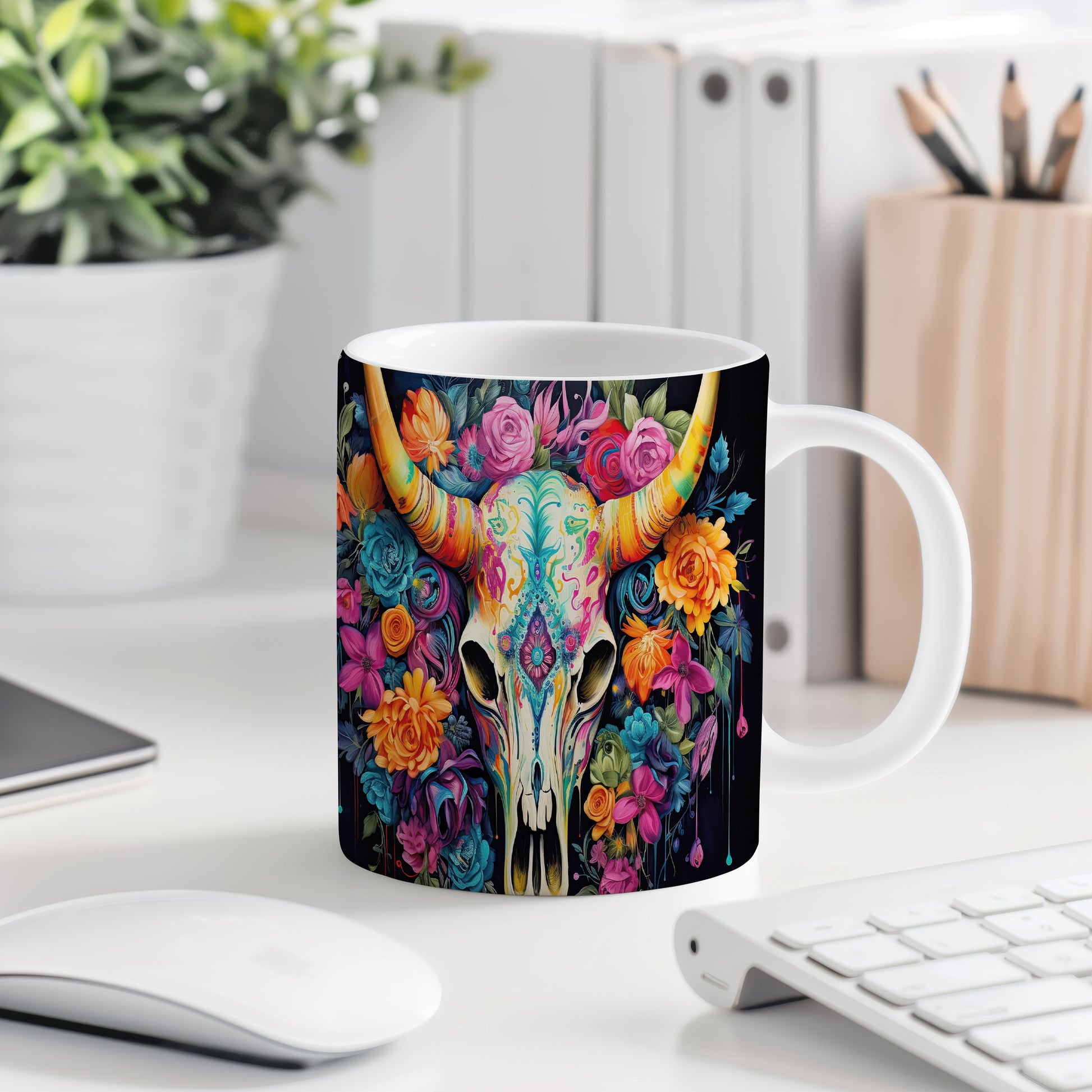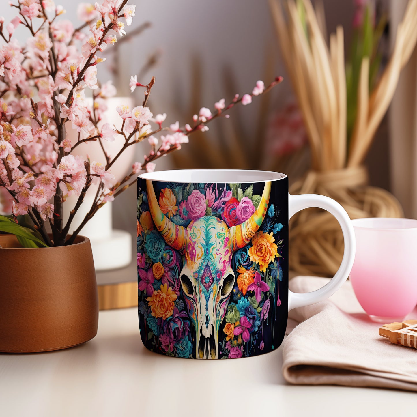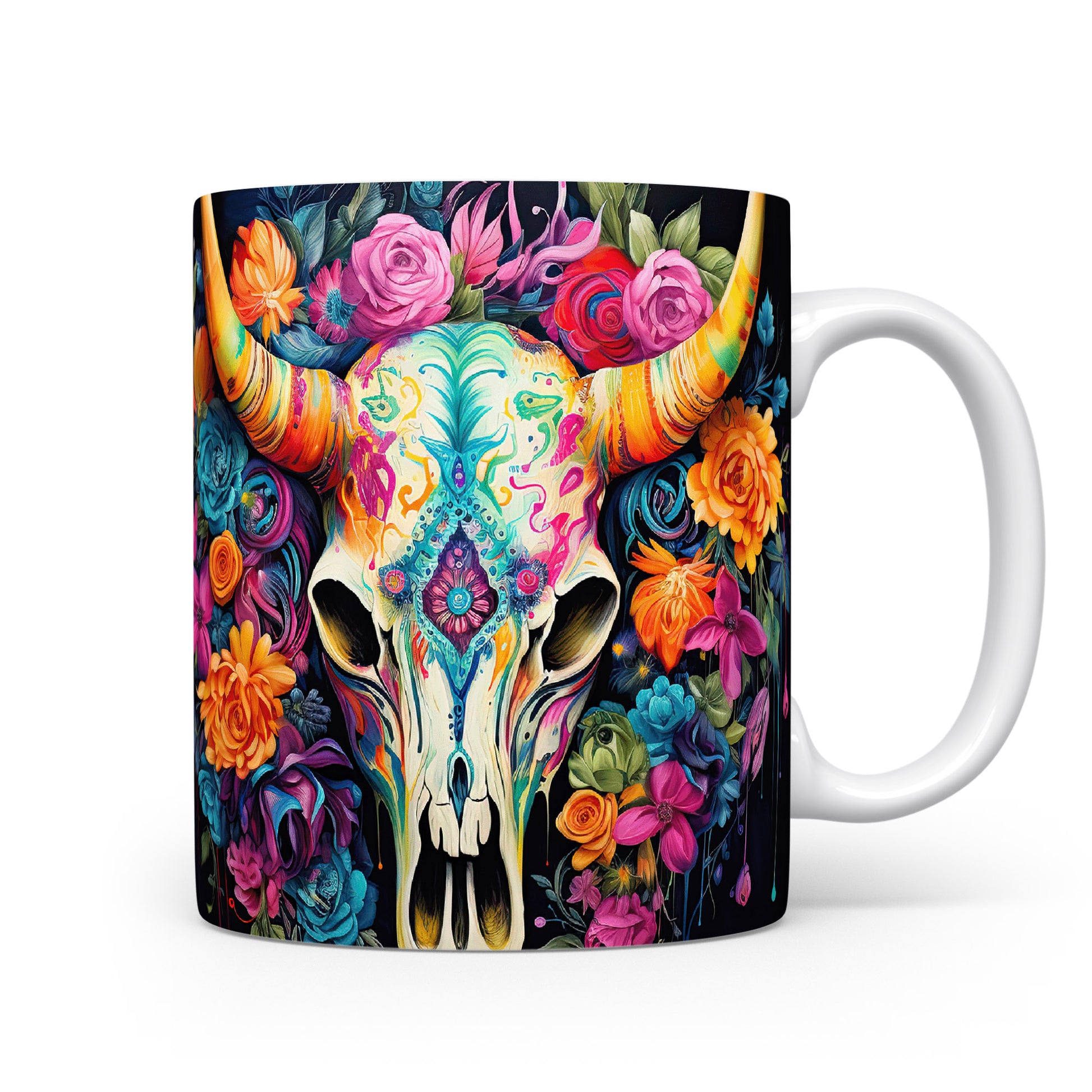 Tento hrnek s motivem lebky a barevných květin je stylovým doplňkem pro každého, kdo má rád originální design. Je ideální jako dárek pro přátele nebo rodinu, kteří ocení jedinečné kousky. Materiál: keramika. Objem: 330 ml. Vhodné do myčky i mikrovlnky. Díky svému provedení přináší do každodenního pití kávy nebo čaje špetku osobitosti.