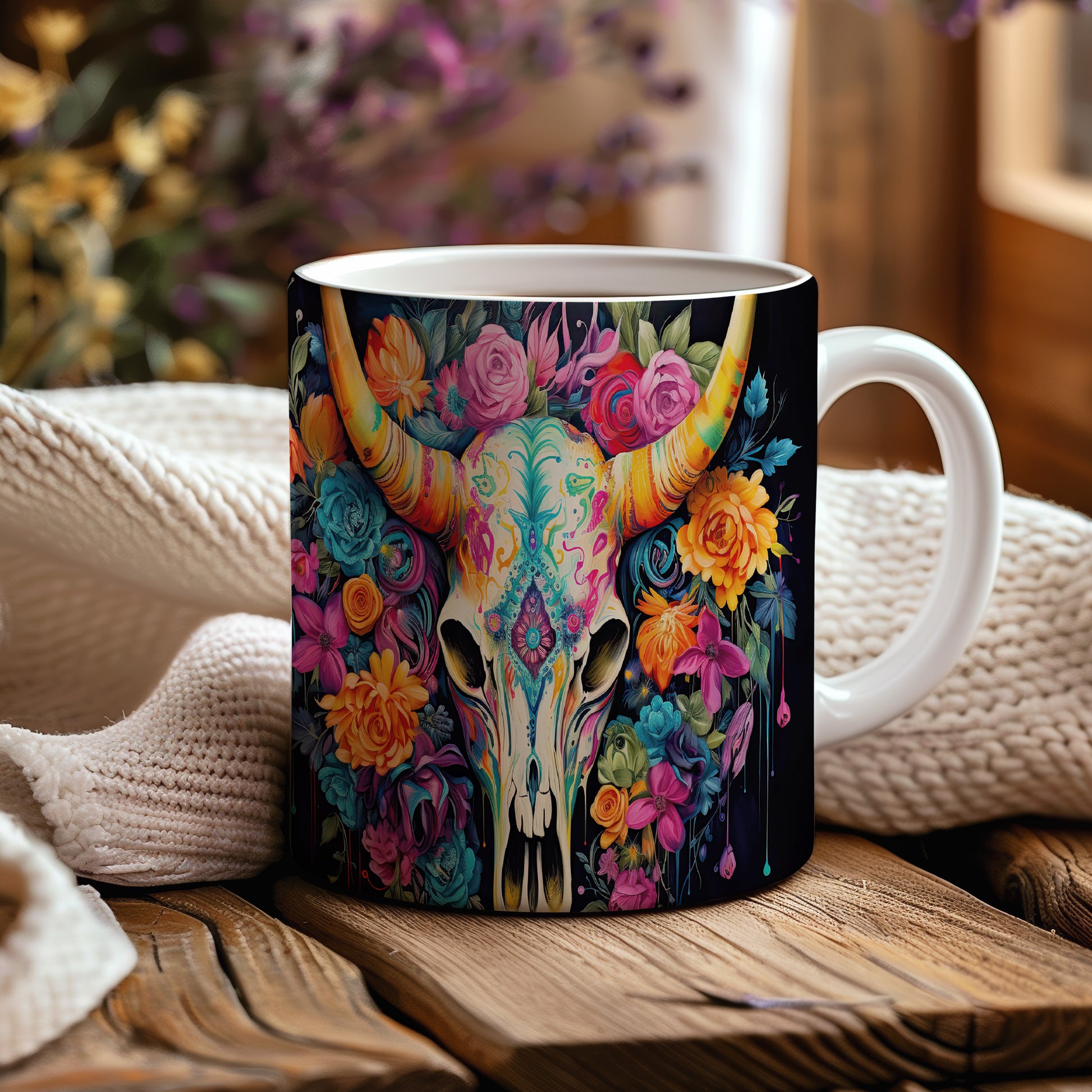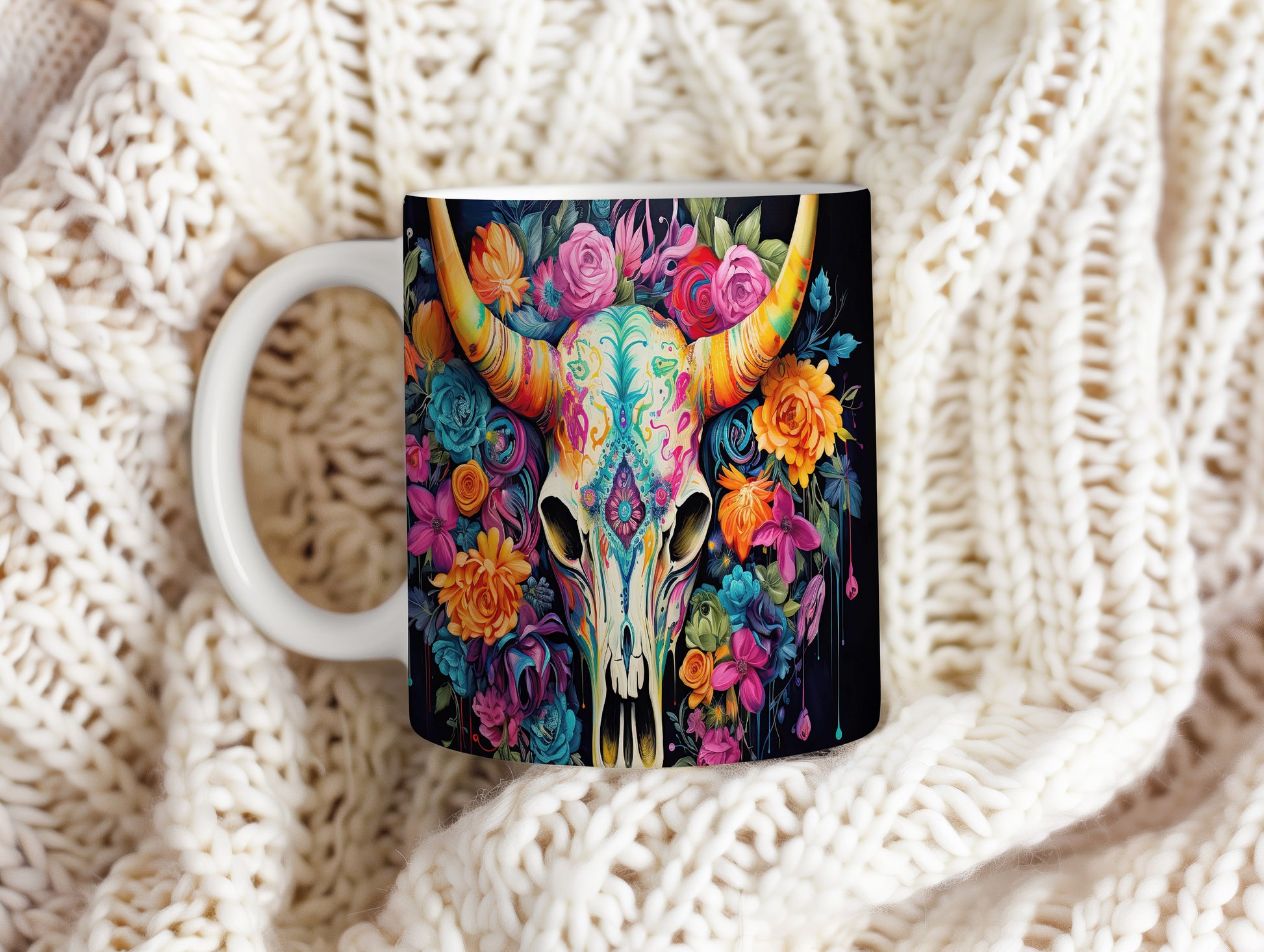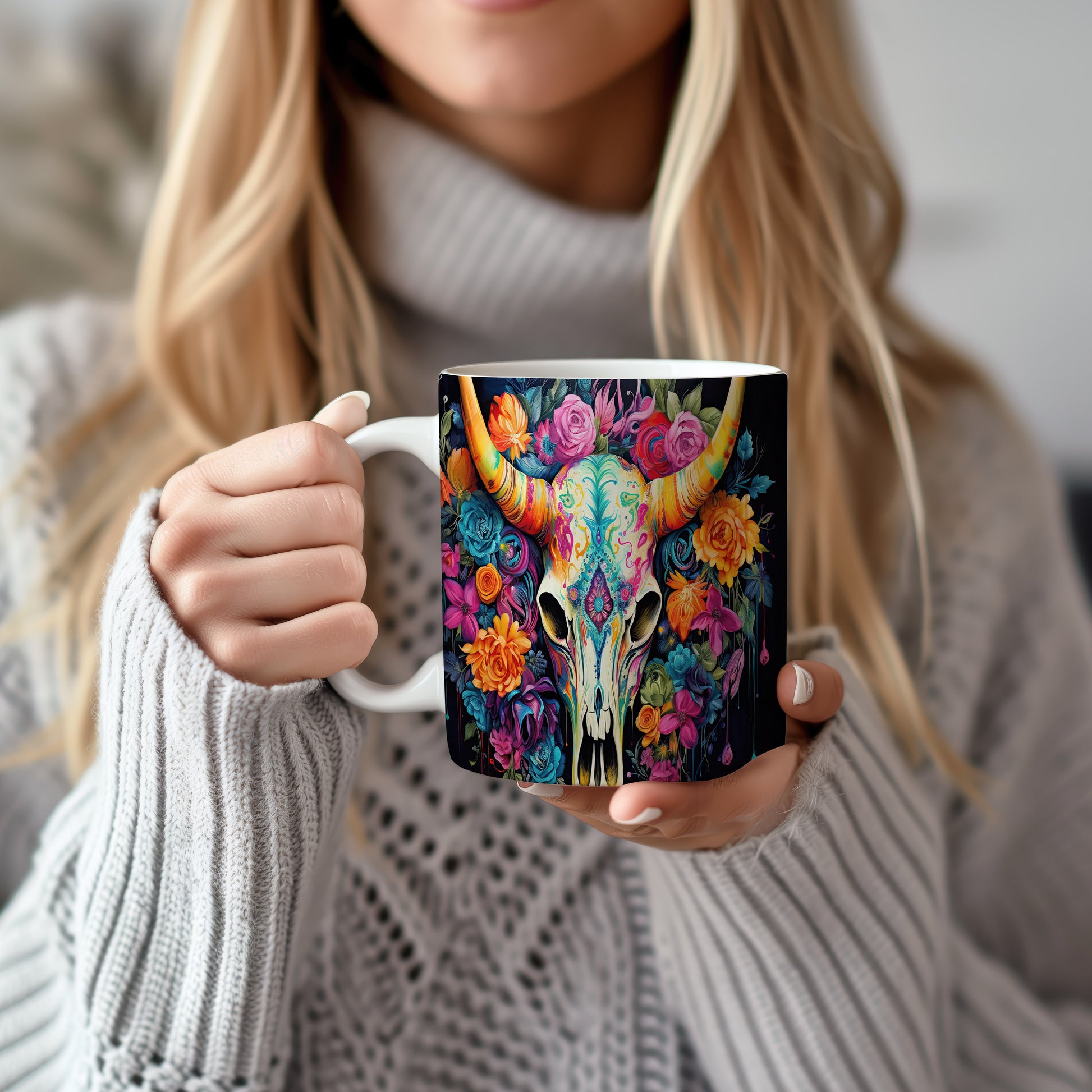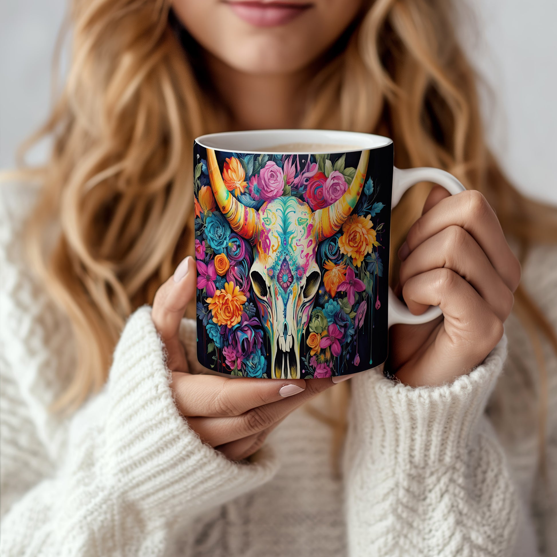 Tento hrnek s motivem lebky a barevných květin je stylovým doplňkem pro každého, kdo má rád originální design. Je ideální jako dárek pro přátele nebo rodinu, kteří ocení jedinečné kousky. Materiál: keramika. Objem: 330 ml. Vhodné do myčky i mikrovlnky. Díky svému provedení přináší do každodenního pití kávy nebo čaje špetku osobitosti.