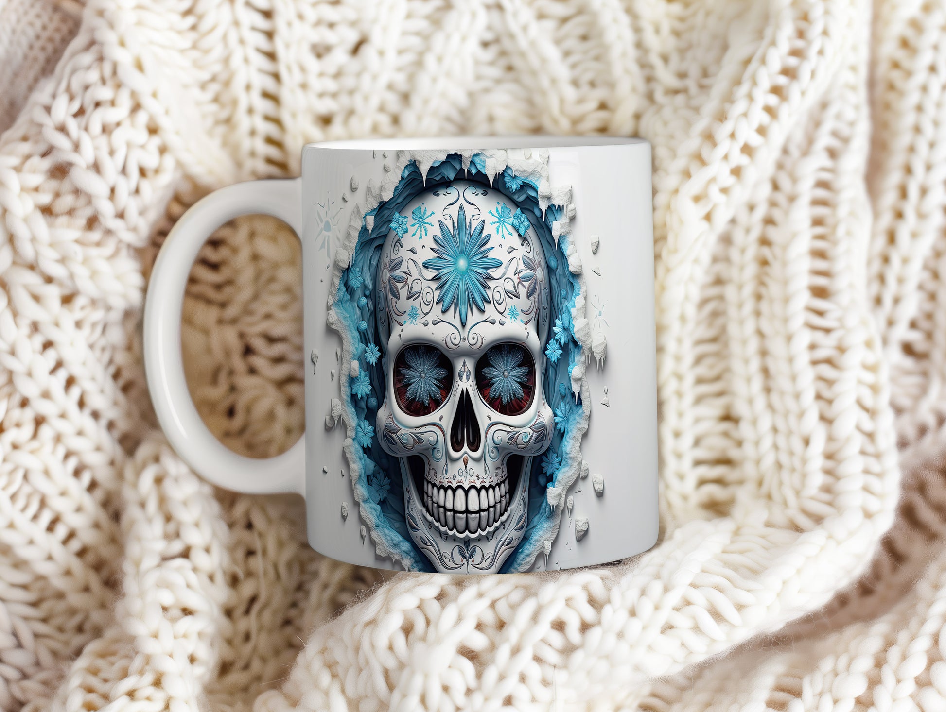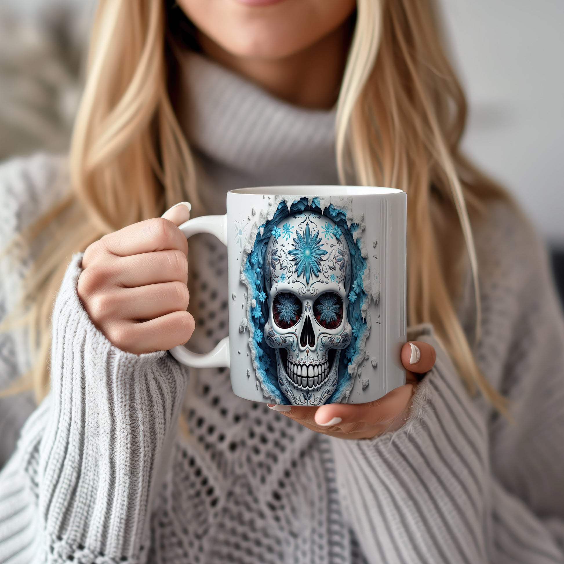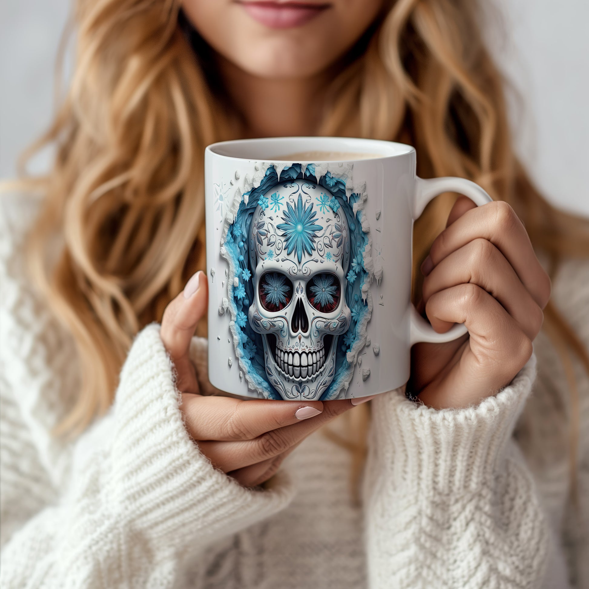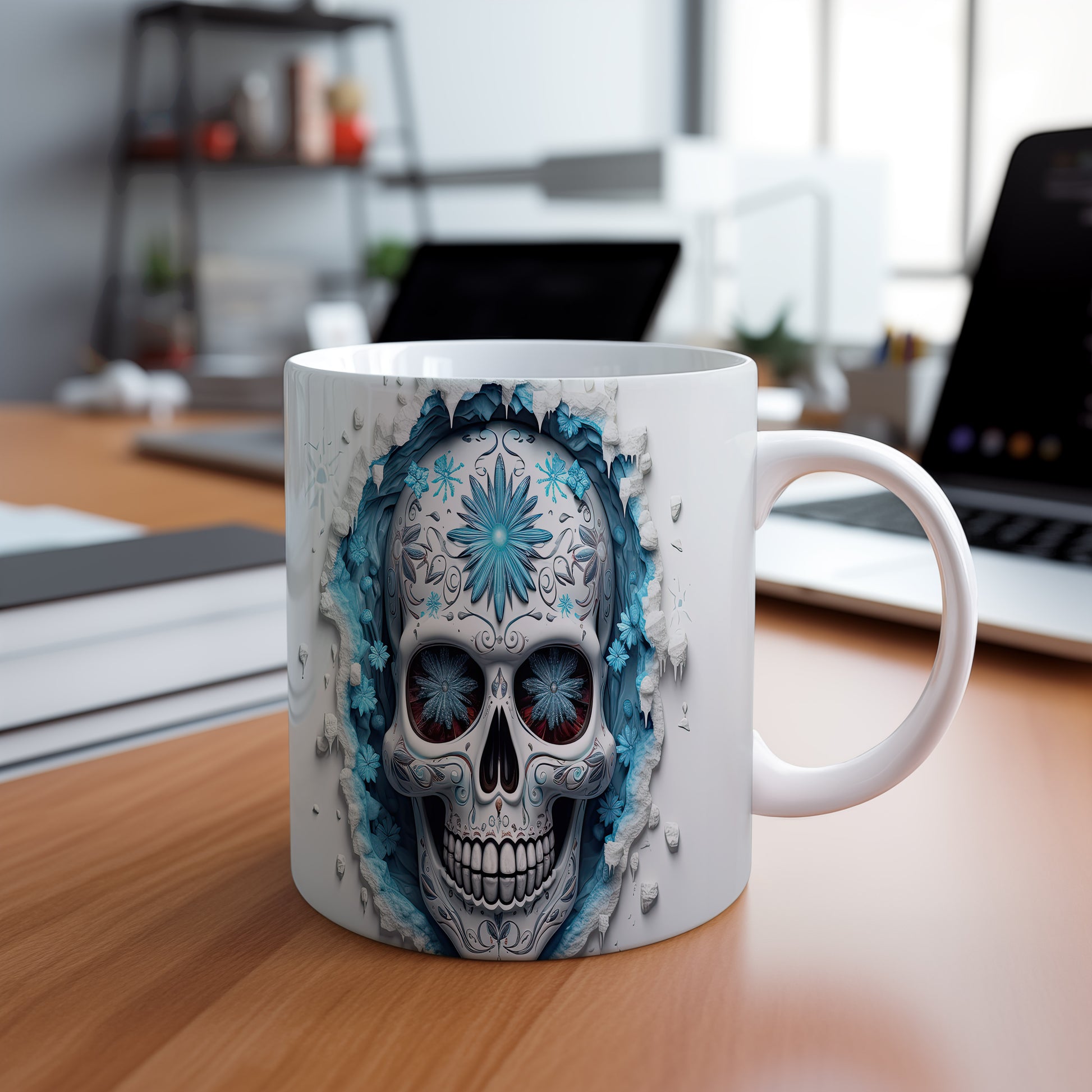 Tento jedinečný hrnek s motivem lebky a modrých květů přináší originální design pro milovníky mystiky. Je ideálním dárkem pro přátele, kteří ocení netradiční kousky. Materiál: keramika. Objem: 330 ml. Vhodné do myčky i mikrovlnky. Používání tohoto hrnku dodá vašemu pití osobitý styl.