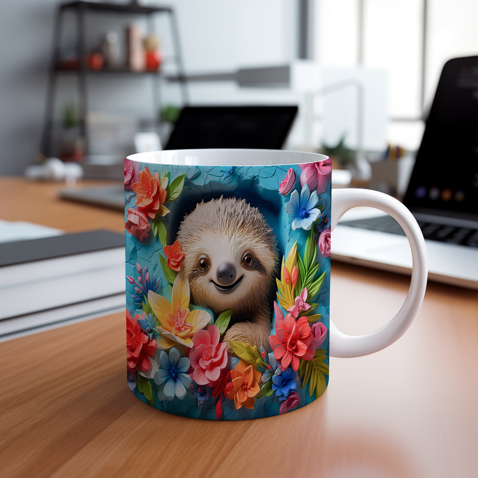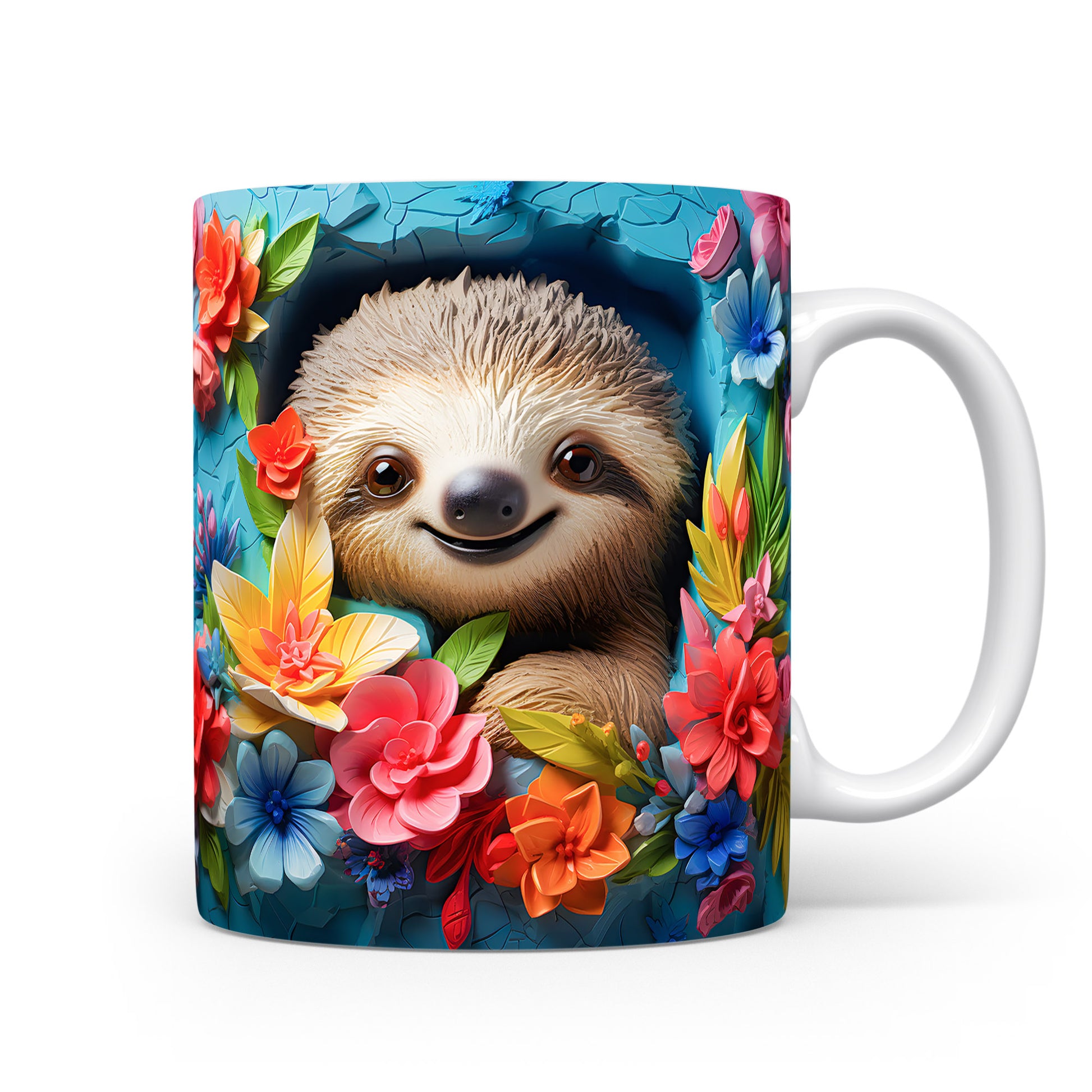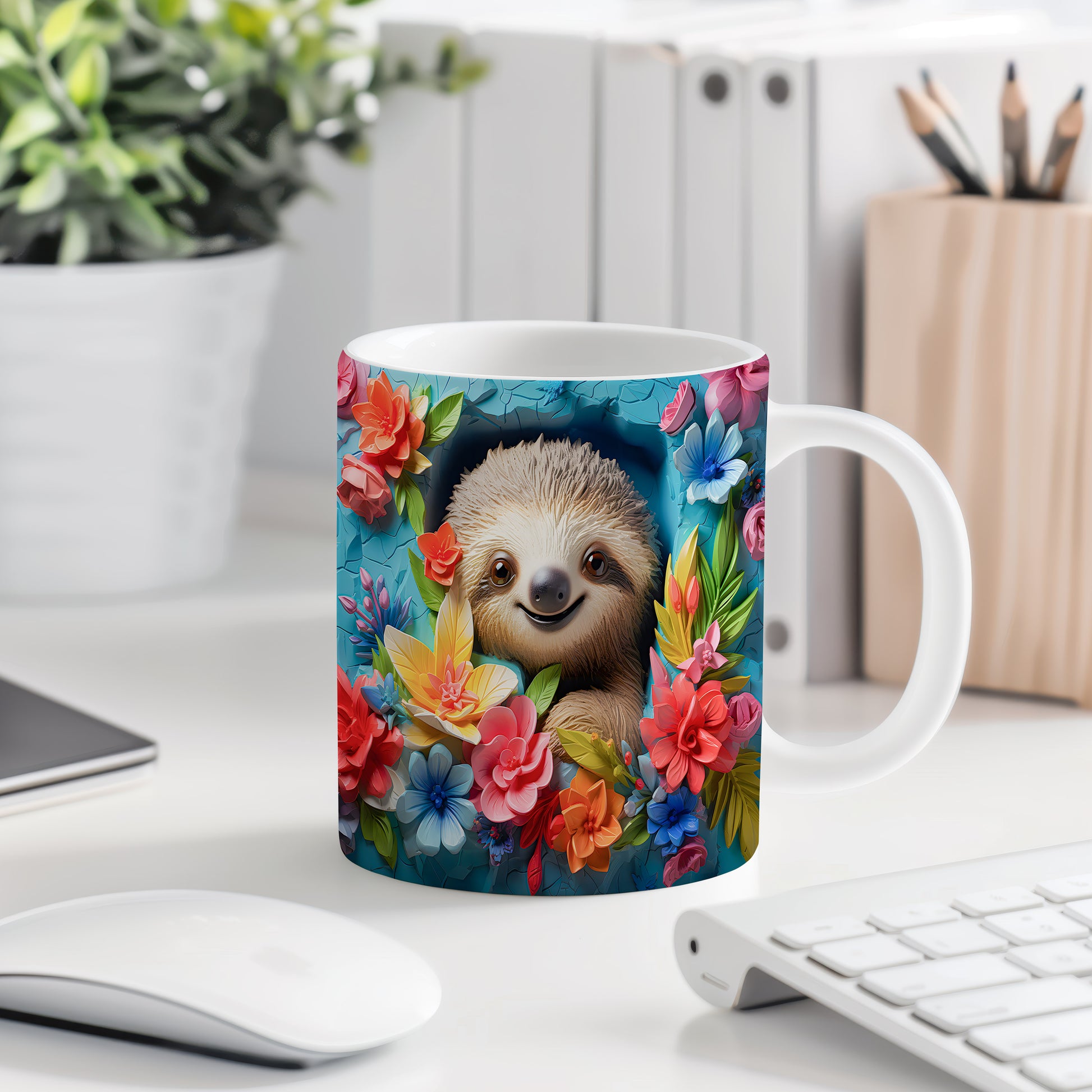 Krásný hrnek s motivem usměvavého lenochoda a barevných květin. Tento hrnek je ideální pro milovníky zvířat a přírody, skvělý tip na dárek pro vaše blízké. Materiál: keramika. Objem: 330 ml. Vhodné do myčky i mikrovlnky. Používáním tohoto hrnku si zpříjemníte každé ráno a dodáte mu veselou atmosféru.