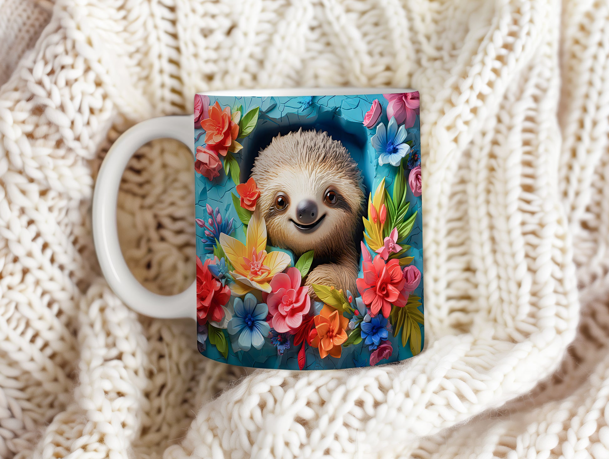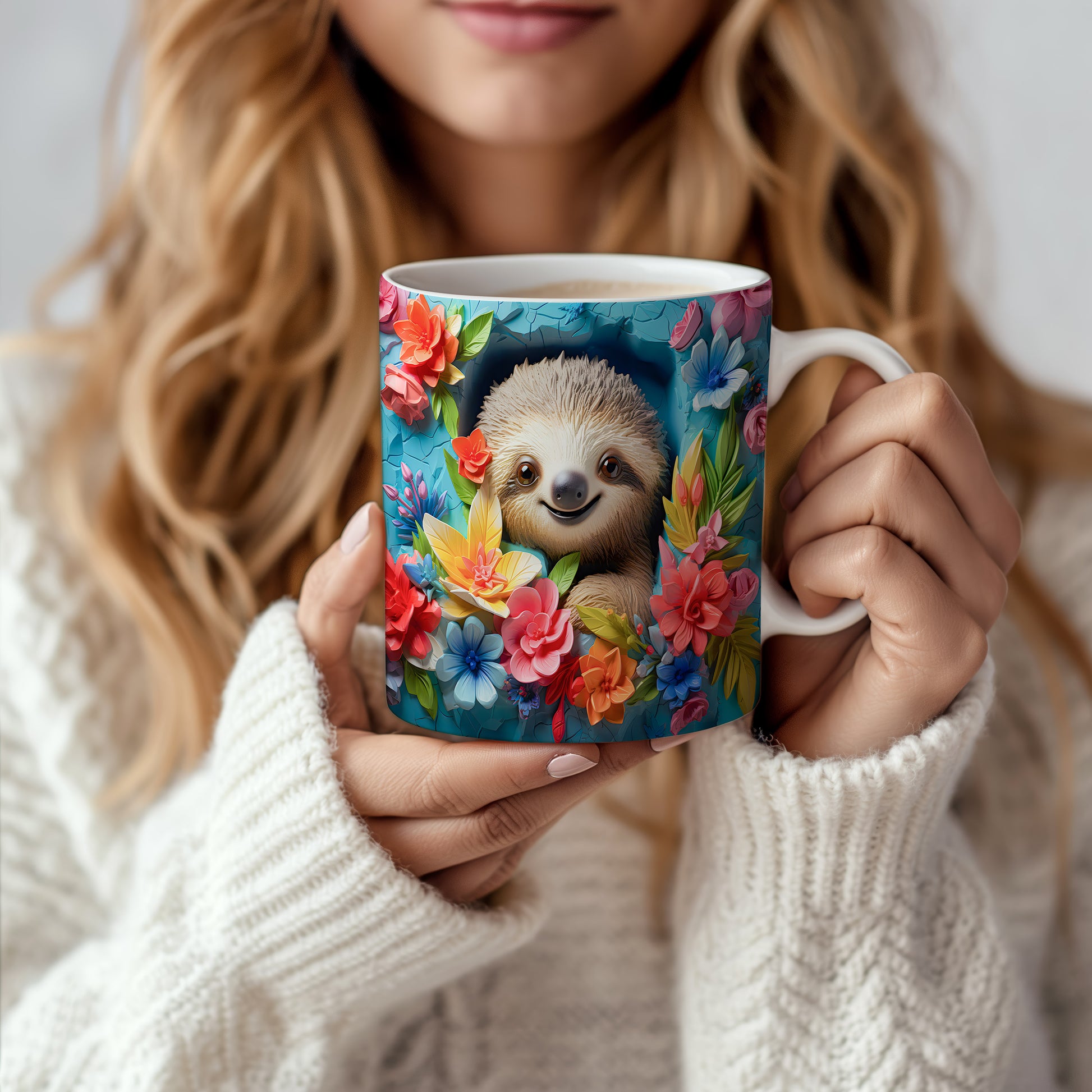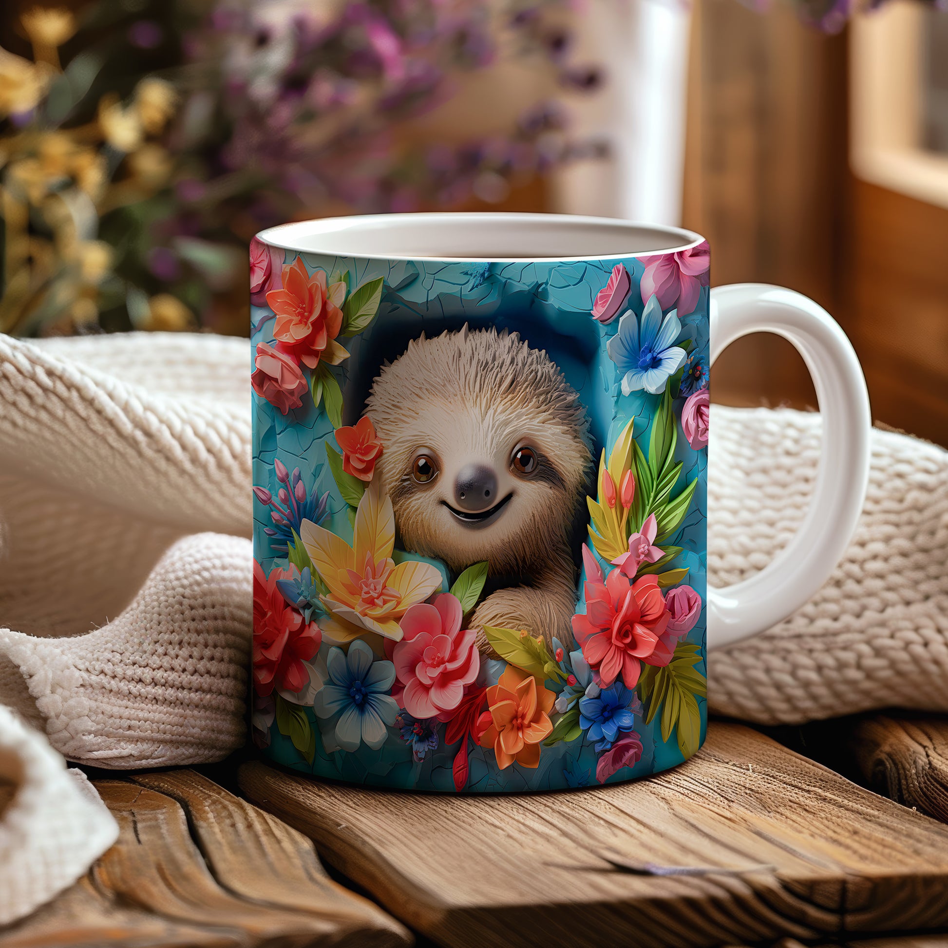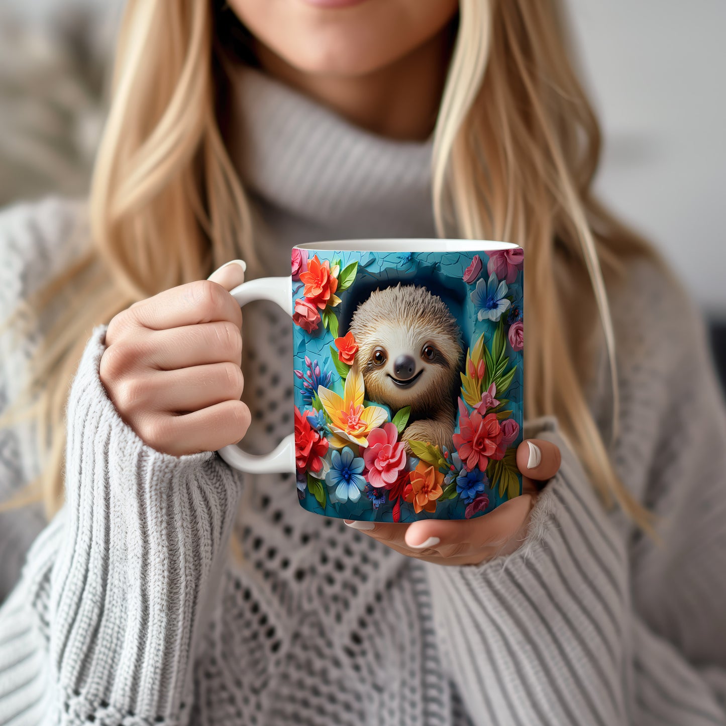 Krásný hrnek s motivem usměvavého lenochoda a barevných květin. Tento hrnek je ideální pro milovníky zvířat a přírody, skvělý tip na dárek pro vaše blízké. Materiál: keramika. Objem: 330 ml. Vhodné do myčky i mikrovlnky. Používáním tohoto hrnku si zpříjemníte každé ráno a dodáte mu veselou atmosféru.