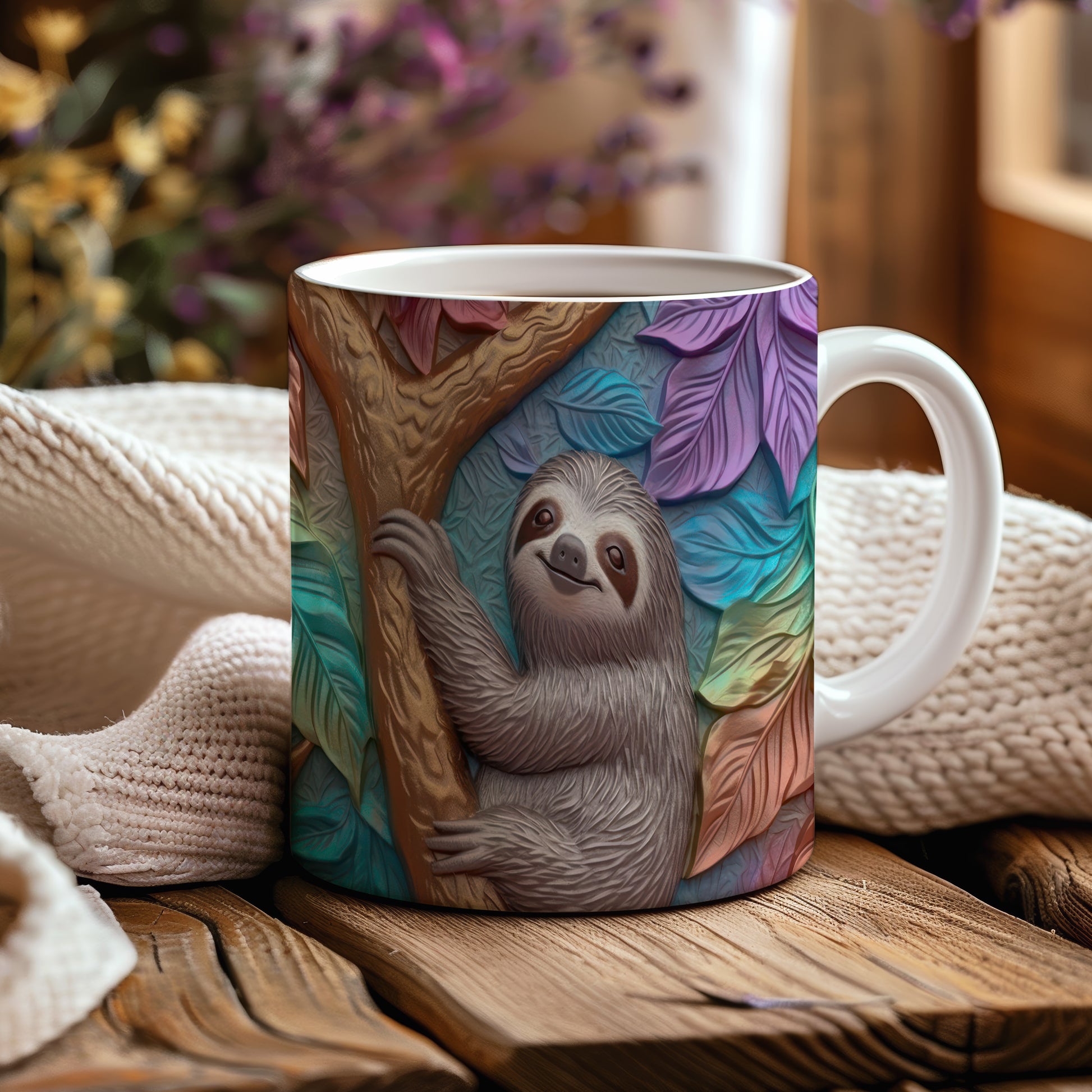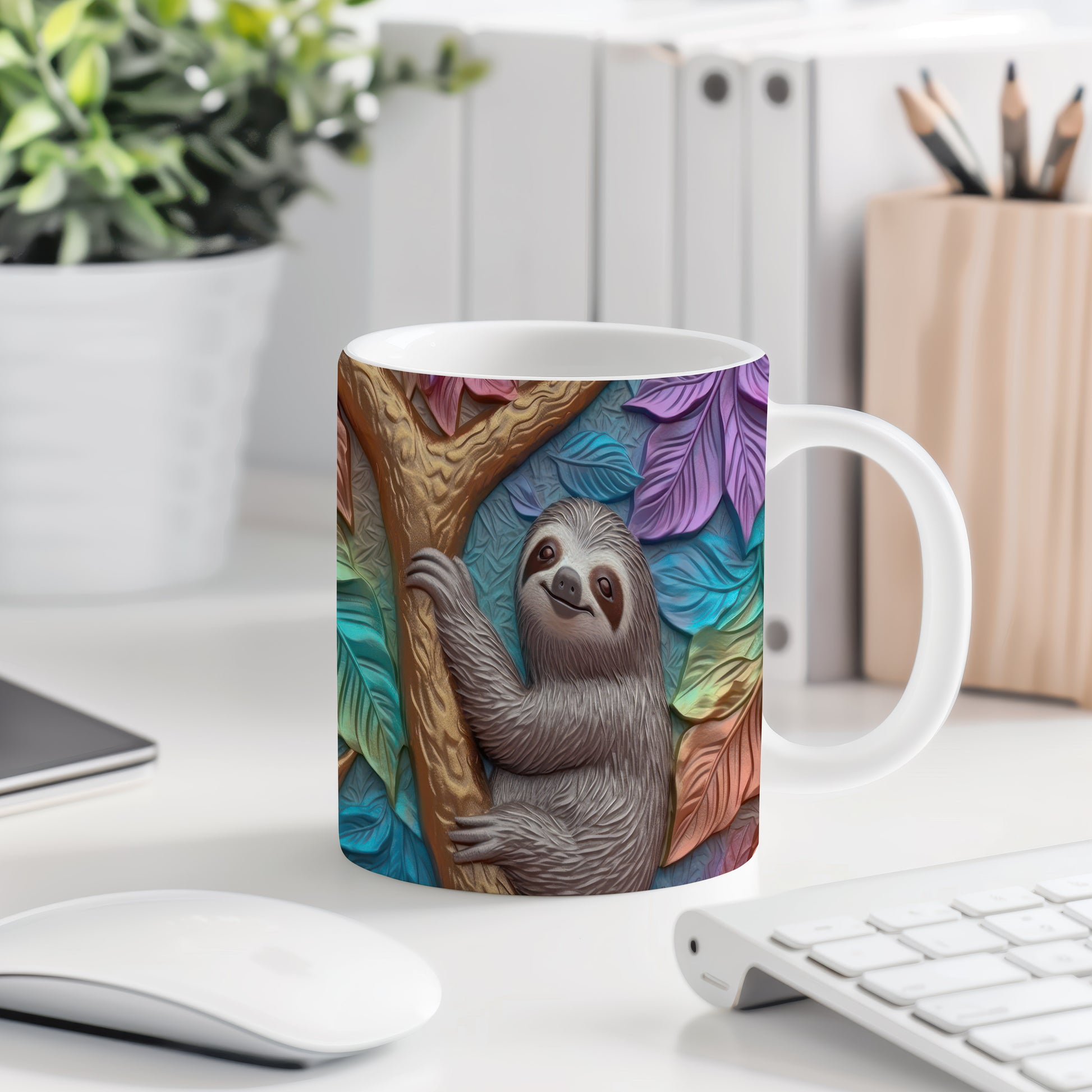 Hrnek s motivem lenochoda a barevných listů je skvělým kouskem pro všechny milovníky přírody. Tento keramický hrnek je ideální jako dárek pro přátele nebo rodinu, kteří ocení originální design. Materiál: keramika. Objem: 330 ml. Vhodné do myčky i mikrovlnky. Při každém doušku vám přinese radost a příjemnou atmosféru.
