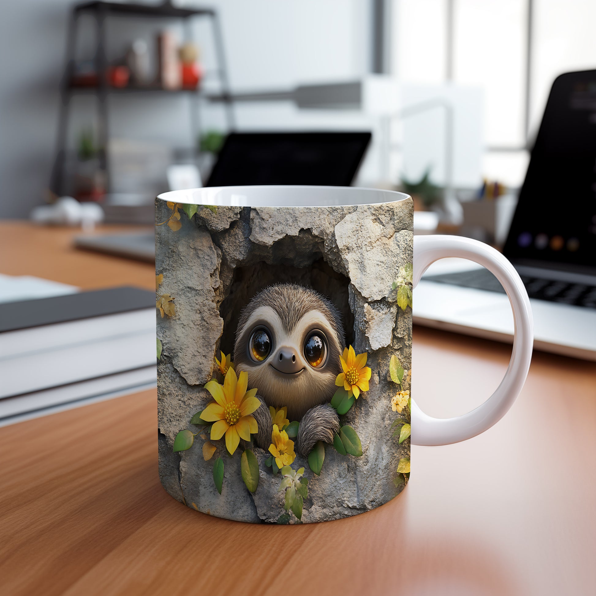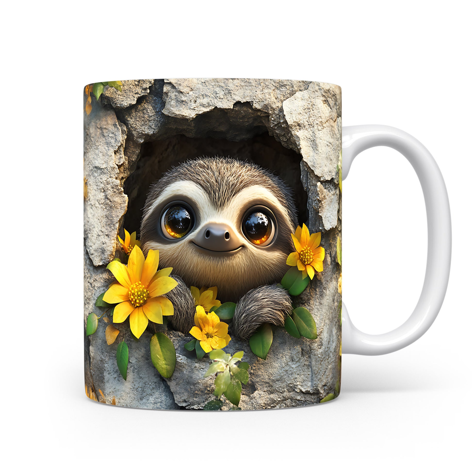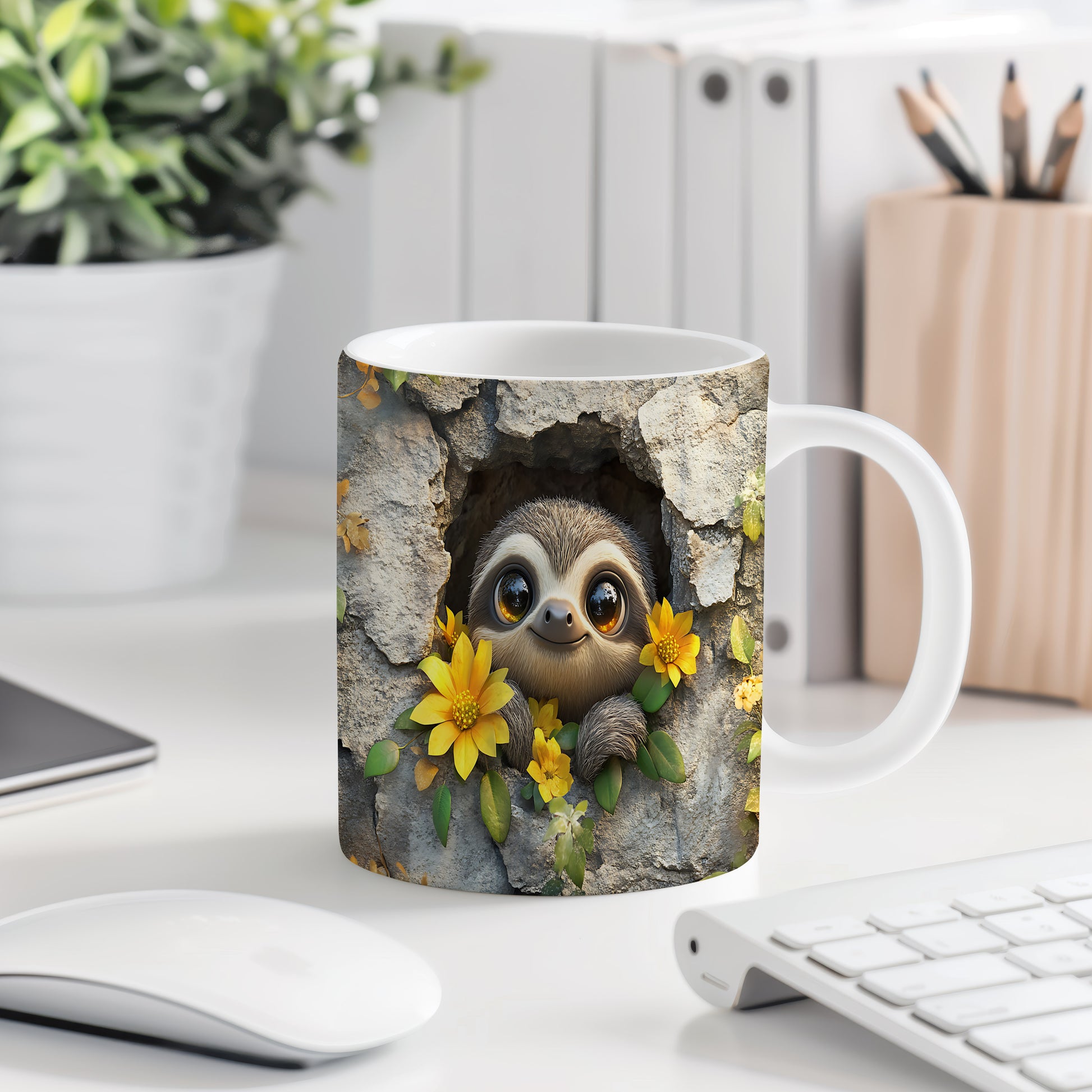 Veselý hrnek s motivem lenochoda obklopeného žlutými květinami. Tento hrnek potěší každého milovníka přírody a zvířat, ideální jako dárek pro přátele nebo rodinu. Materiál: keramika. Objem: 330 ml. Vhodné do myčky i mikrovlnky. Užívejte si kávu nebo čaj s tímto originálním kouskem, který přinese radost do každého dne.